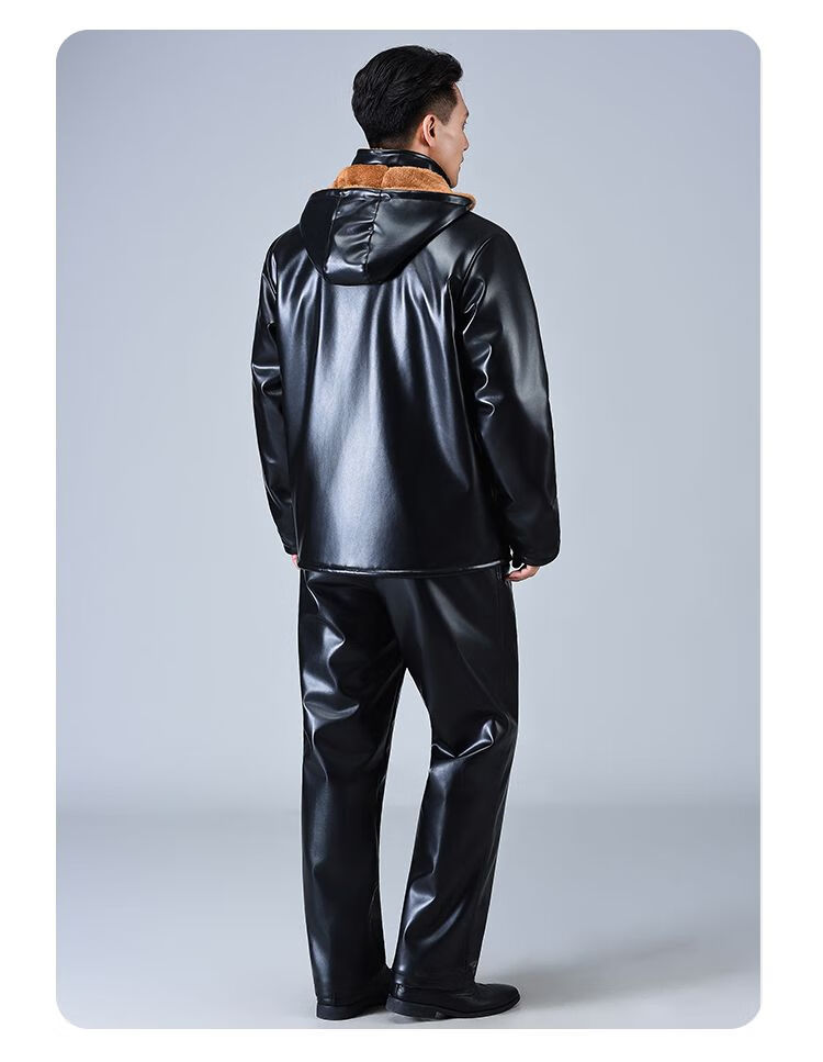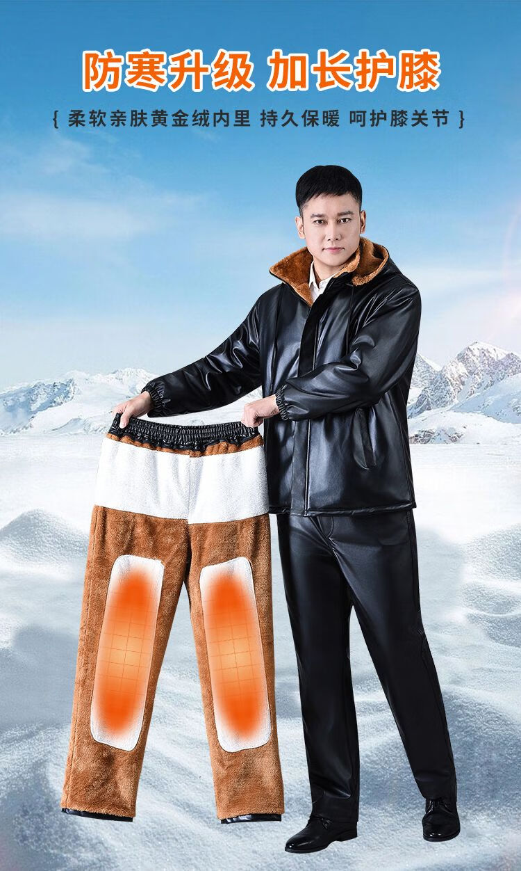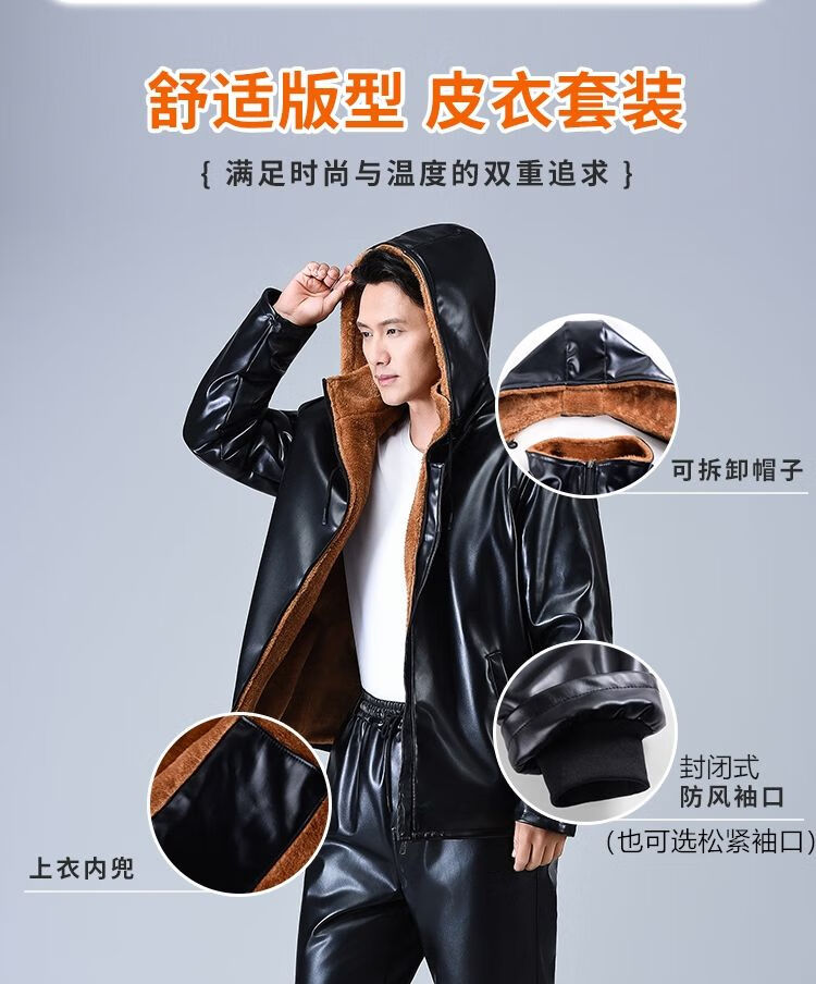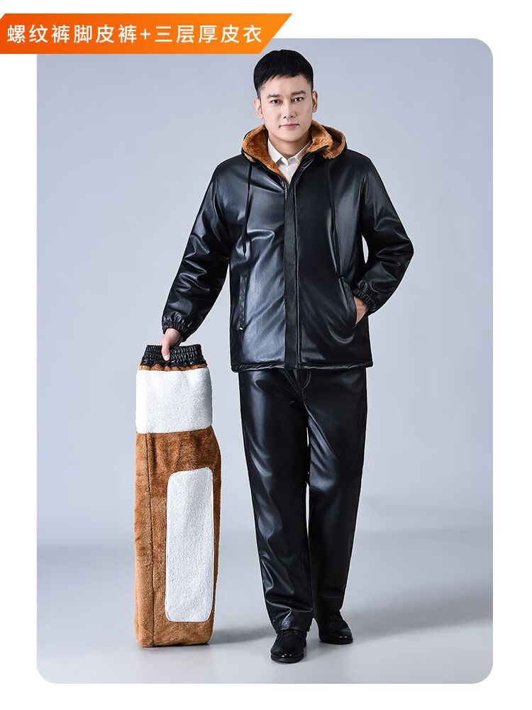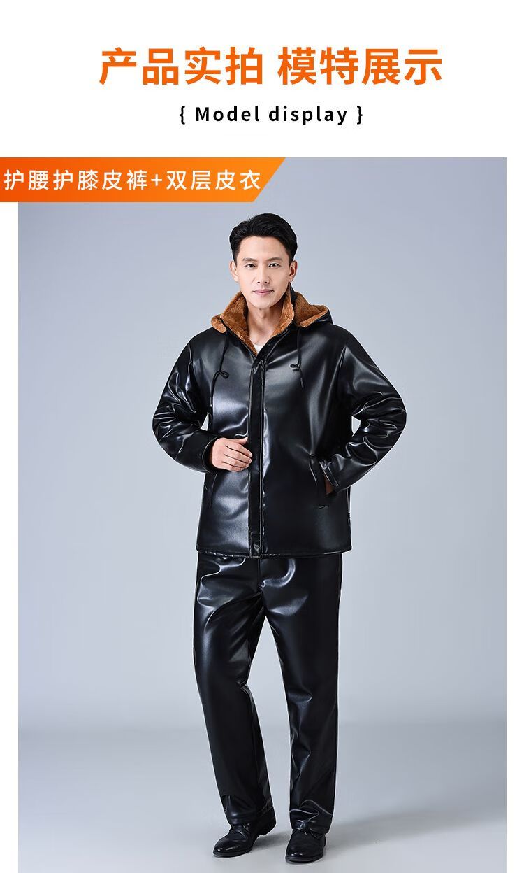 JEEP SPIRIT Костюм кожаной куртки и кожаных брюк Jeep мужской бархатный утолщенный для езды на вынос для вождения ветрозащитная, водонепроницаемая, теплая и морозостойкая спецодежда кожаная новая кожаная куртка ветрозащитная ребристые утолщенные манжеты 5XL (специальный размер) 180-200Джин Цзинь равен 0,5 кг