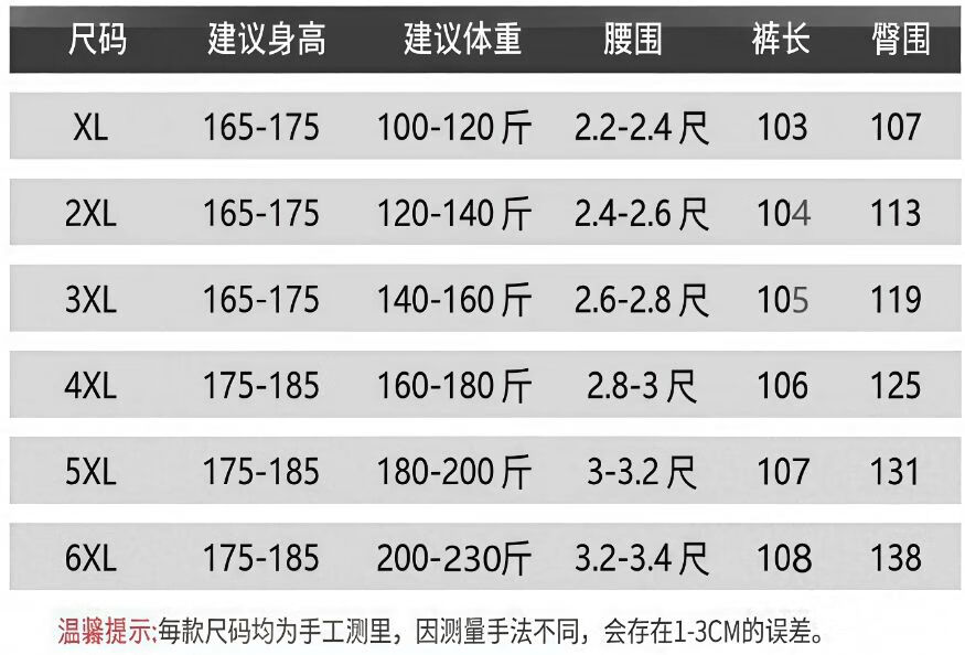 China (cm) 165 / 88-90 170 / 96-98 175 / 108-110 180 / 118-122 185 / 126-130
