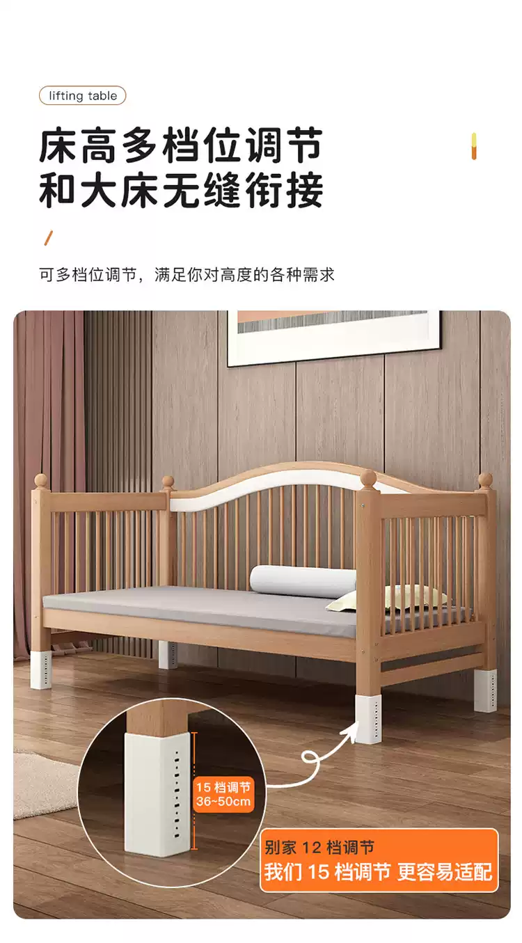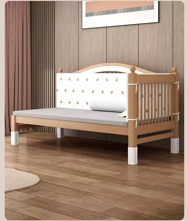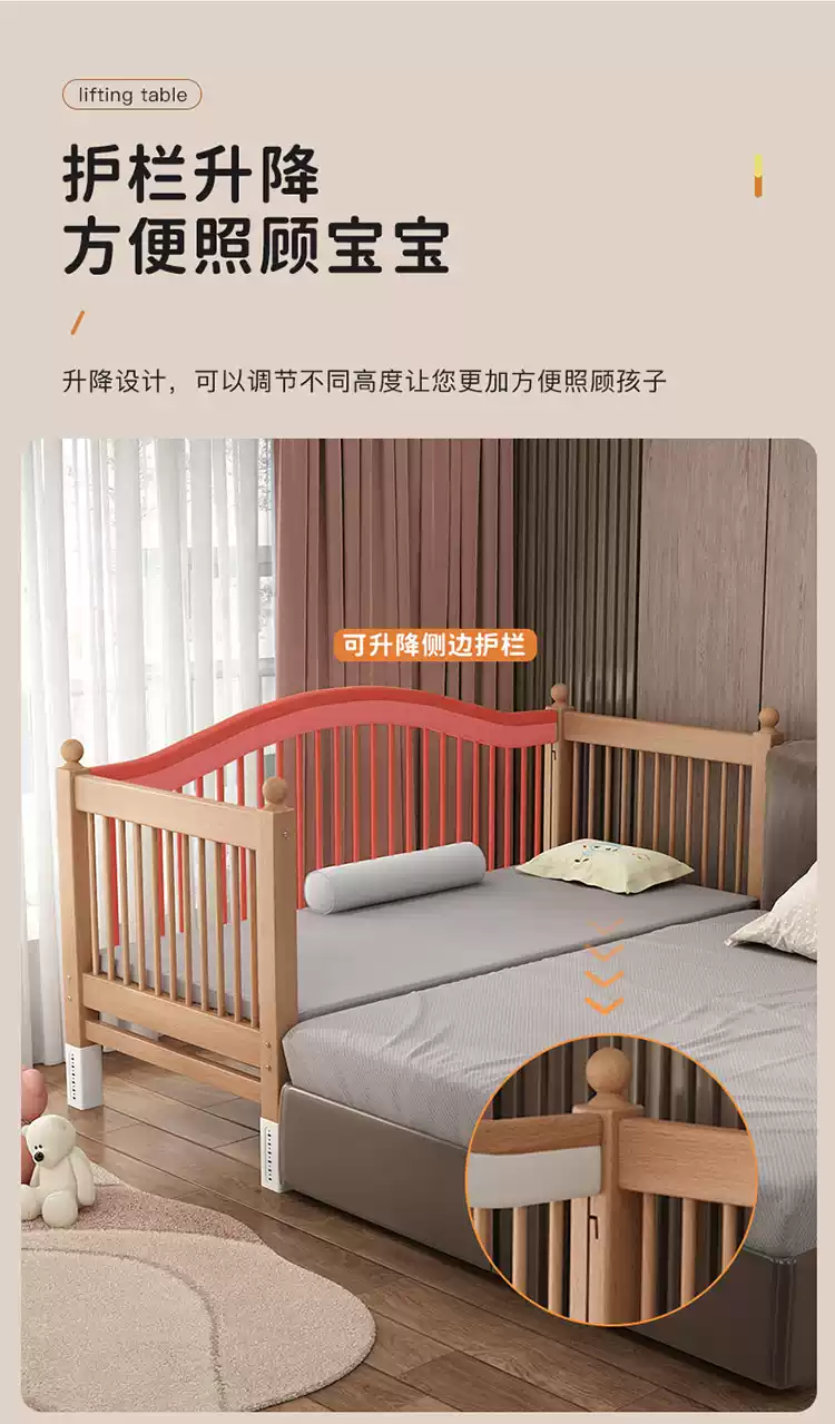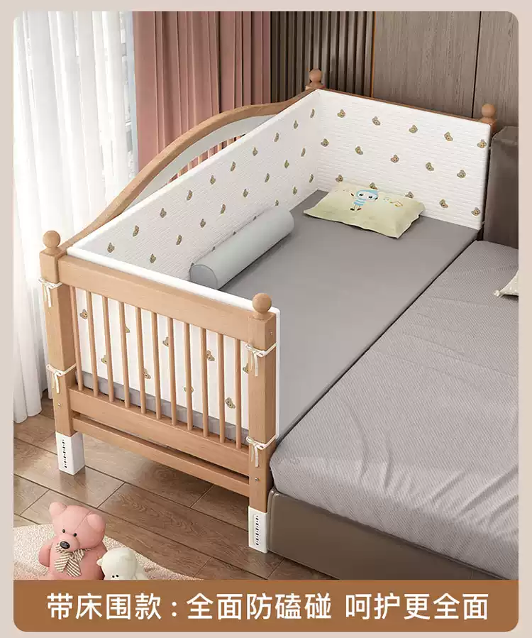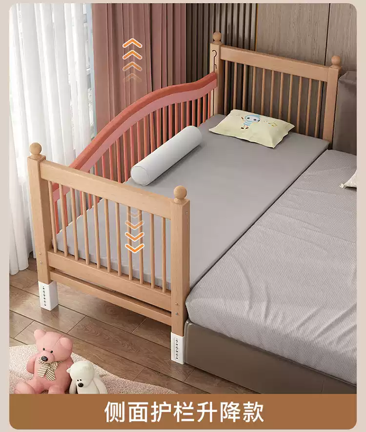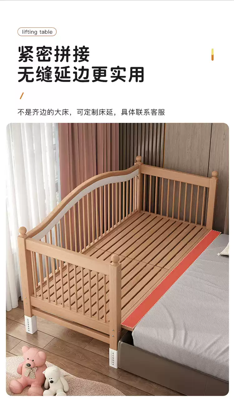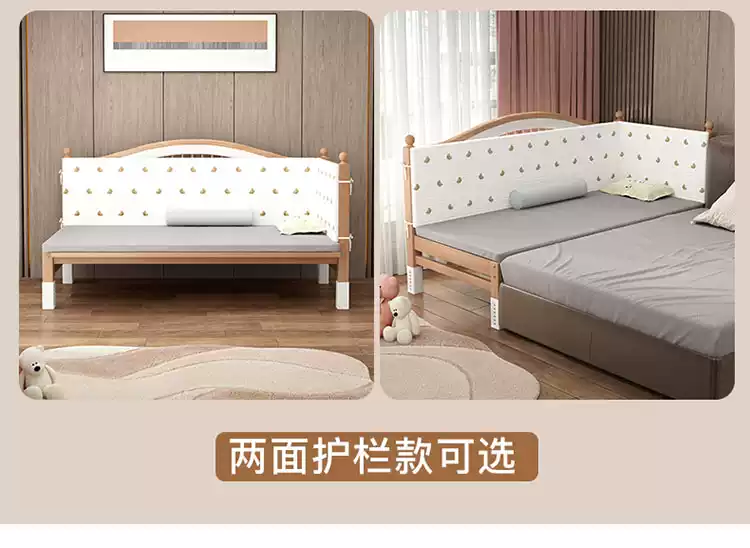 Shantou Lincun Beech Baby Spliced Bed Children's Solid Wood Widened Bed High Guardrail Baby Bed Liftable Bedside Bed Sofa Bed Three Side Lifts + 5cm Coconut Palm Mat + Class A Pure Cotton Bed Surrounder 150x60cm