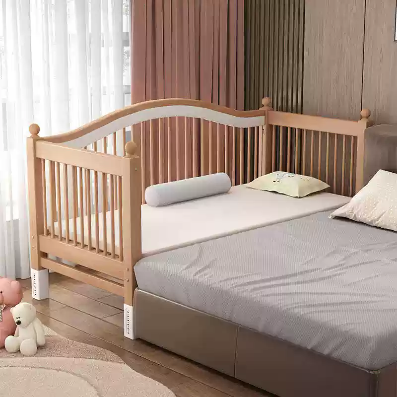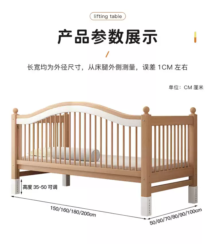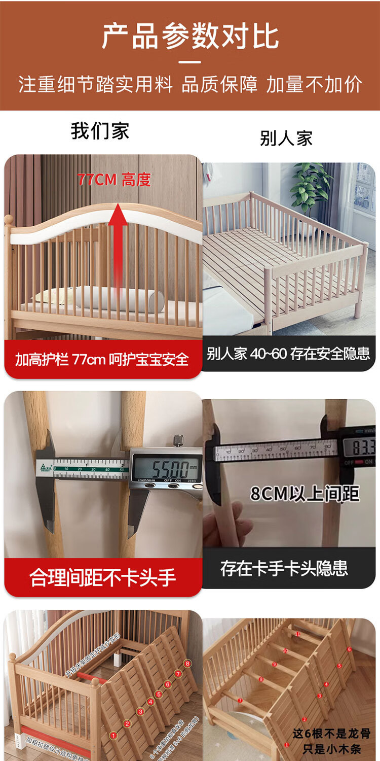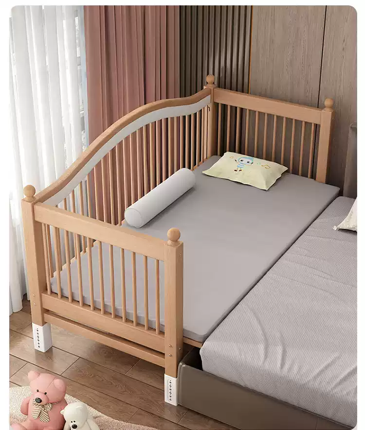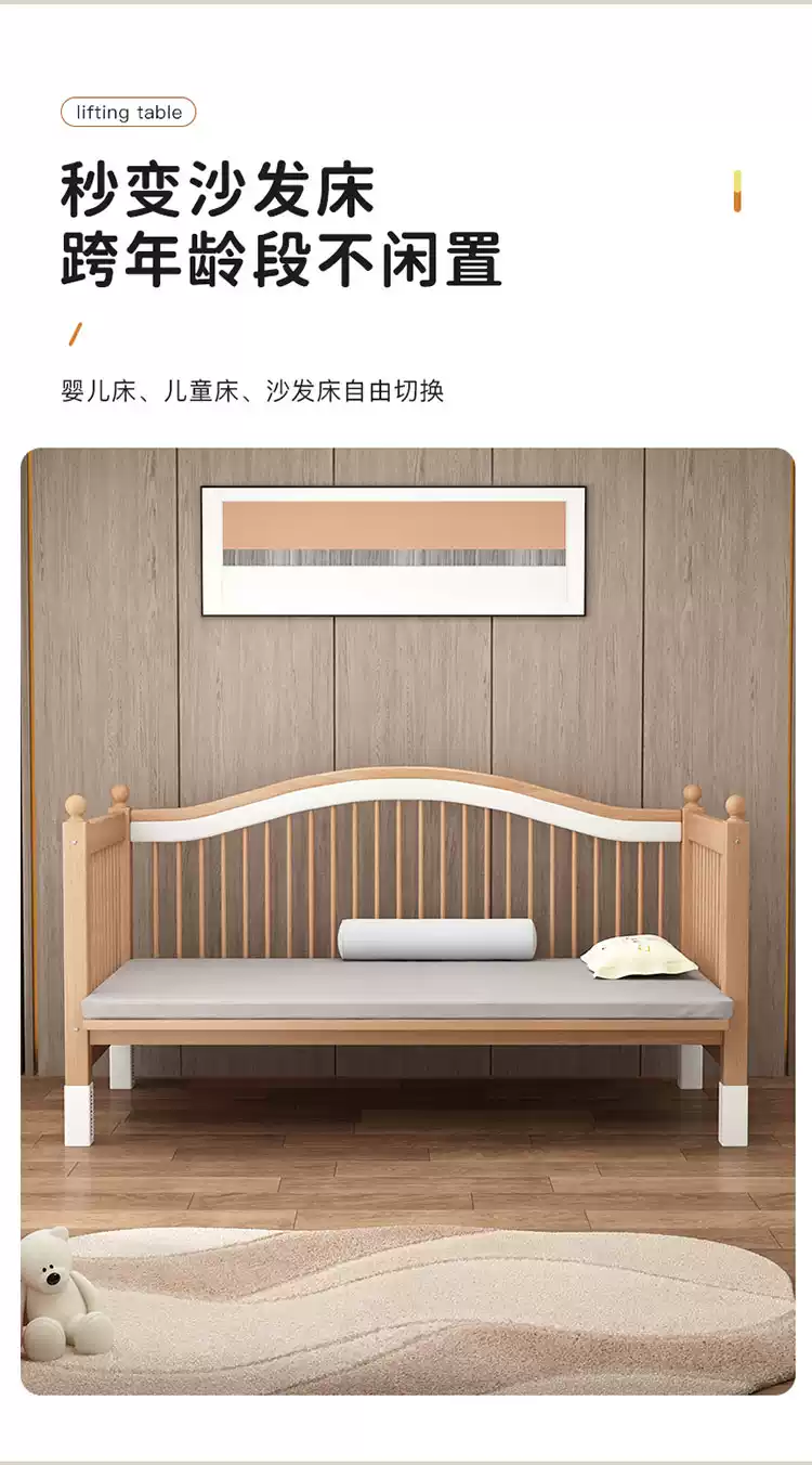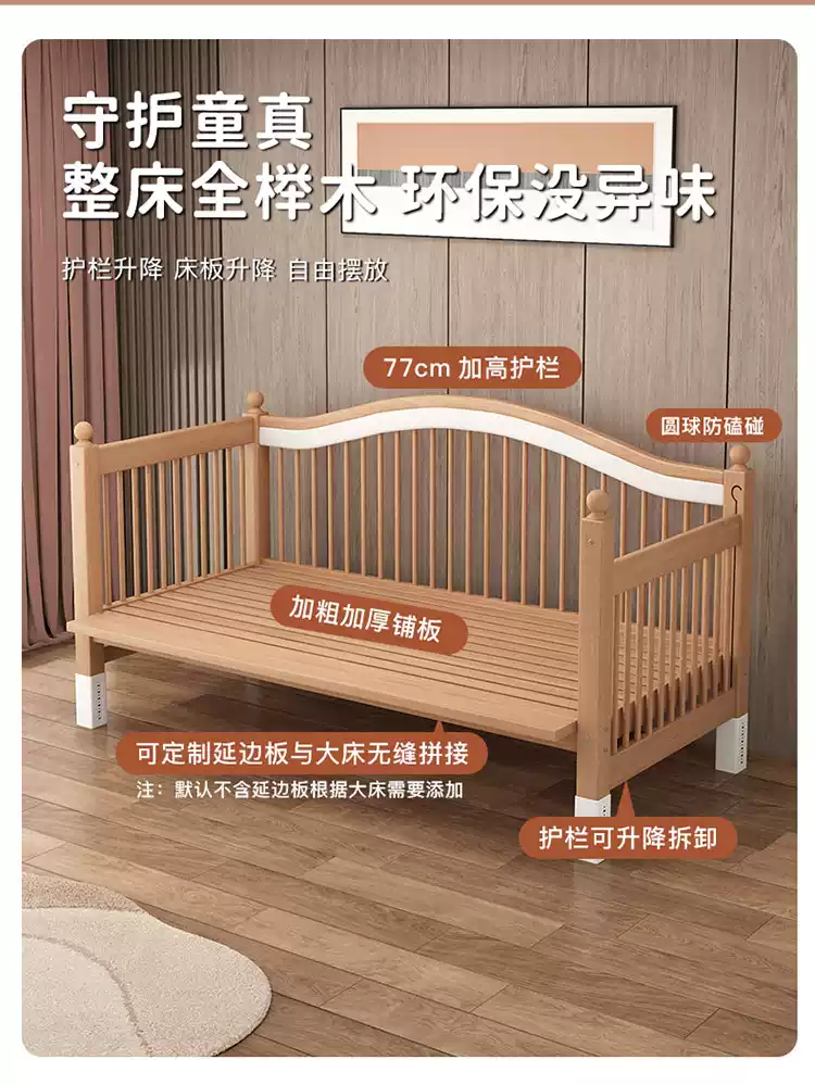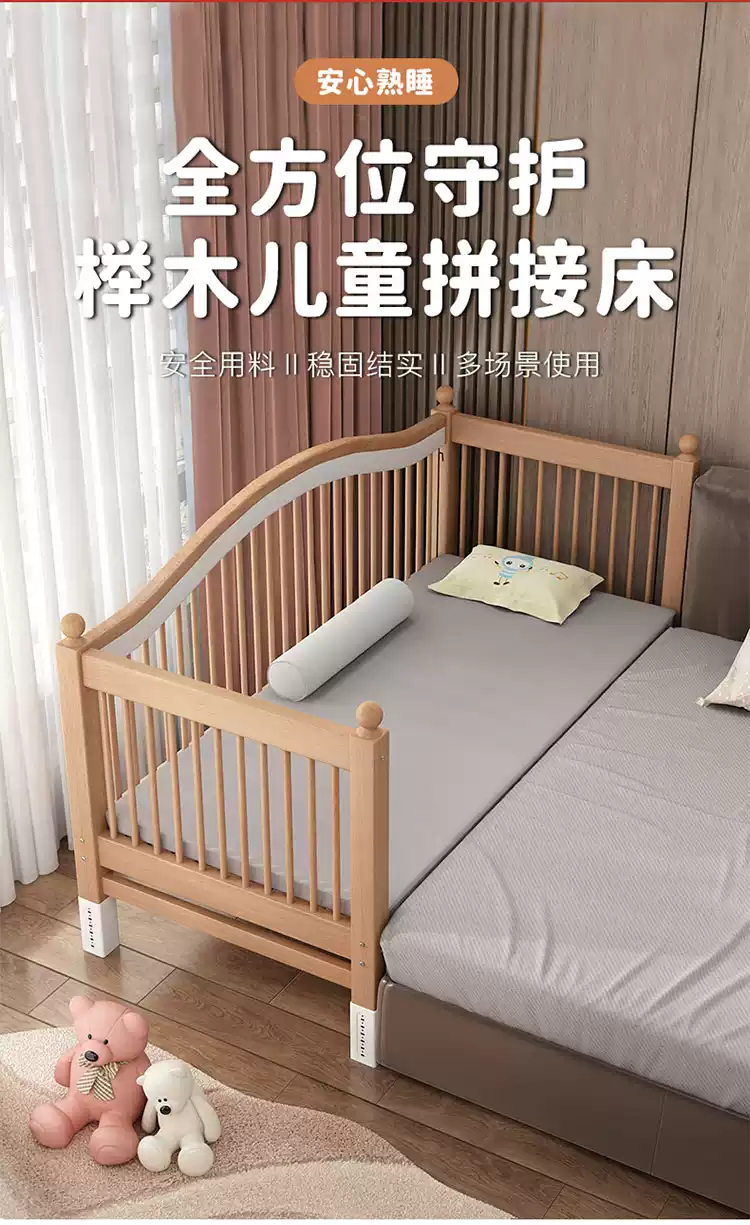 Shantou Lincun Beech Baby Spliced Bed Children's Solid Wood Widened Bed High Guardrail Baby Bed Liftable Bedside Bed Sofa Bed Three Side Lifts + 5cm Coconut Palm Mat + Class A Pure Cotton Bed Surrounder 150x60cm