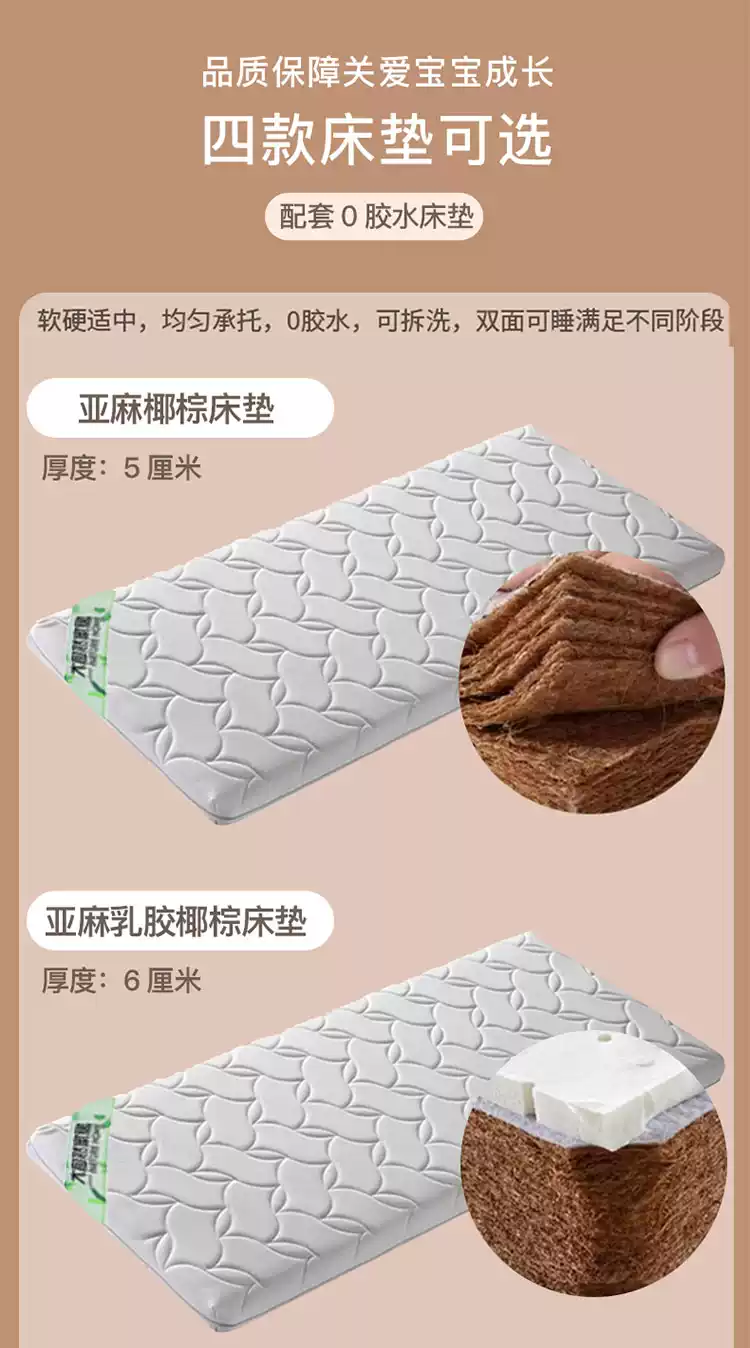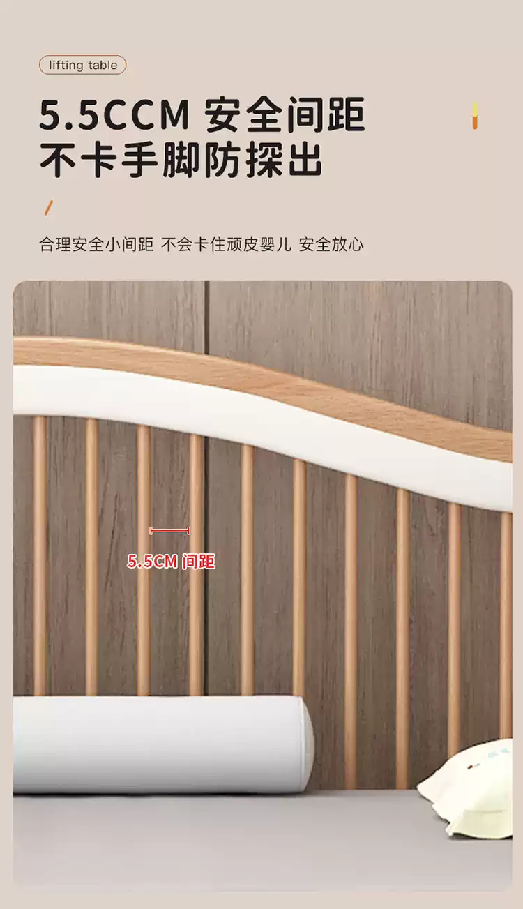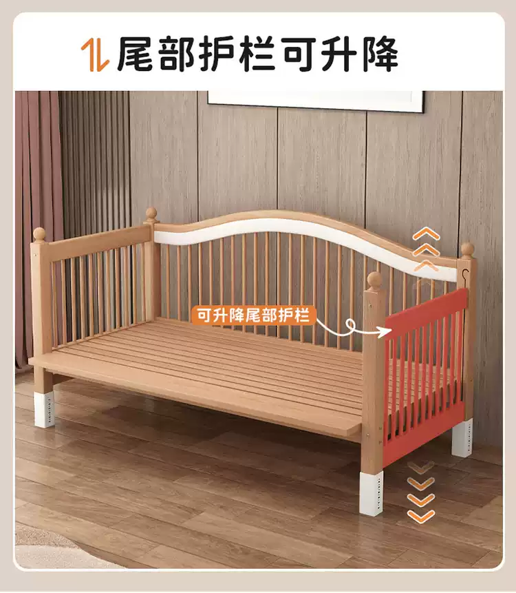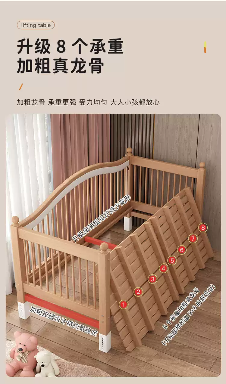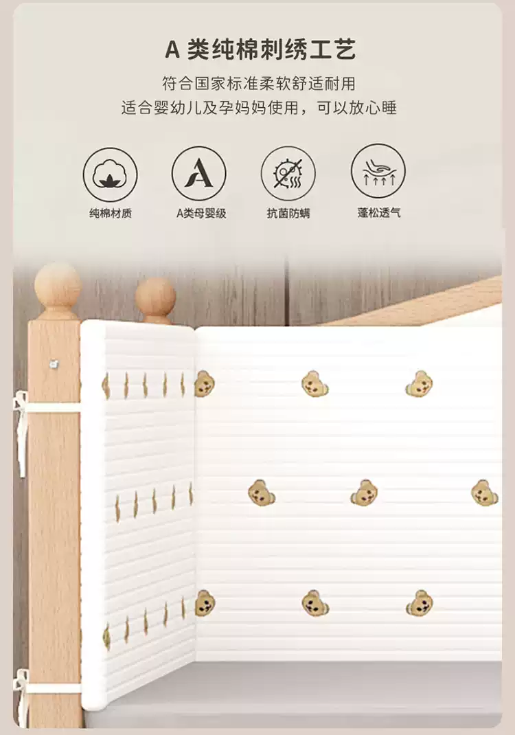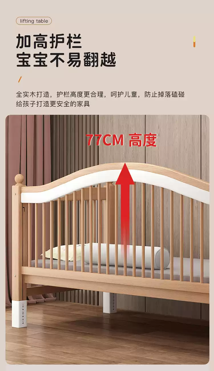 Shantou Lincun Beech Baby Spliced Bed Children's Solid Wood Widened Bed High Guardrail Baby Bed Liftable Bedside Bed Sofa Bed Three Side Lifts + 5cm Coconut Palm Mat + Class A Pure Cotton Bed Surrounder 150x60cm