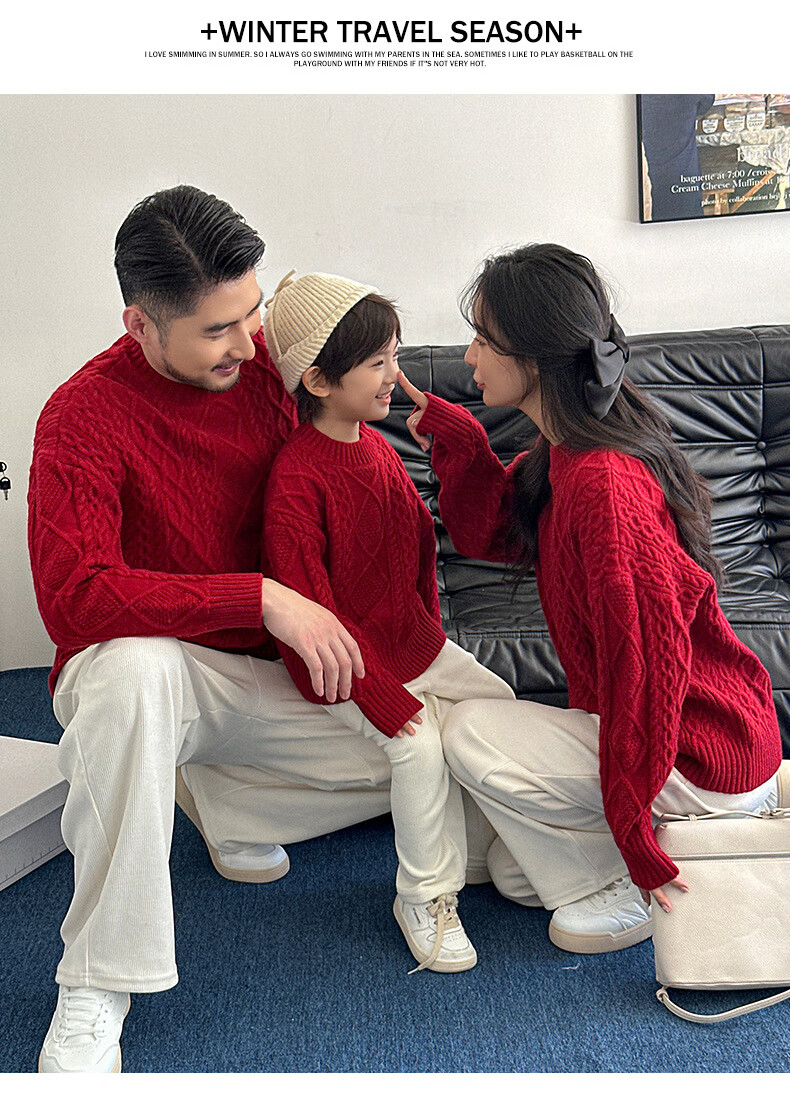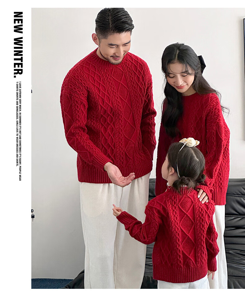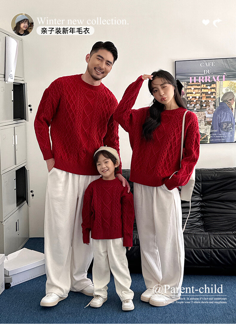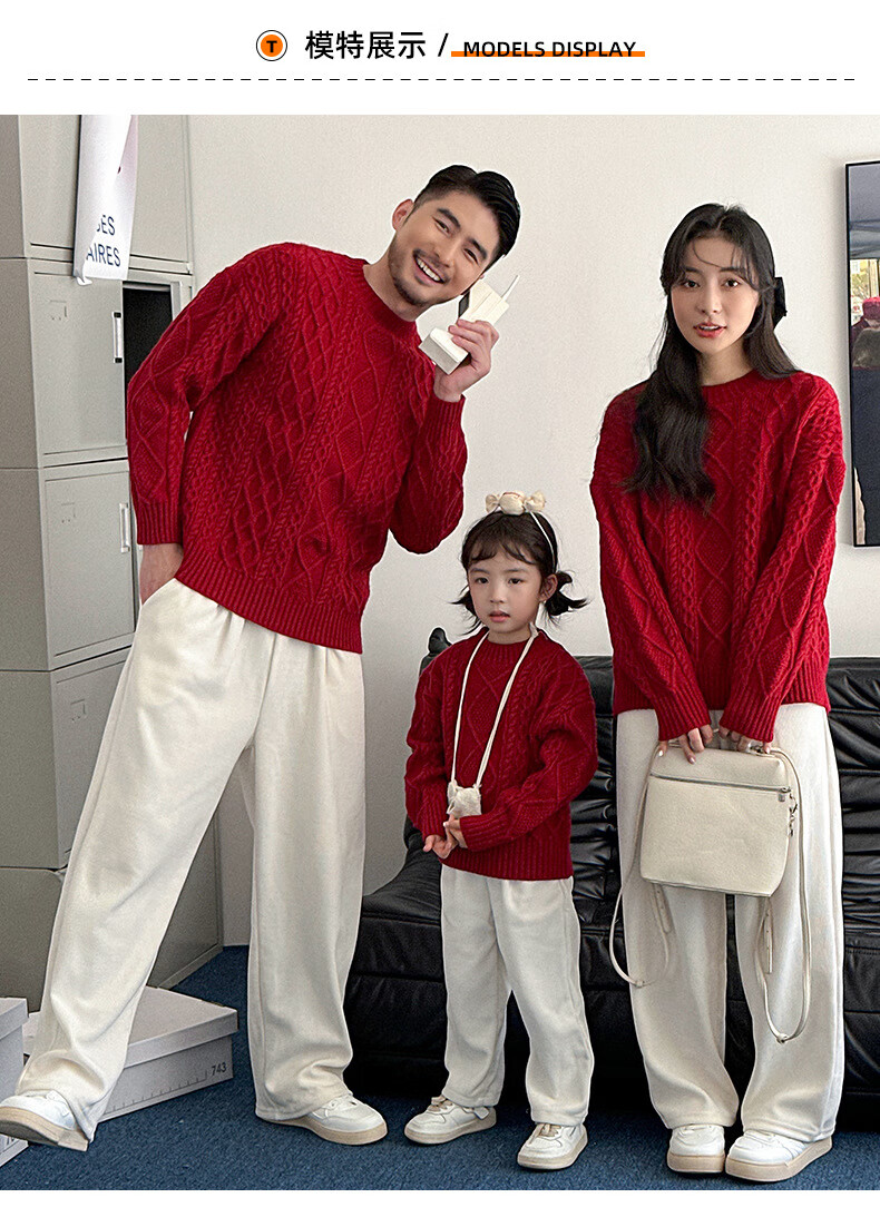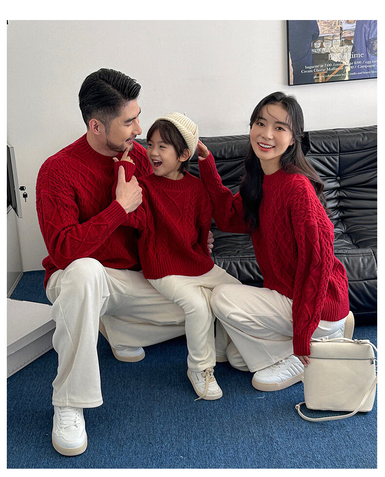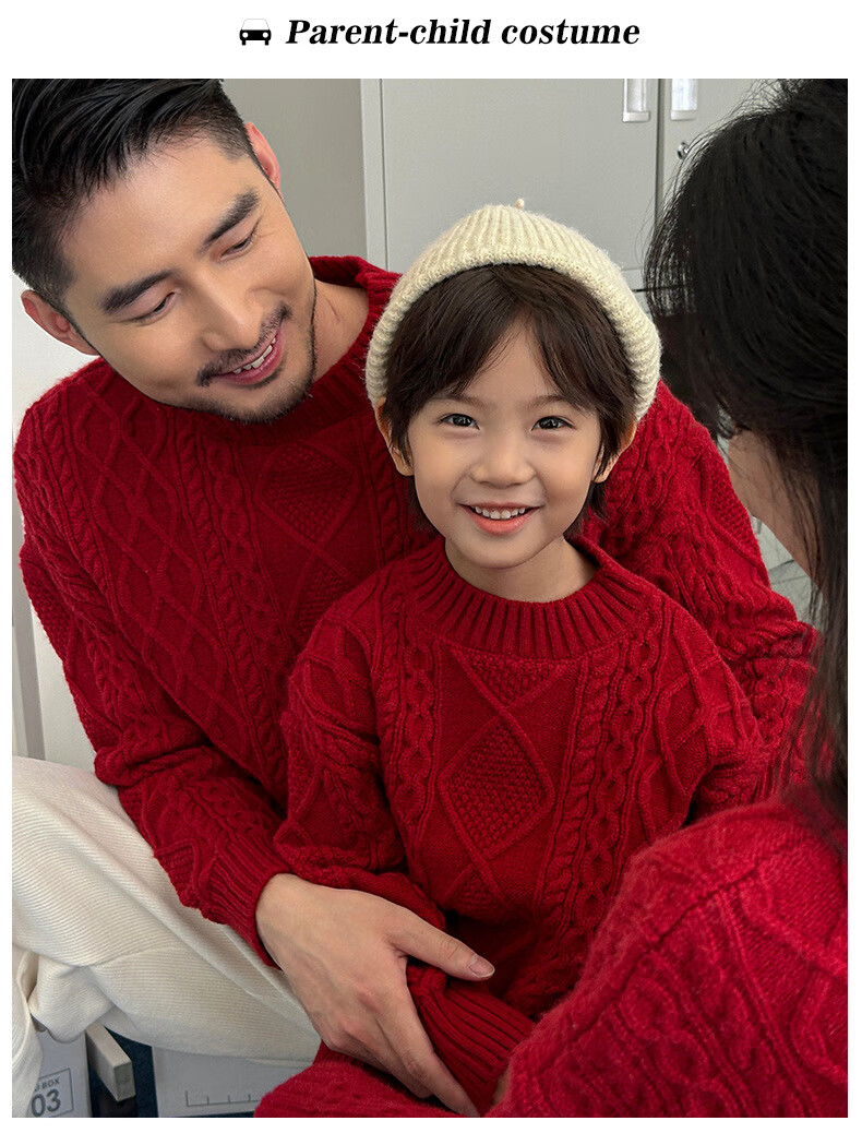 G.duck parent-child New Year's greetings clothes for a family of three and four for photo taking red New Year sweaters thickened Spring Festival street clothes for the whole family new version of twist sweater 140 cm