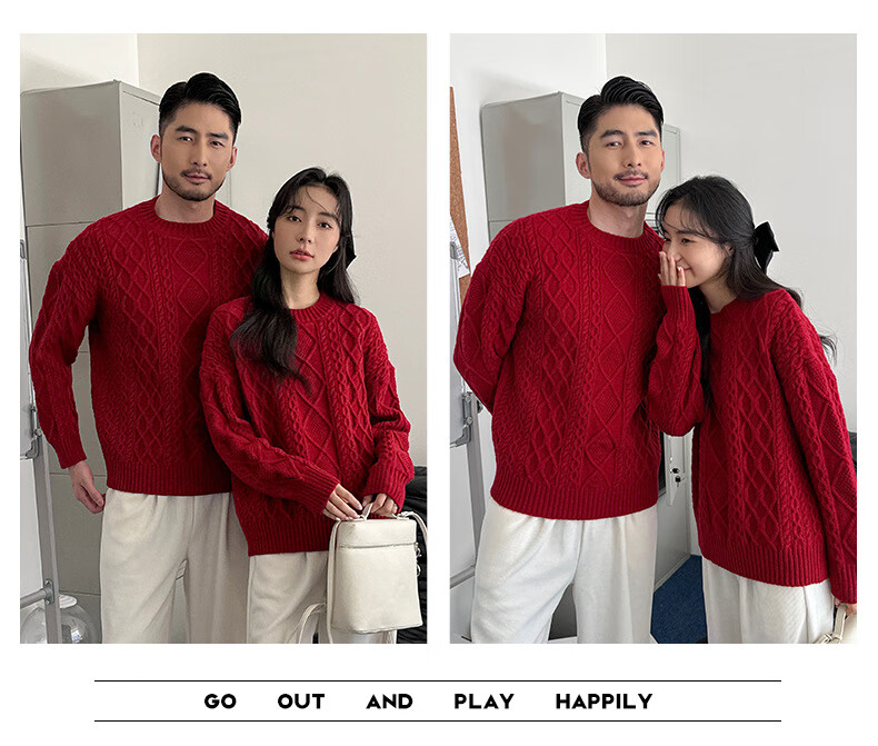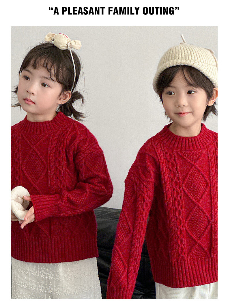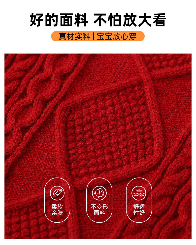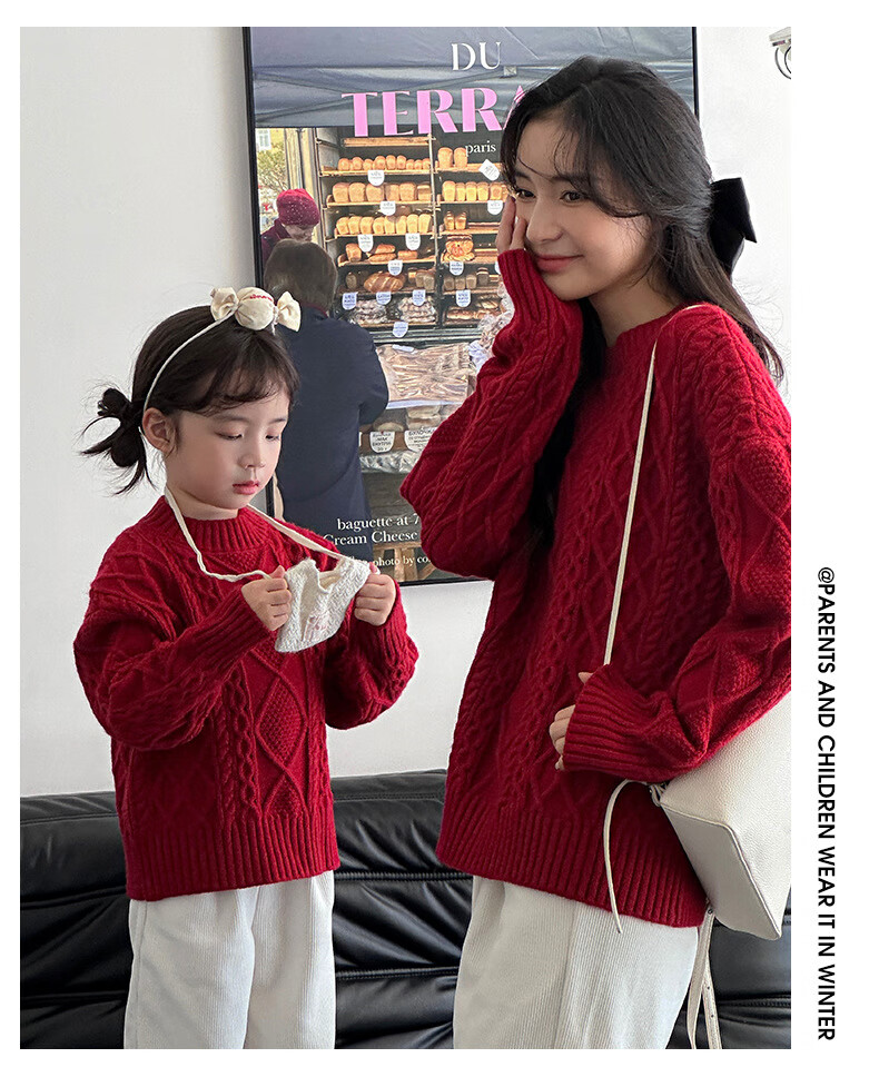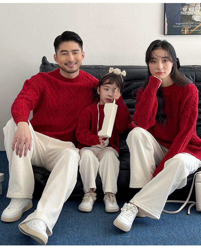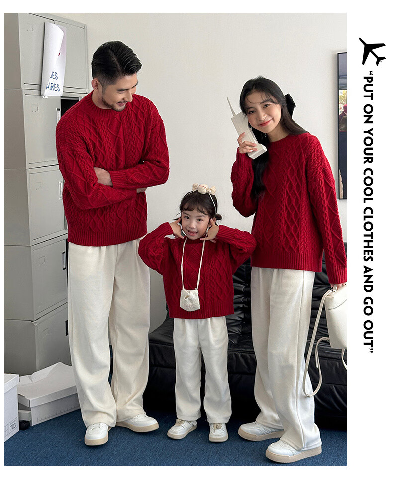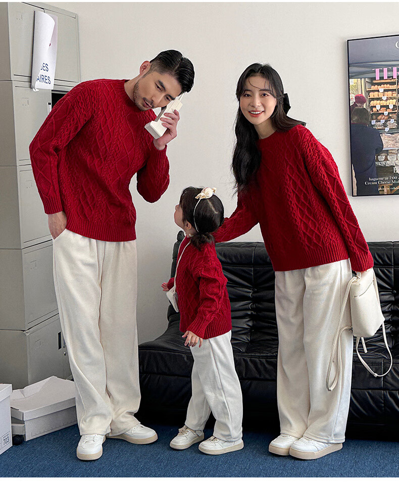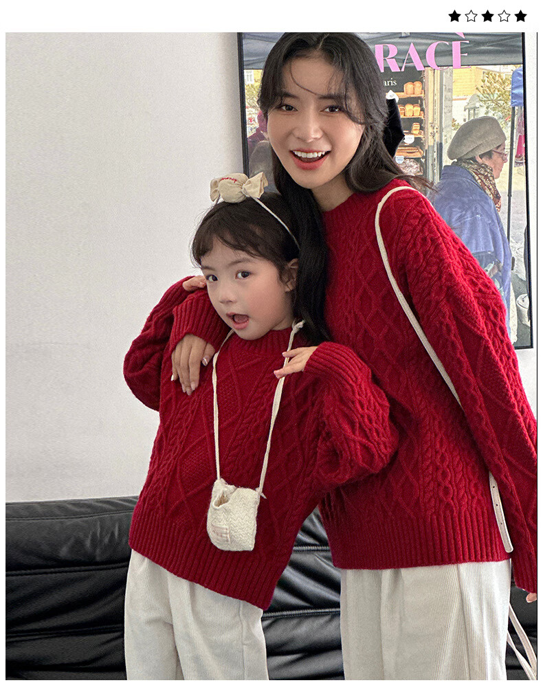 G.duck parent-child New Year's greetings clothes for a family of three and four for photo taking red New Year sweaters thickened Spring Festival street clothes for the whole family new version of twist sweater 140 cm