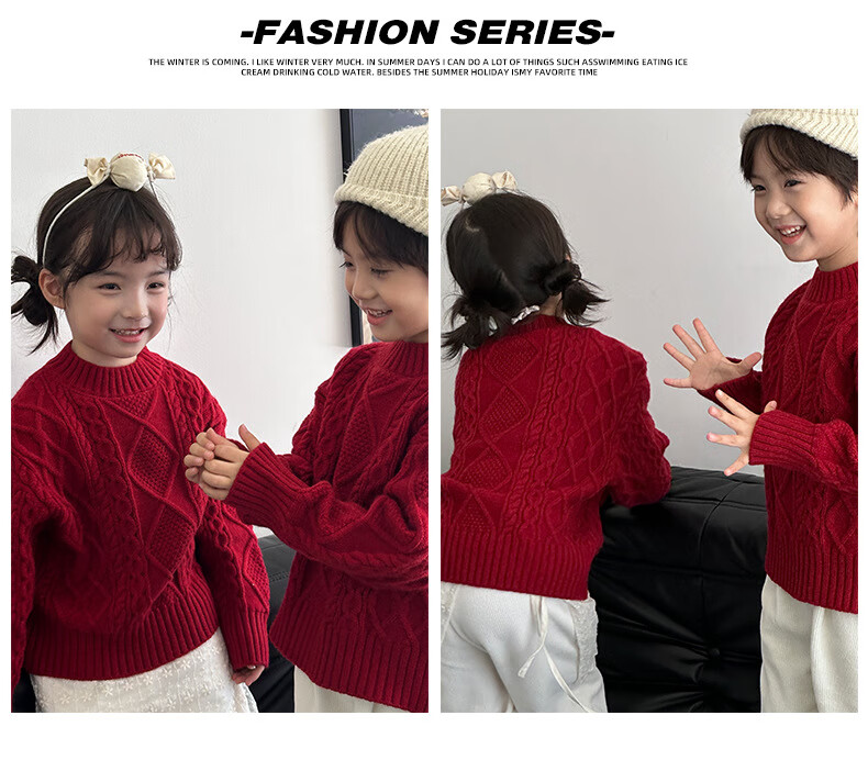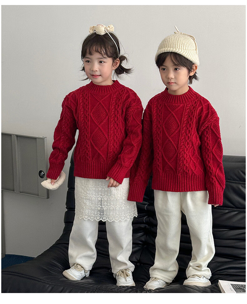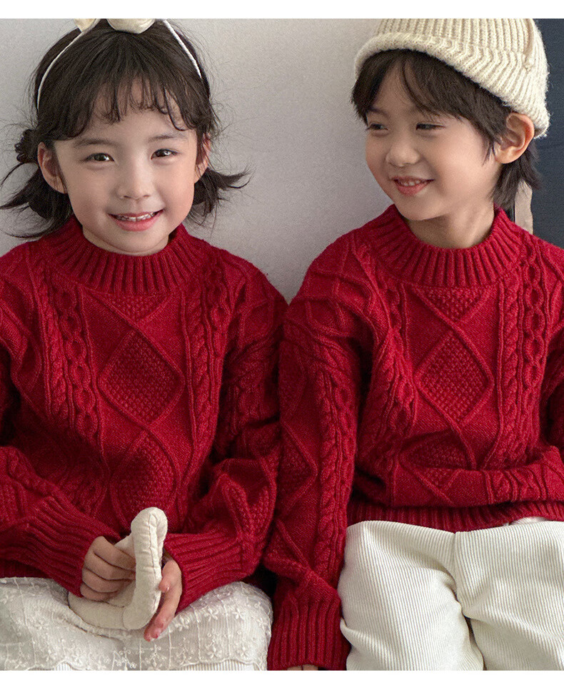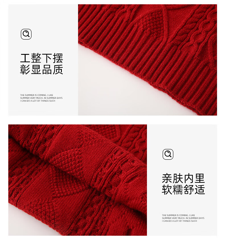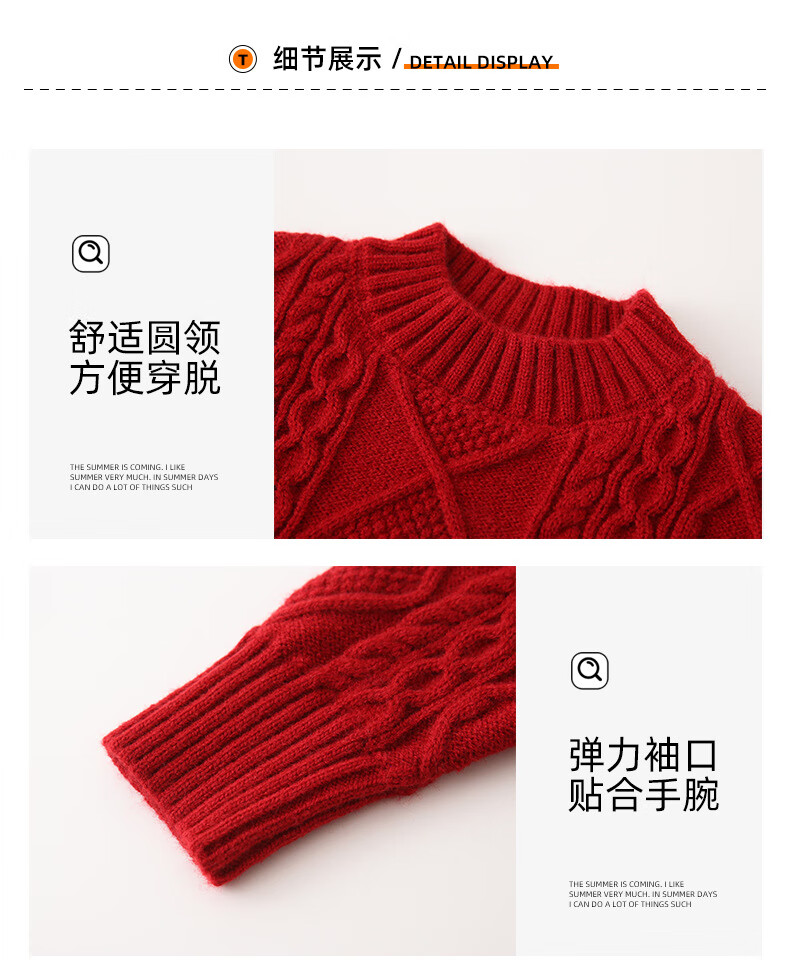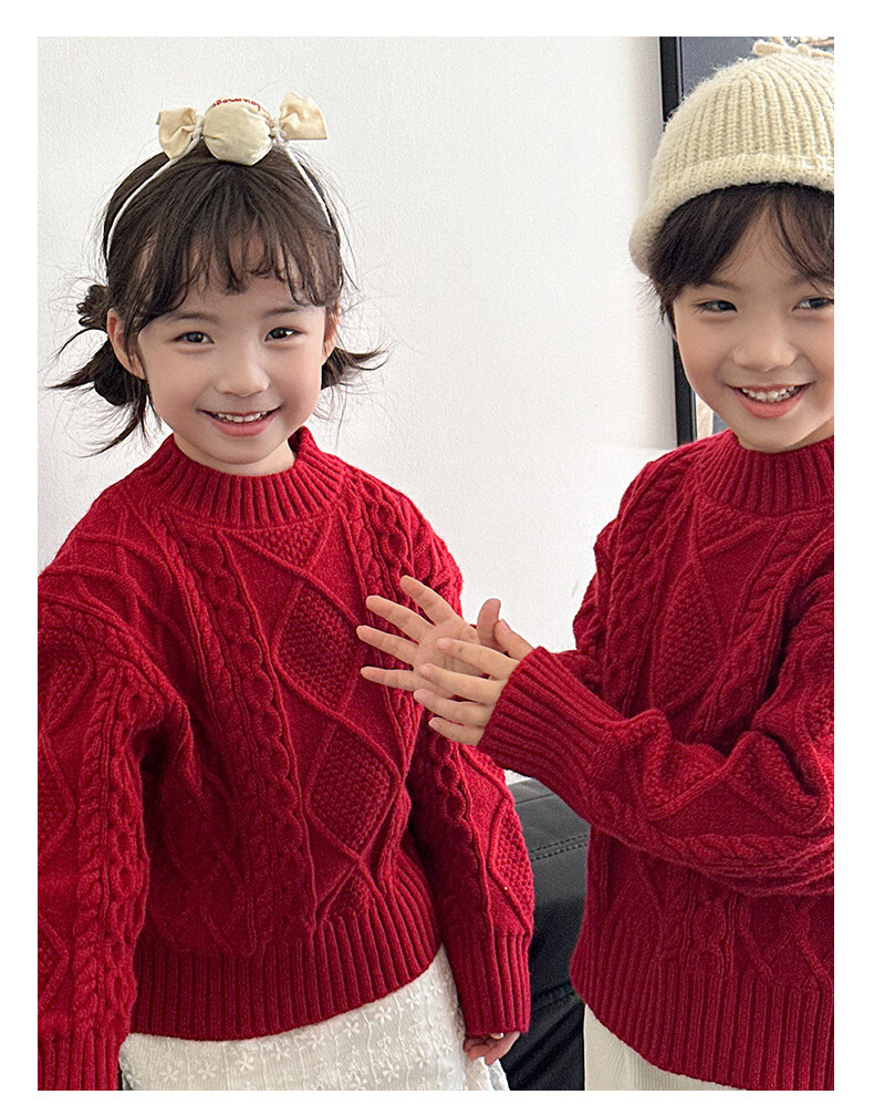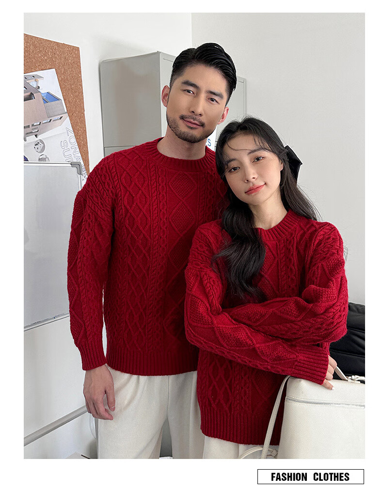 G.duck parent-child New Year's greetings clothes for a family of three and four for photo taking red New Year sweaters thickened Spring Festival street clothes for the whole family new version of twist sweater 140 cm