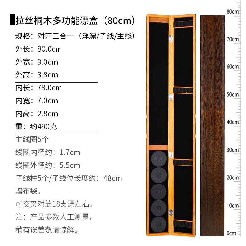 Green Jantang Paulownia Float Box Set 47657580100 Solid Wood Large Capacity Multifunctional Fish Float Box Fishing Gear Brushed Paulownia Float Box 45