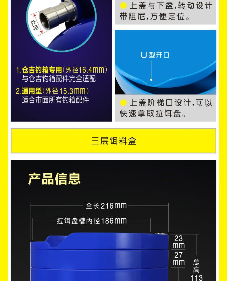 Bait box strong magnetic pull bait tray universal competitive black pit multi-functional fishing bait mixed bait open bait basin fishing gear bait box light blue double layer