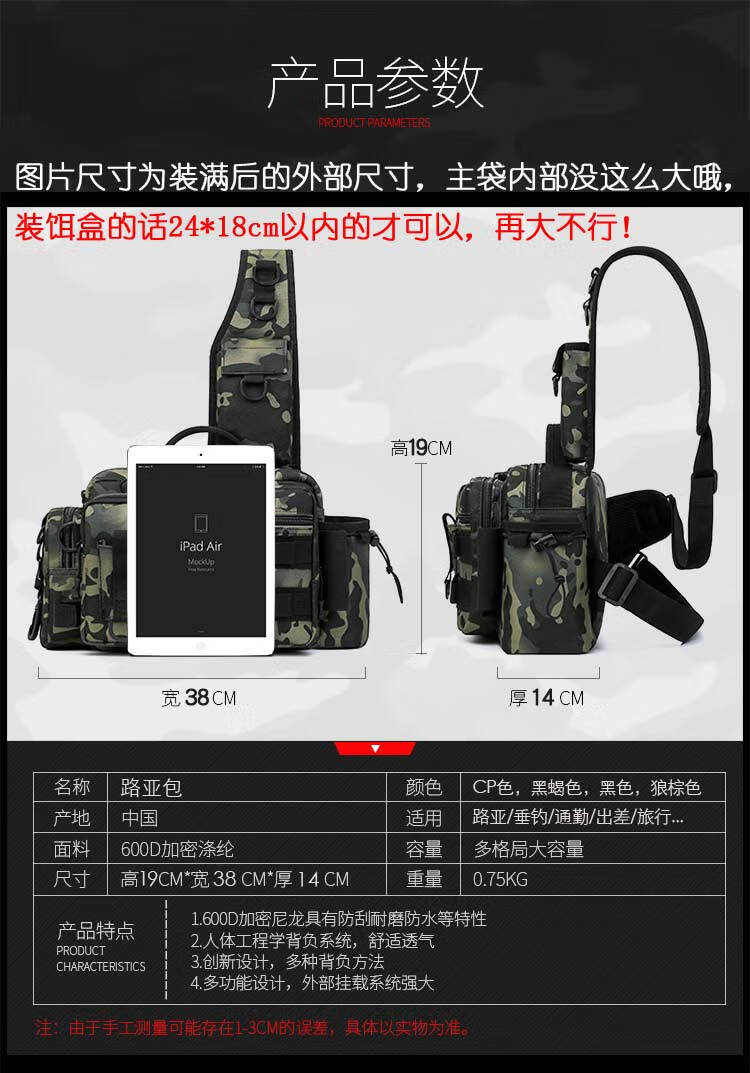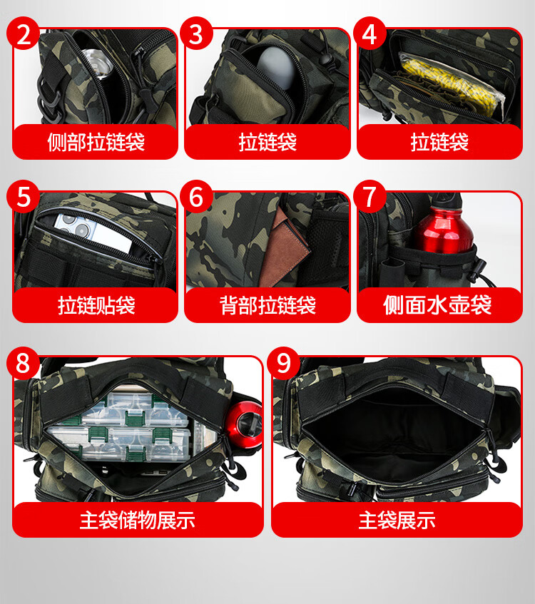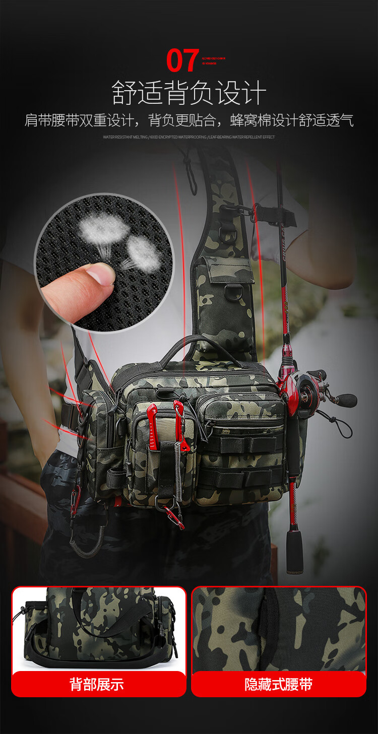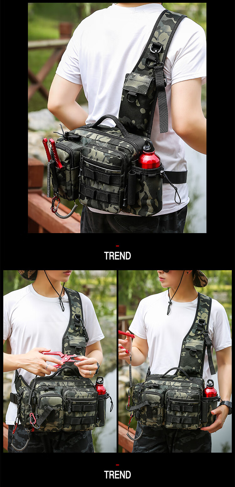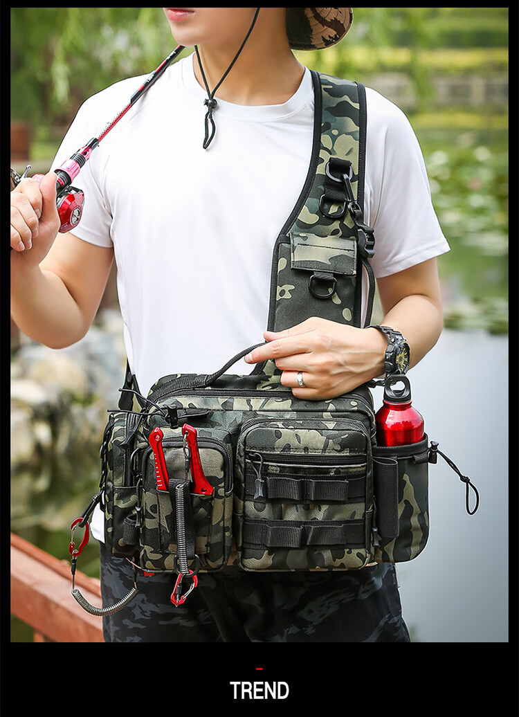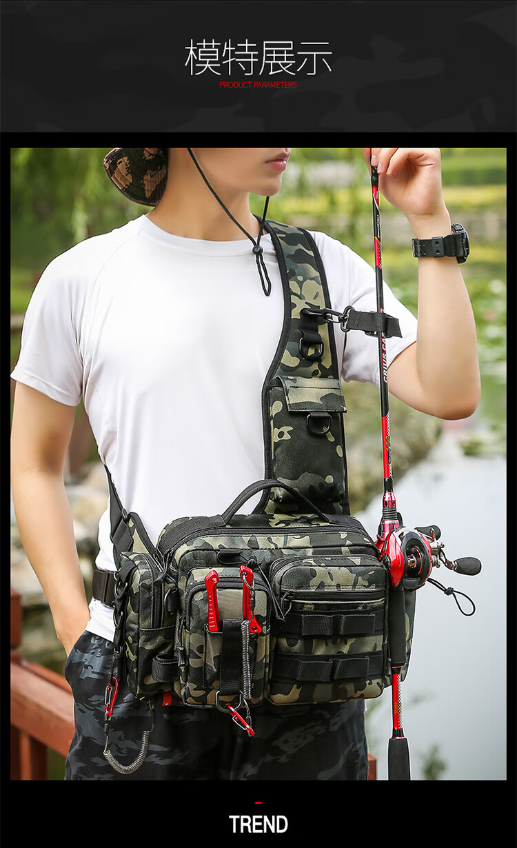 Aoyan Lailua bag multifunctional waist bag shoulder bag messenger bag fishing rod bag bait box fishing gear bag new large capacity black CP color new luxury version