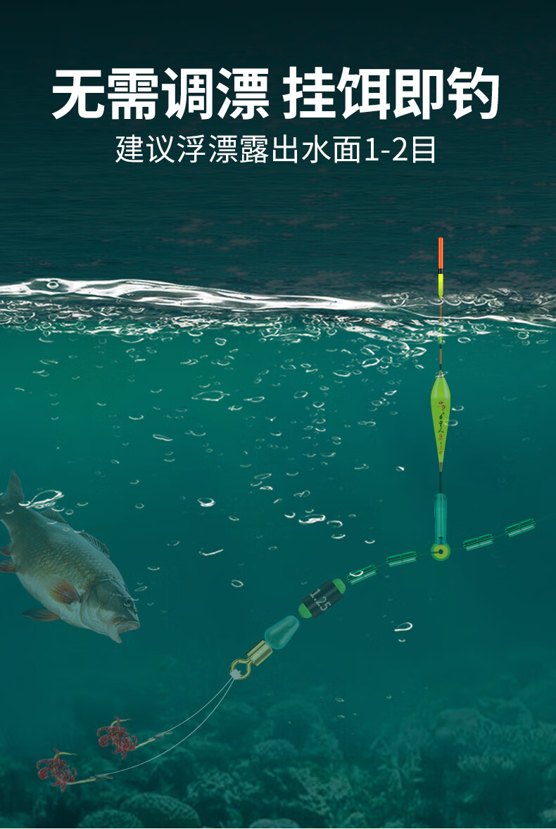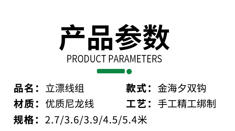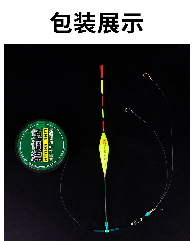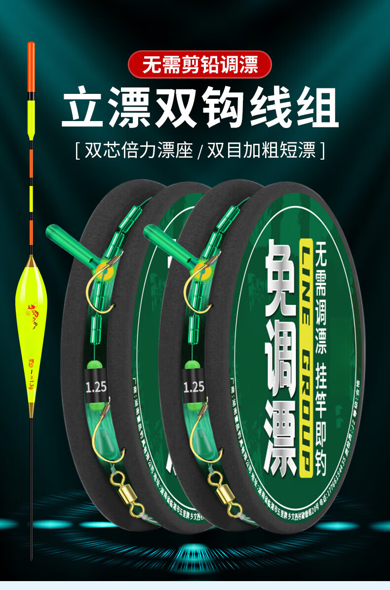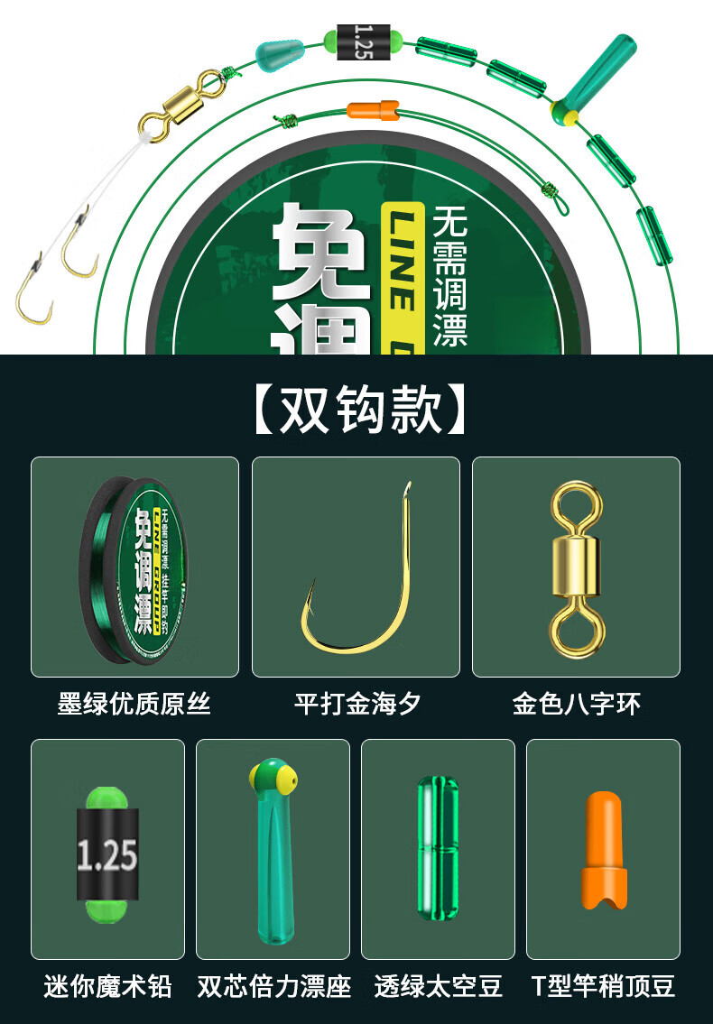 OEING's new vertical floating double hook tied fishing line set line components fishing main line adjustment-free floating gold Haixi fish hook fishing gear 2.7 meters - 6 rolls come with 3 floating + line box 0.8 main line + 0.6 sub-line + 2 Haixi double hooks