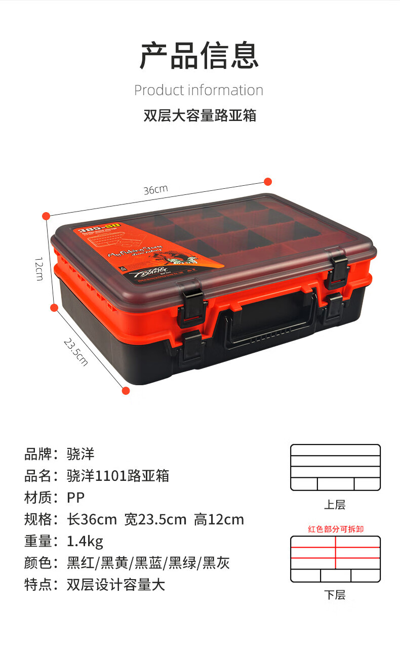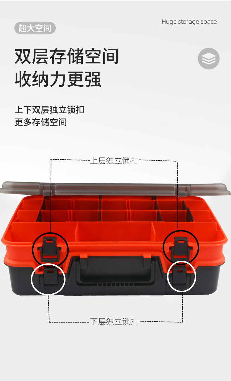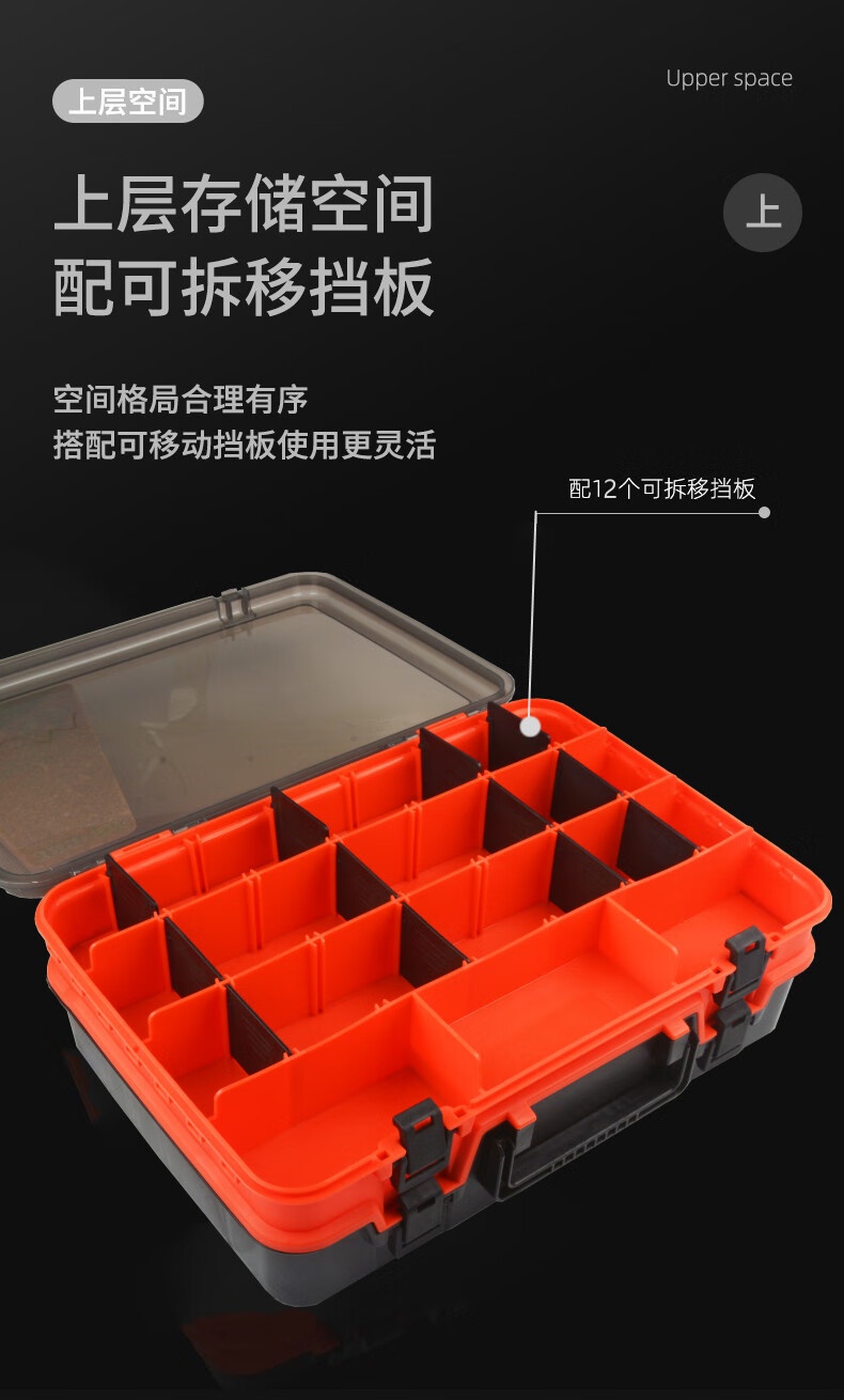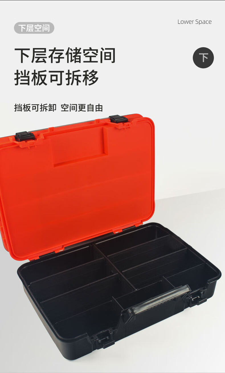 Large portable lure box multi-functional double-layer large tool box fishing gear complete storage portable vertical upgrade model black and red double-layer large bait box