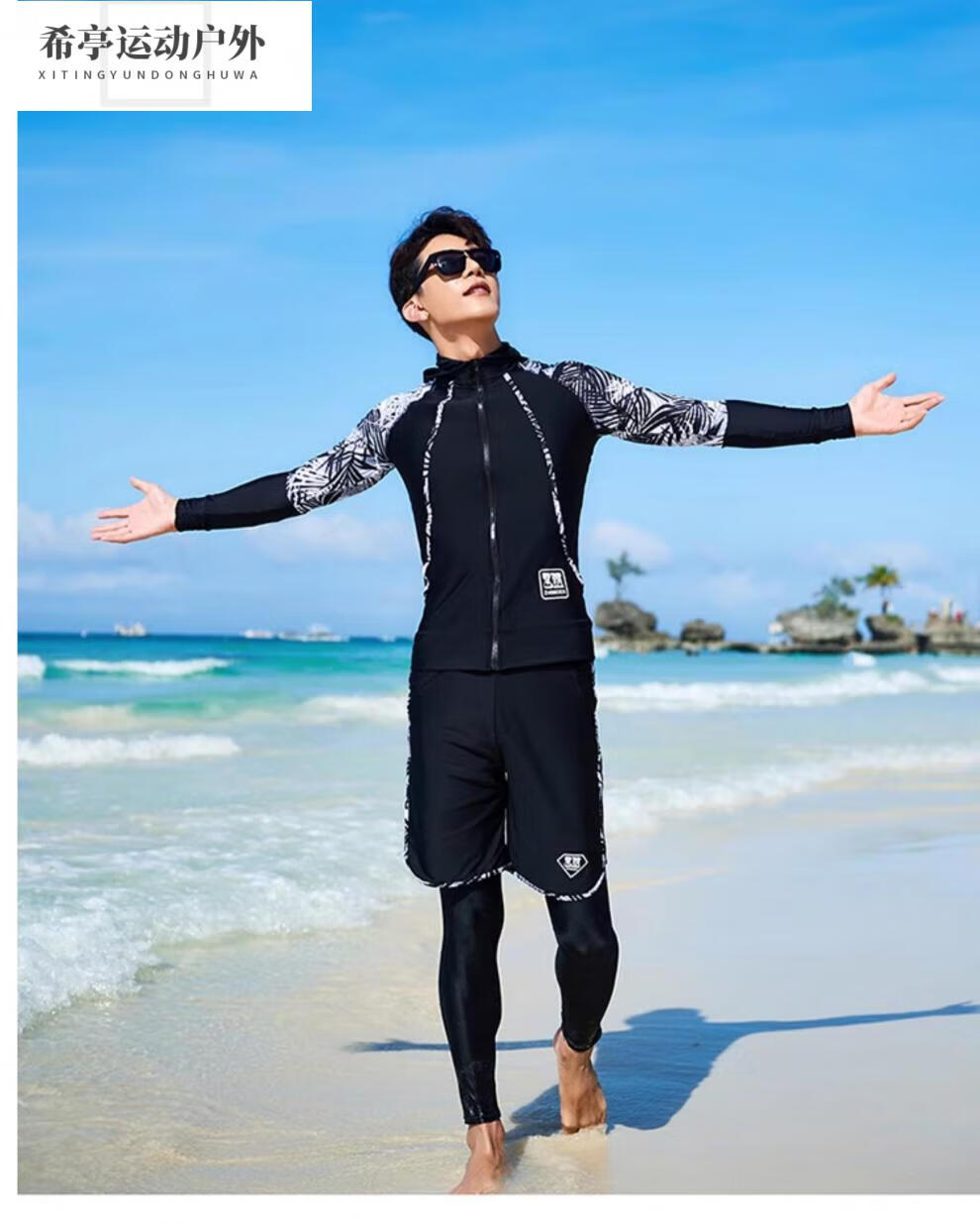 Shunhe Kangya Motorboat Quick Drying Suit Large Size Wetsuit Suit New Men's Wetsuit Split Long Sleeve Pants Sun Protection Quick Drying 2015 Men's Three-piece Swimming Cap L L