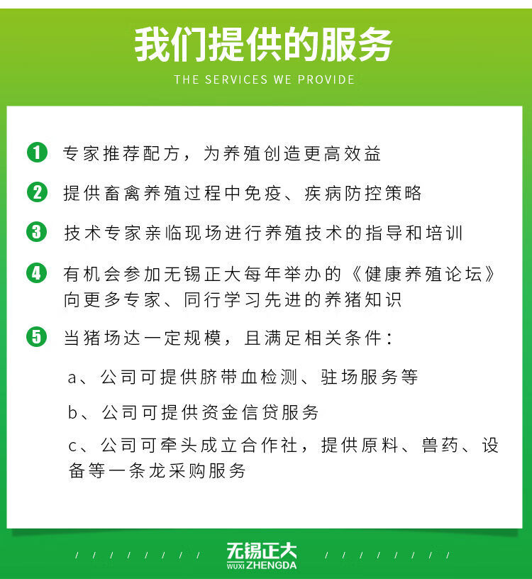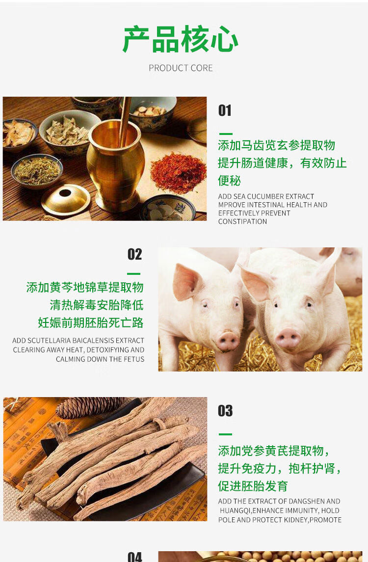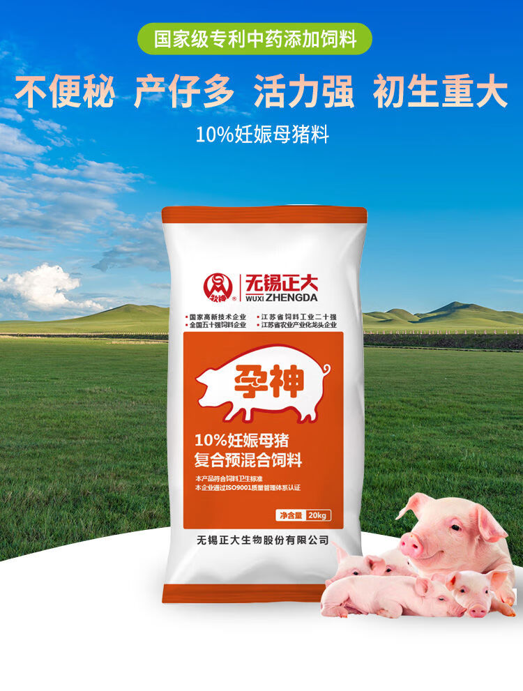 Zhengda sow premixed feed with traditional Chinese medicine added with 10 additives that are good for giving birth to more estrus without antibiotics. Premixed feed for sows with Chinese medicine added with 10 additives that are good for giving birth to more estrus without antibiotics.