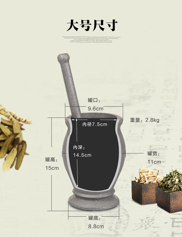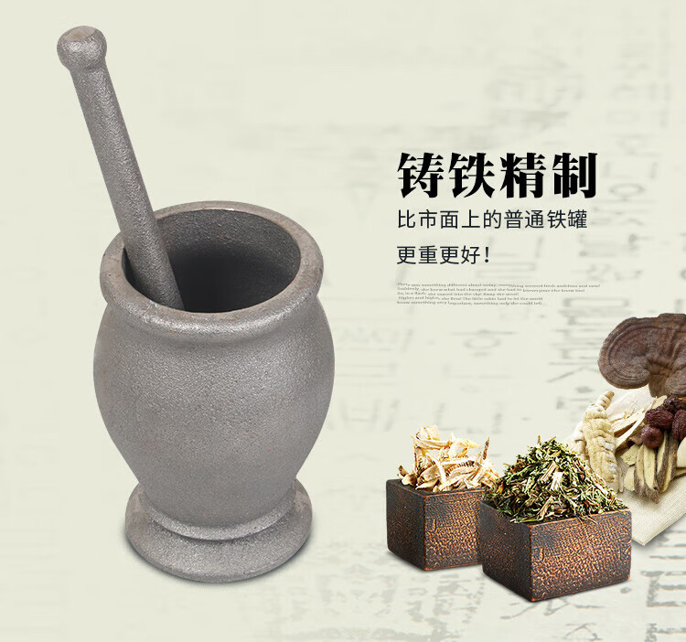 Sailoto cast iron tamping pot, nest-to-nest punching cylinder, mortar, pestle cylinder, mortar, grinder, grinding and mashing pepper, medium leather cover