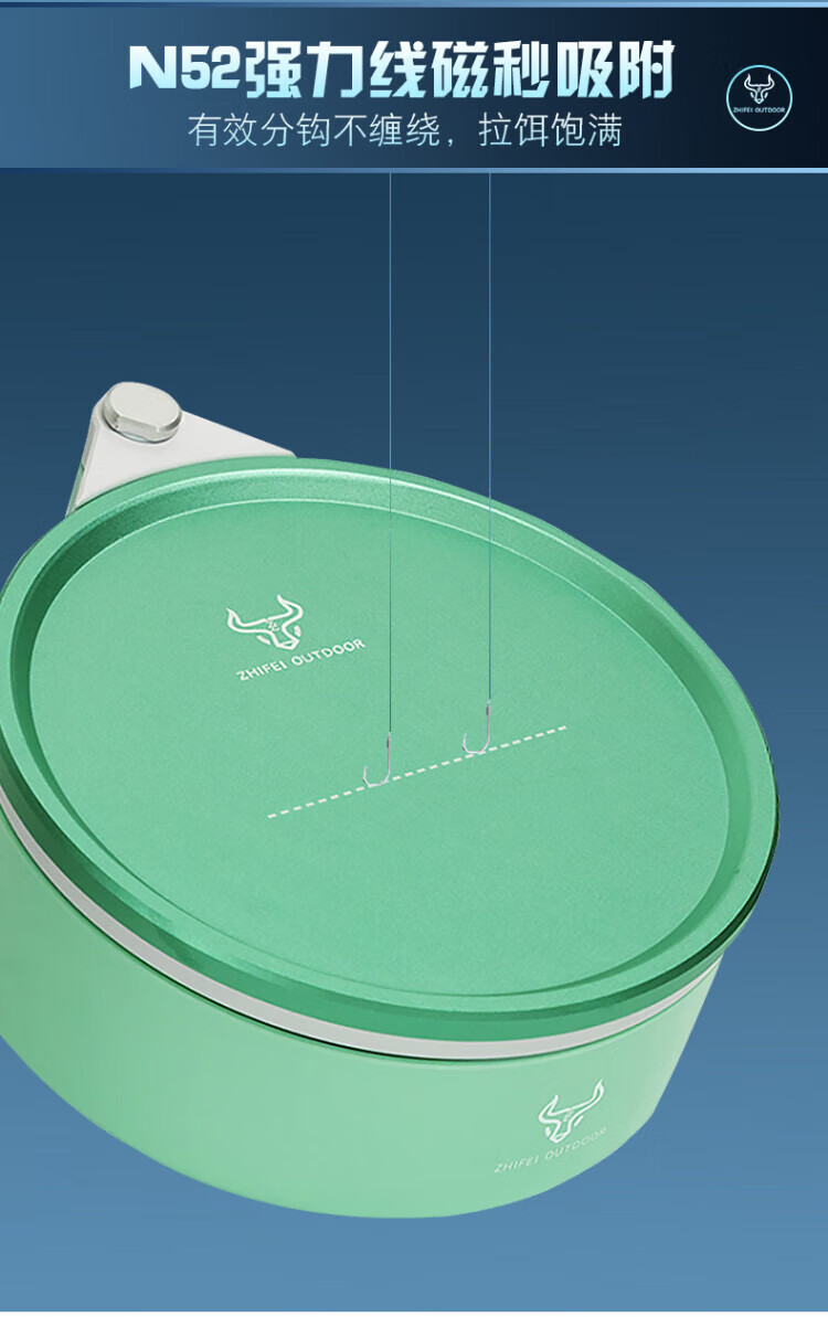 Sanqihu New Bait Tray Line Magnetic Aluminum Alloy Open Bait Basin Strong Magnetic Single Layer Vertical Hook Fishing Box Fishing Chair Loose Cannon Food Box Tray New Bait Tray Apple Green