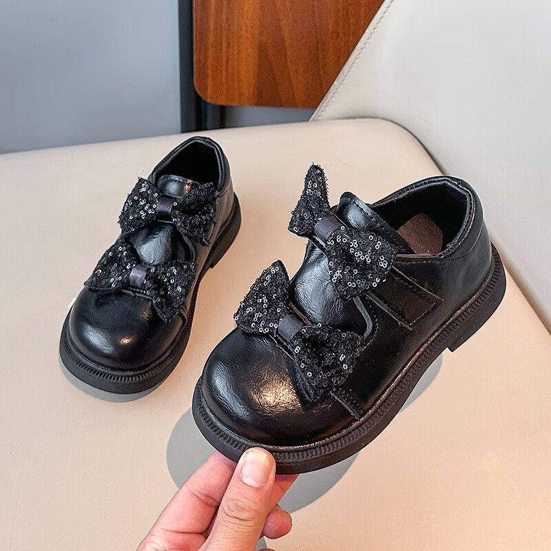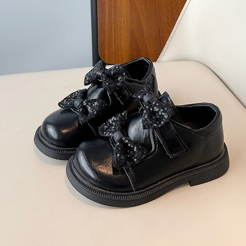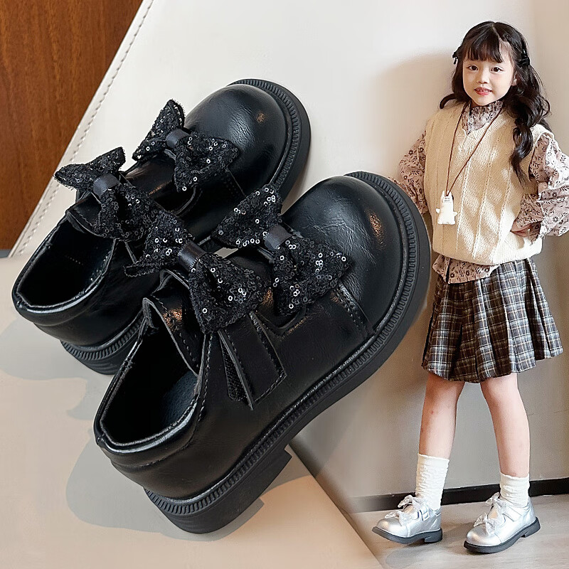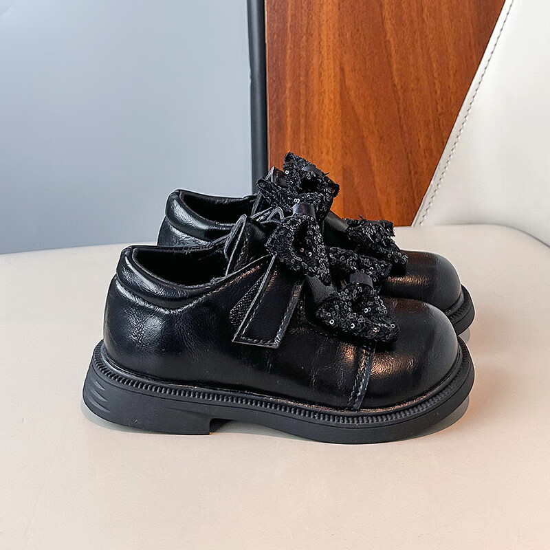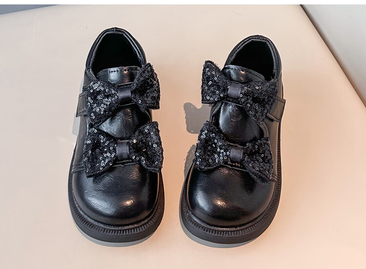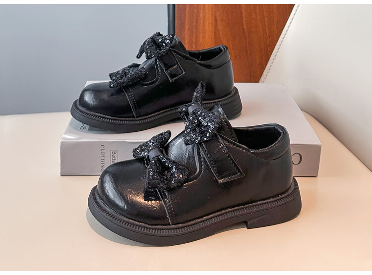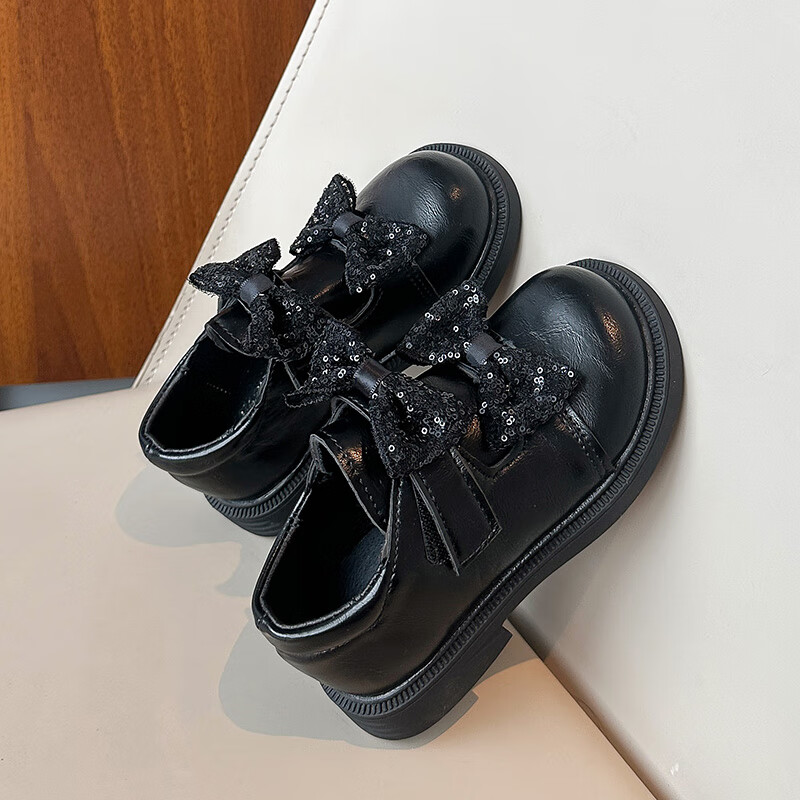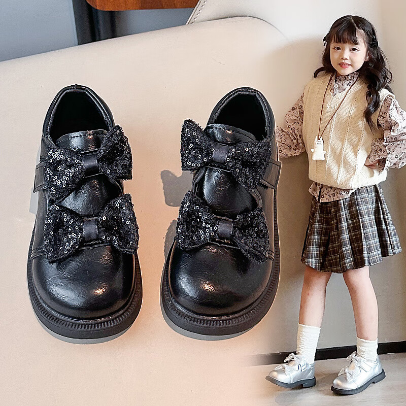 2025 new autumn girls' leather shoes with Velcro, fashionable and lightweight girls' Korean princess shoes, campus student dance shoes, black 36 (inner length about 22cm)