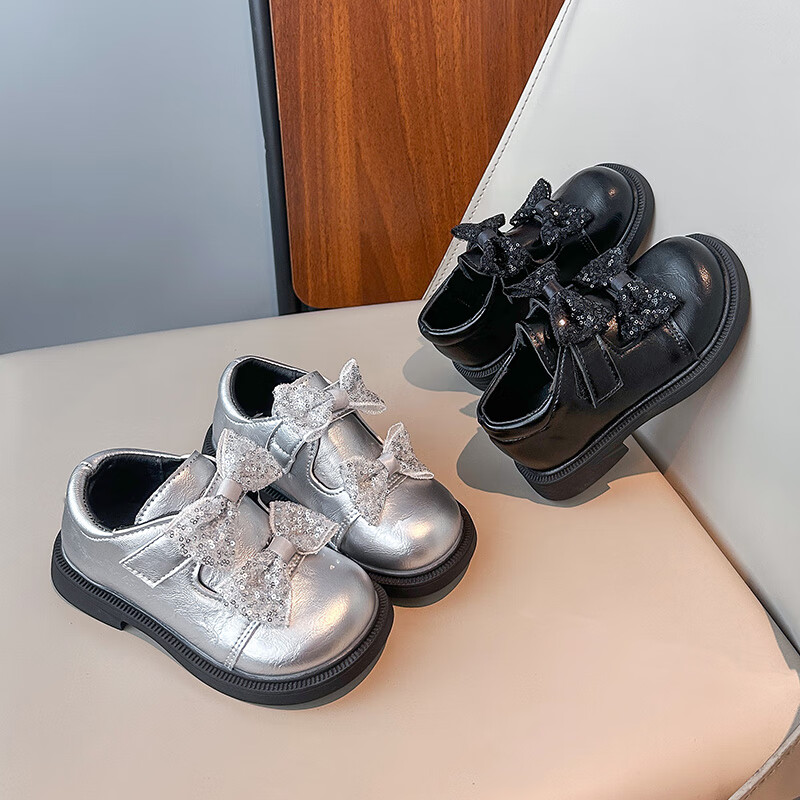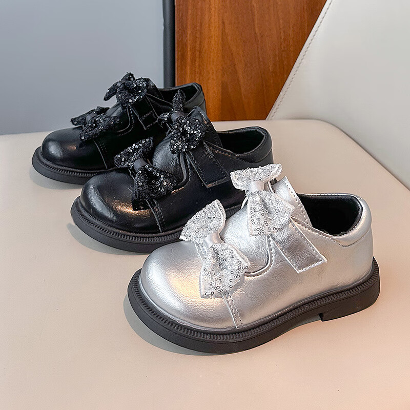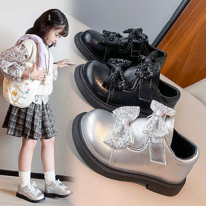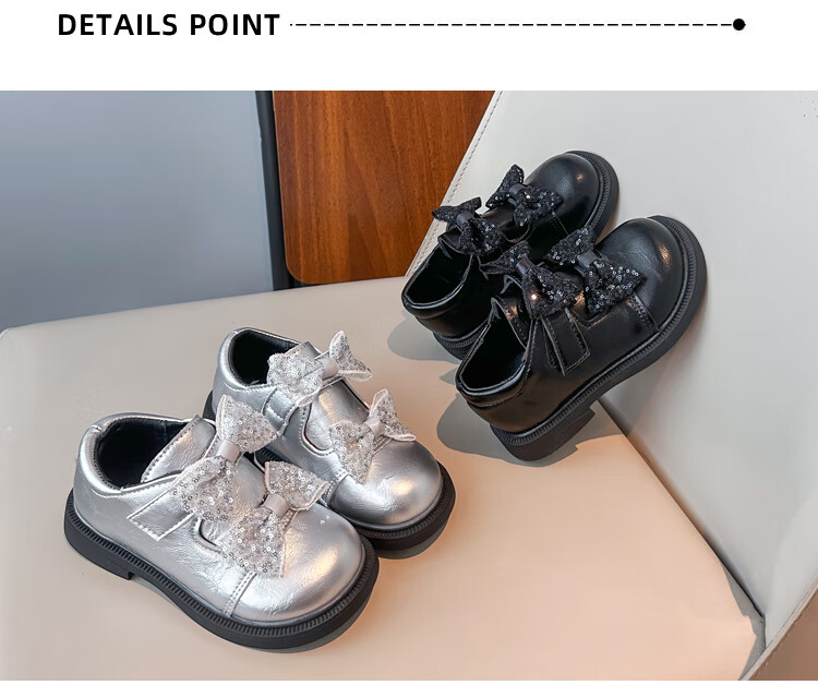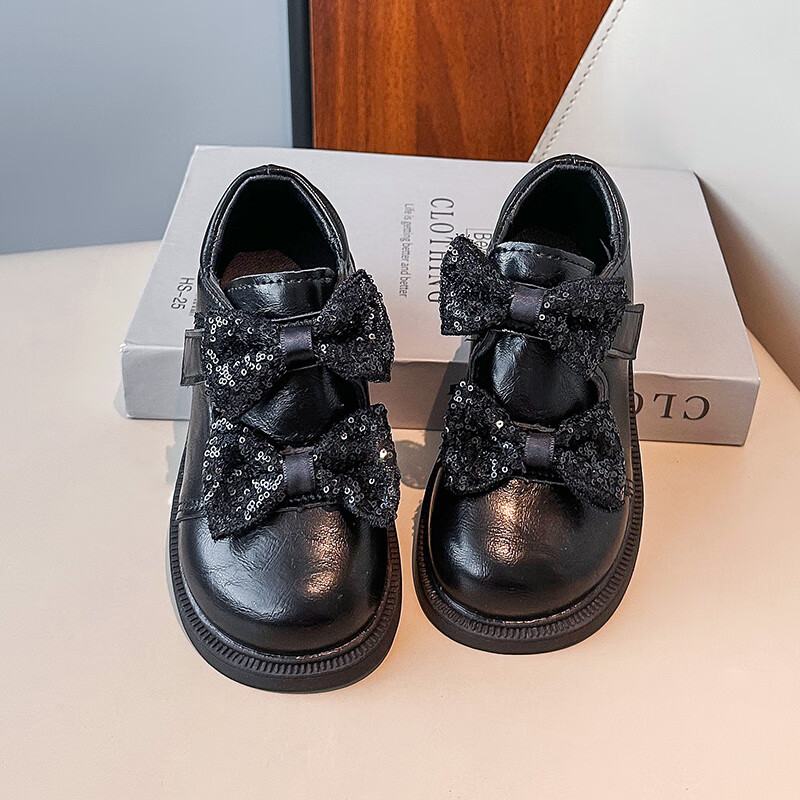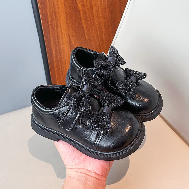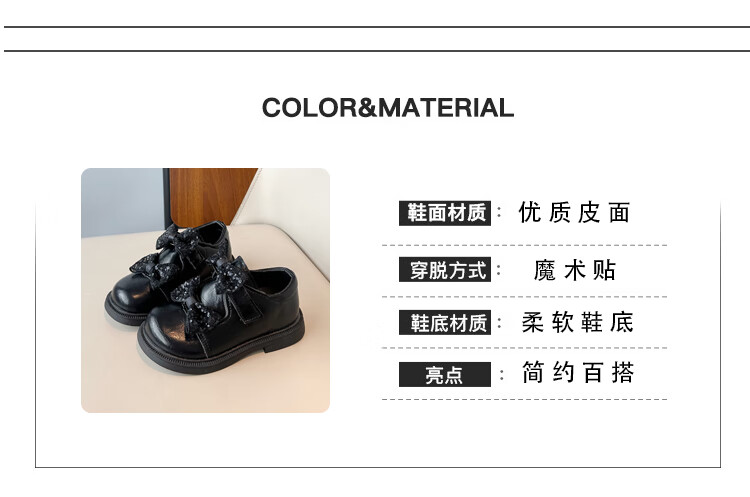 2025 new autumn girls' leather shoes with Velcro, fashionable and lightweight girls' Korean princess shoes, campus student dance shoes, black 36 (inner length about 22cm)