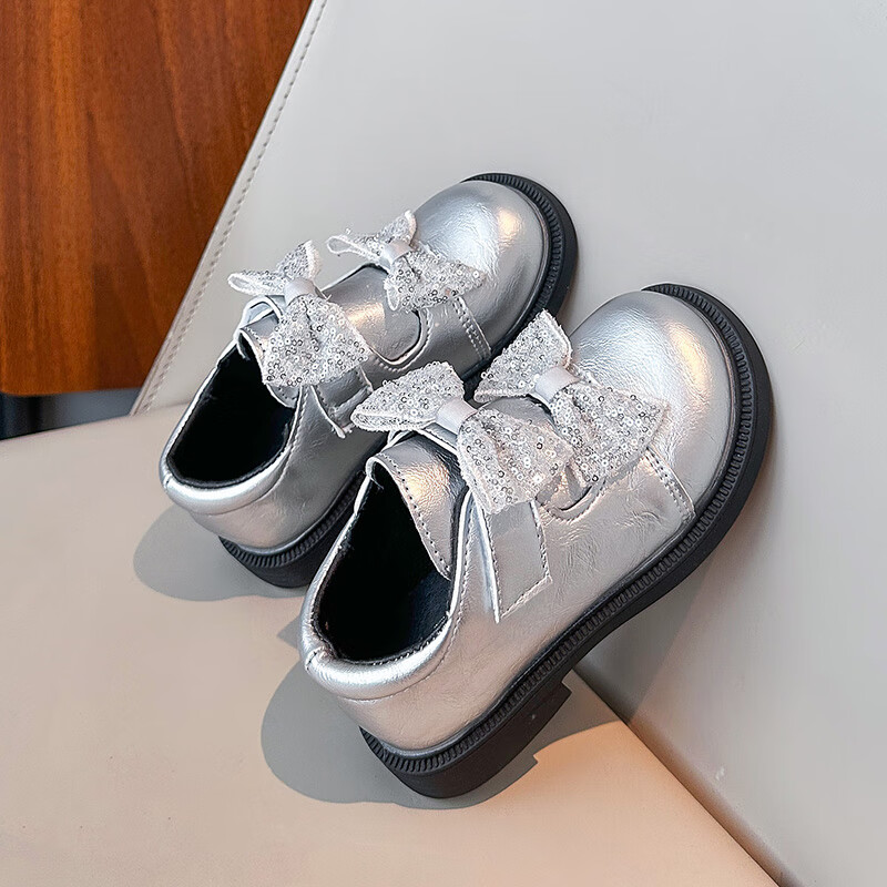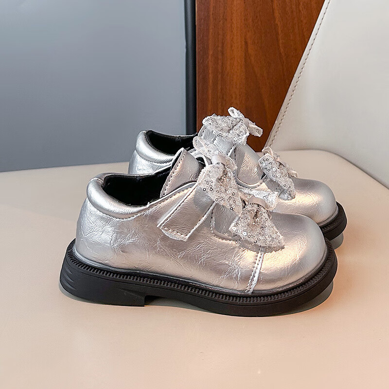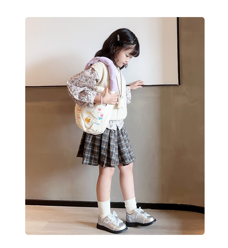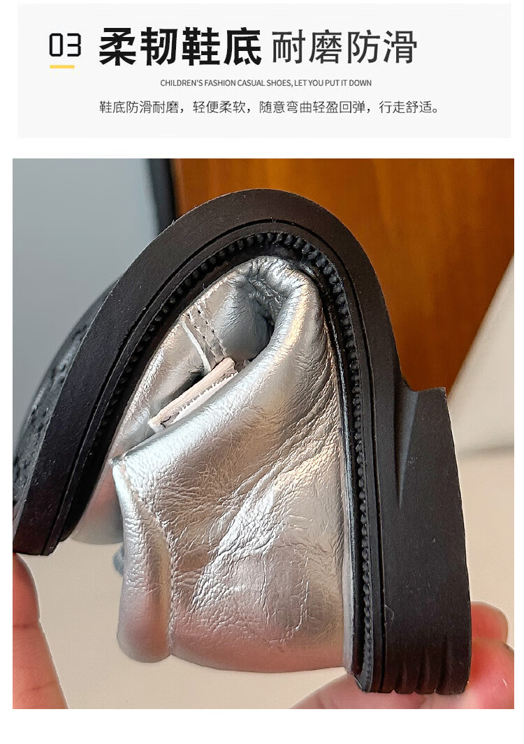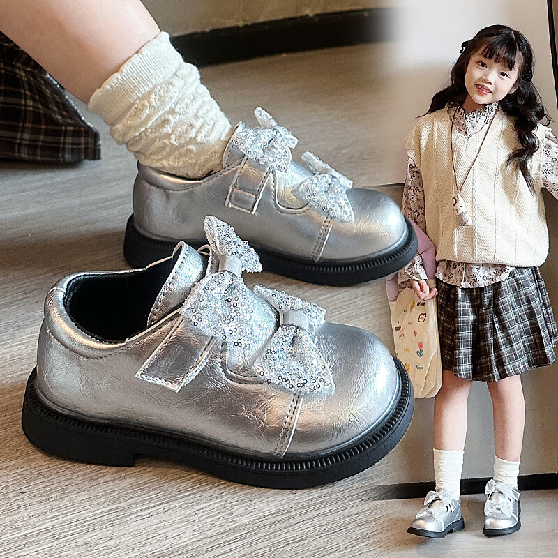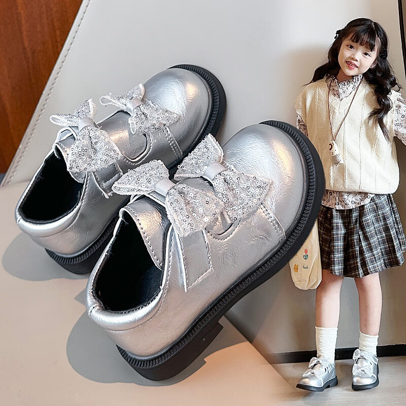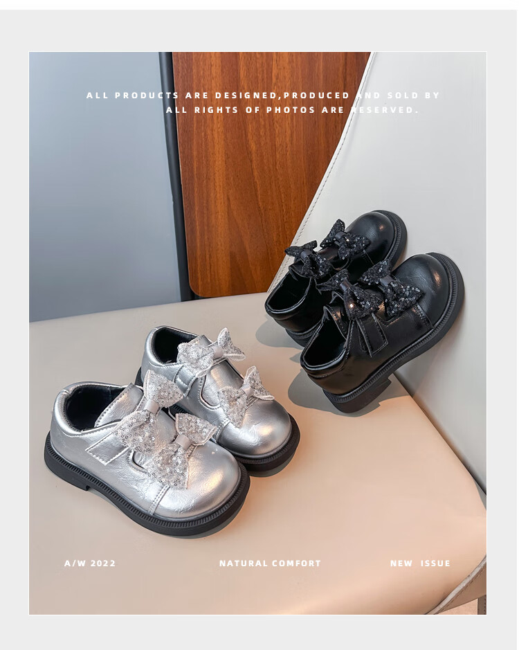 2025 new autumn girls' leather shoes with Velcro, fashionable and lightweight girls' Korean princess shoes, campus student dance shoes, black 36 (inner length about 22cm)