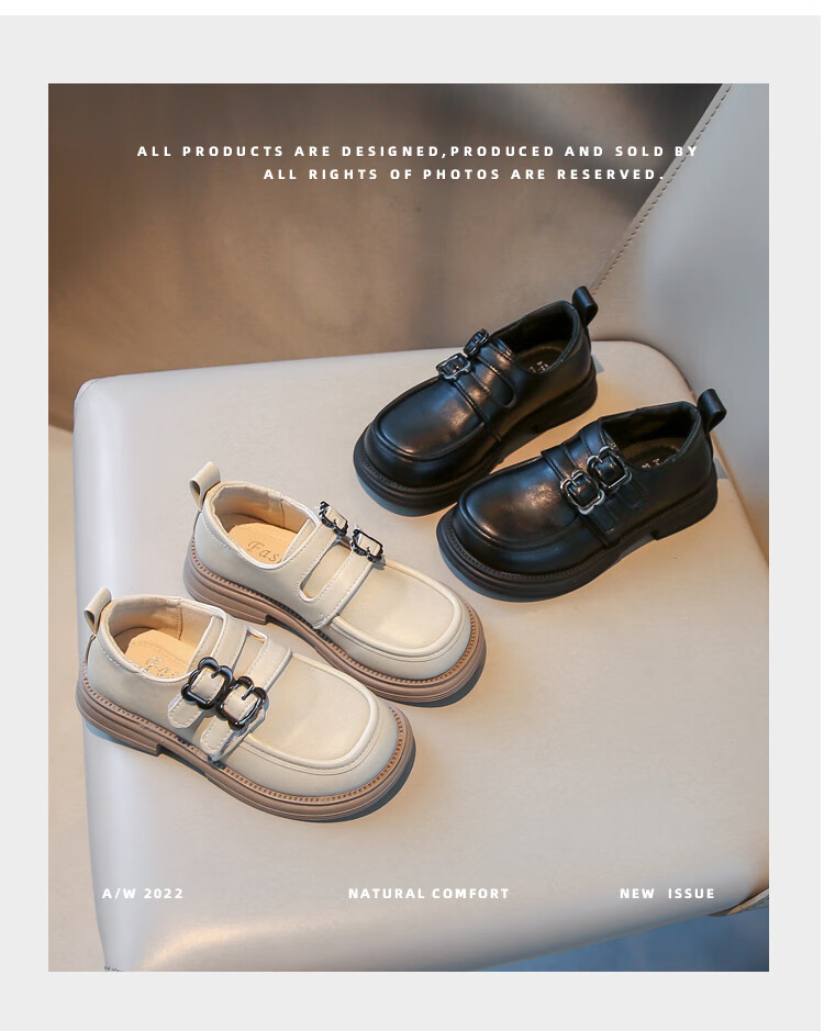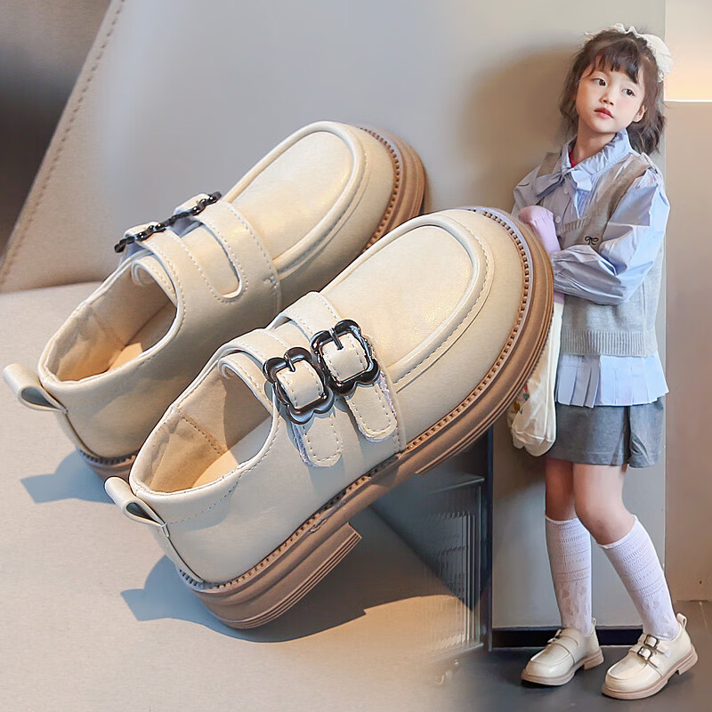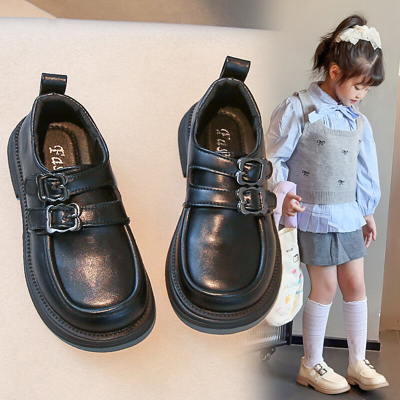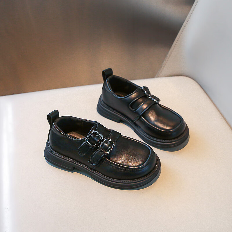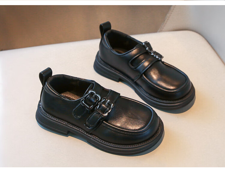 Children's Leather Shoes 2025 Spring and Autumn New Girls Black Soft Soled Casual Shoes Student Performance Dance Princess Single Shoes Black 36 (Inner Length Approximately 21.8cm)