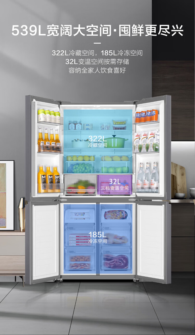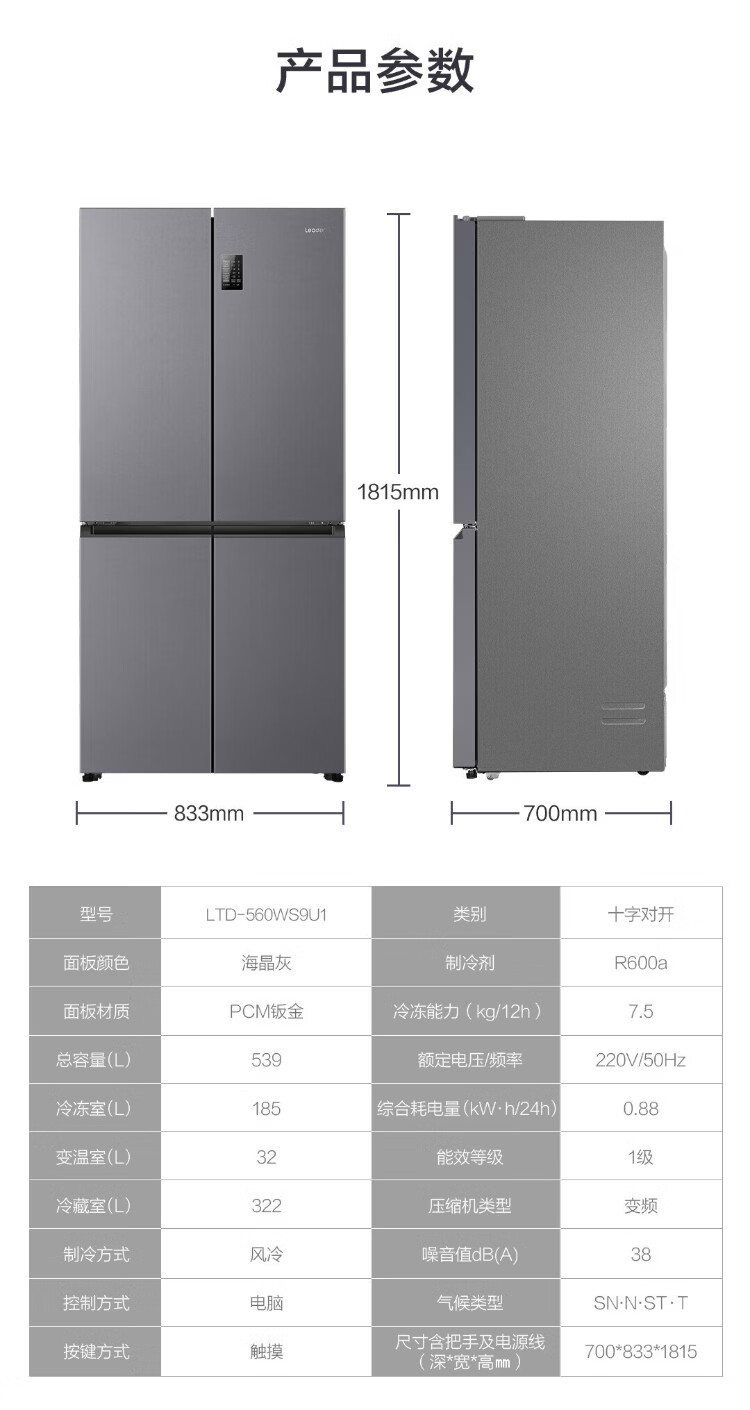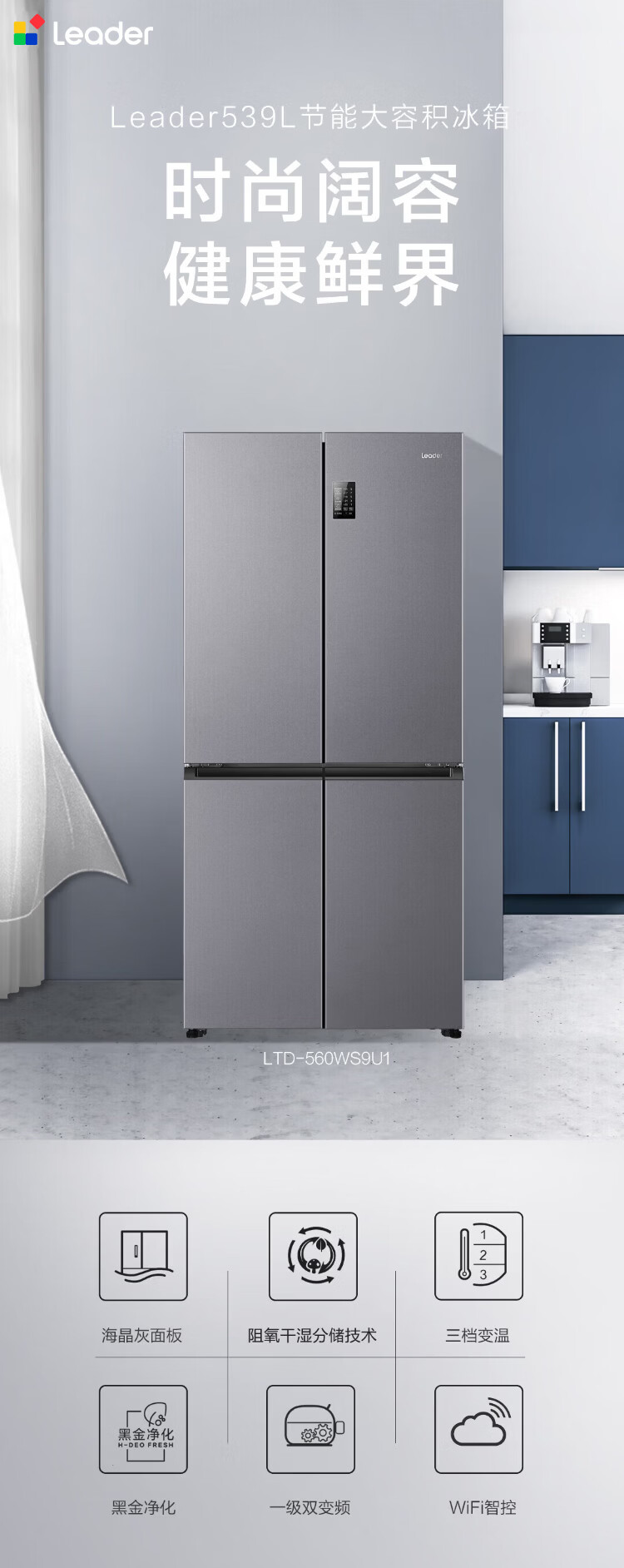 Haier Refrigerator produces 539 liters four-door cross-door 560 built-in refrigerator air-cooled and frost-free first-class dual-frequency dry and wet storage refrigerator Leader Black Gold Purification + Oxygen Blocking Dry and Wet Storage + Three-speed Variable Temperature