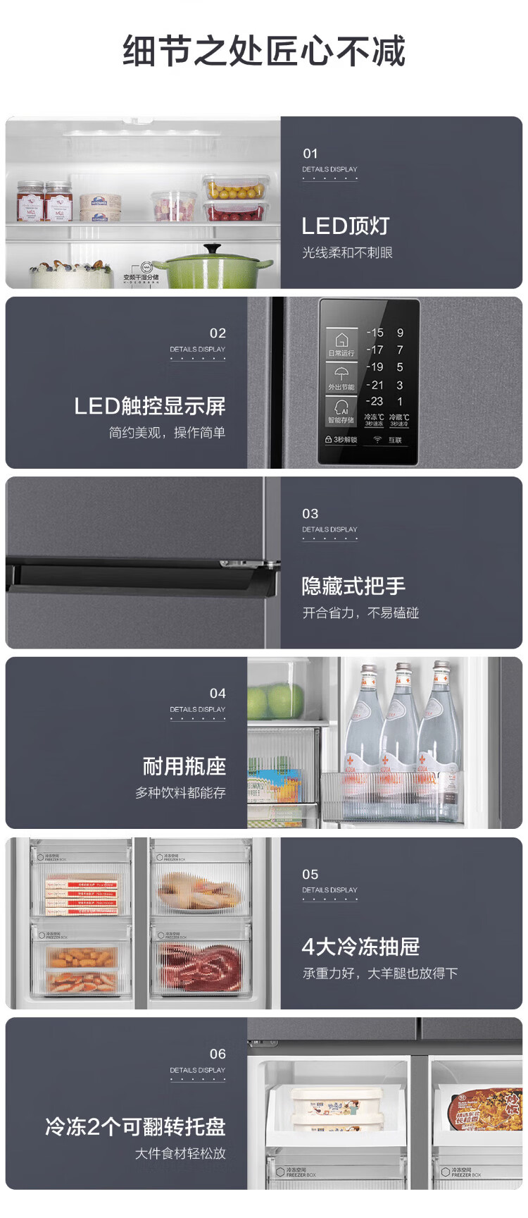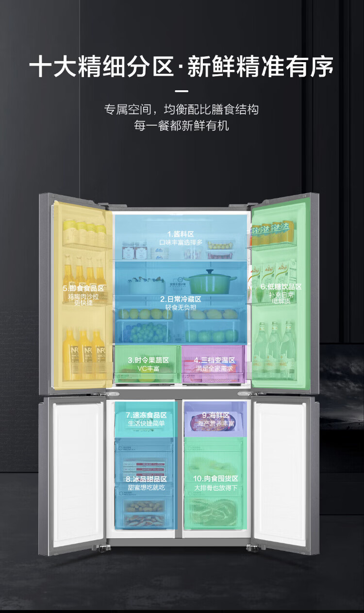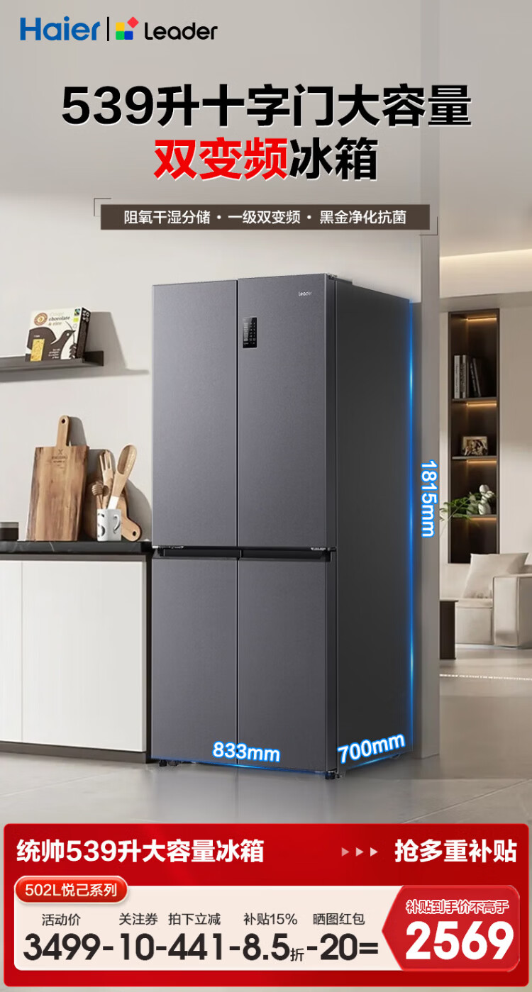 Haier Refrigerator produces 539 liters four-door cross-door 560 built-in refrigerator air-cooled and frost-free first-class dual-frequency dry and wet storage refrigerator Leader Black Gold Purification + Oxygen Blocking Dry and Wet Storage + Three-speed Variable Temperature