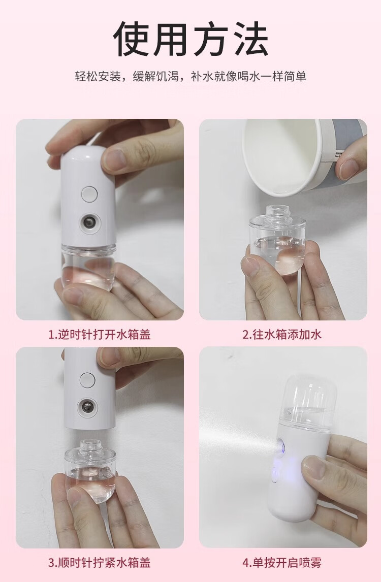 Xiaomi Guoba Hydrating Device Nano Sprayer Oxygen Injection Portable Facial Moisturizing Small Facial Steamer Cold Spray Handheld Humidifying Beauty Device Classic White 30ml Water Tank/Upgraded Nozzle + USB Charging Cable