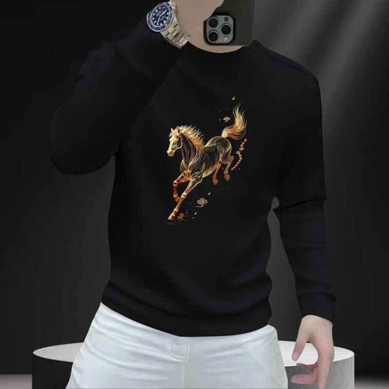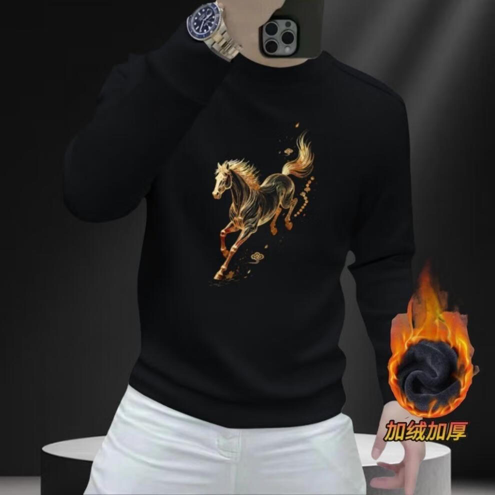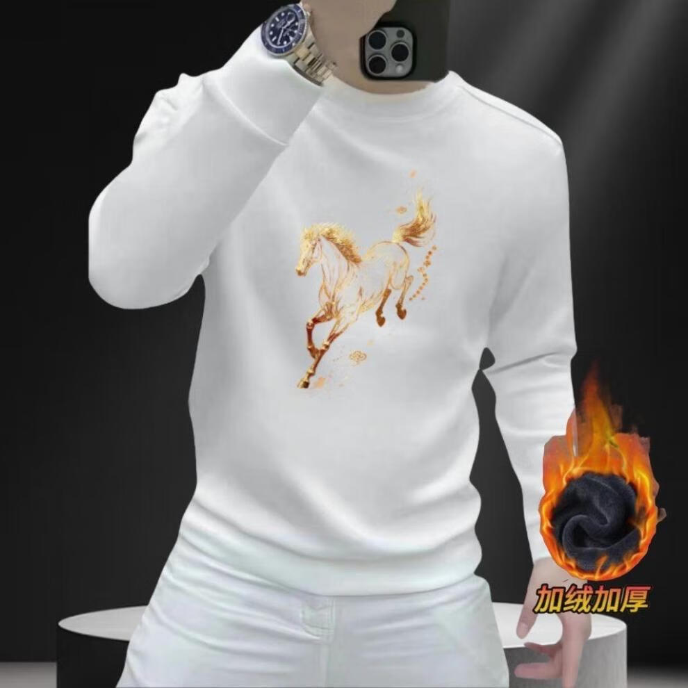 Clothes for the year of the horse and the zodiac year are about to succeed, trendy men's sweatshirts, red printed autumn and winter T-shirts 2, burgundy plus velvet, 4XL
