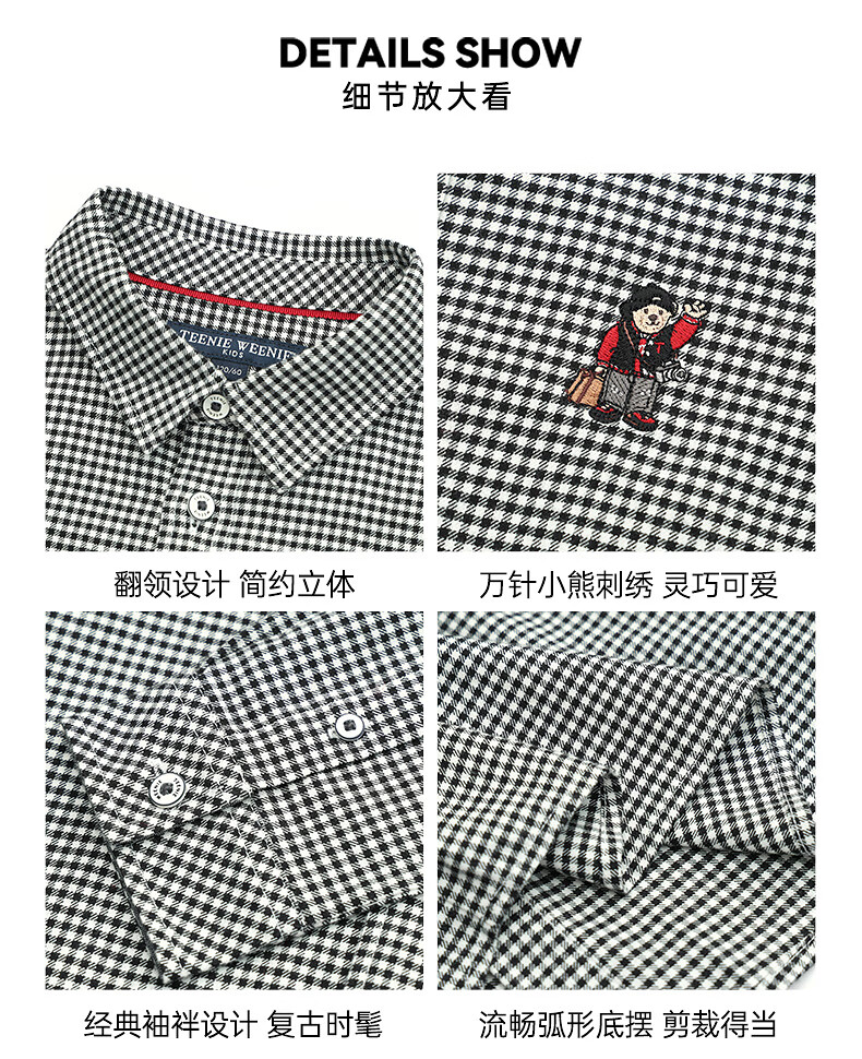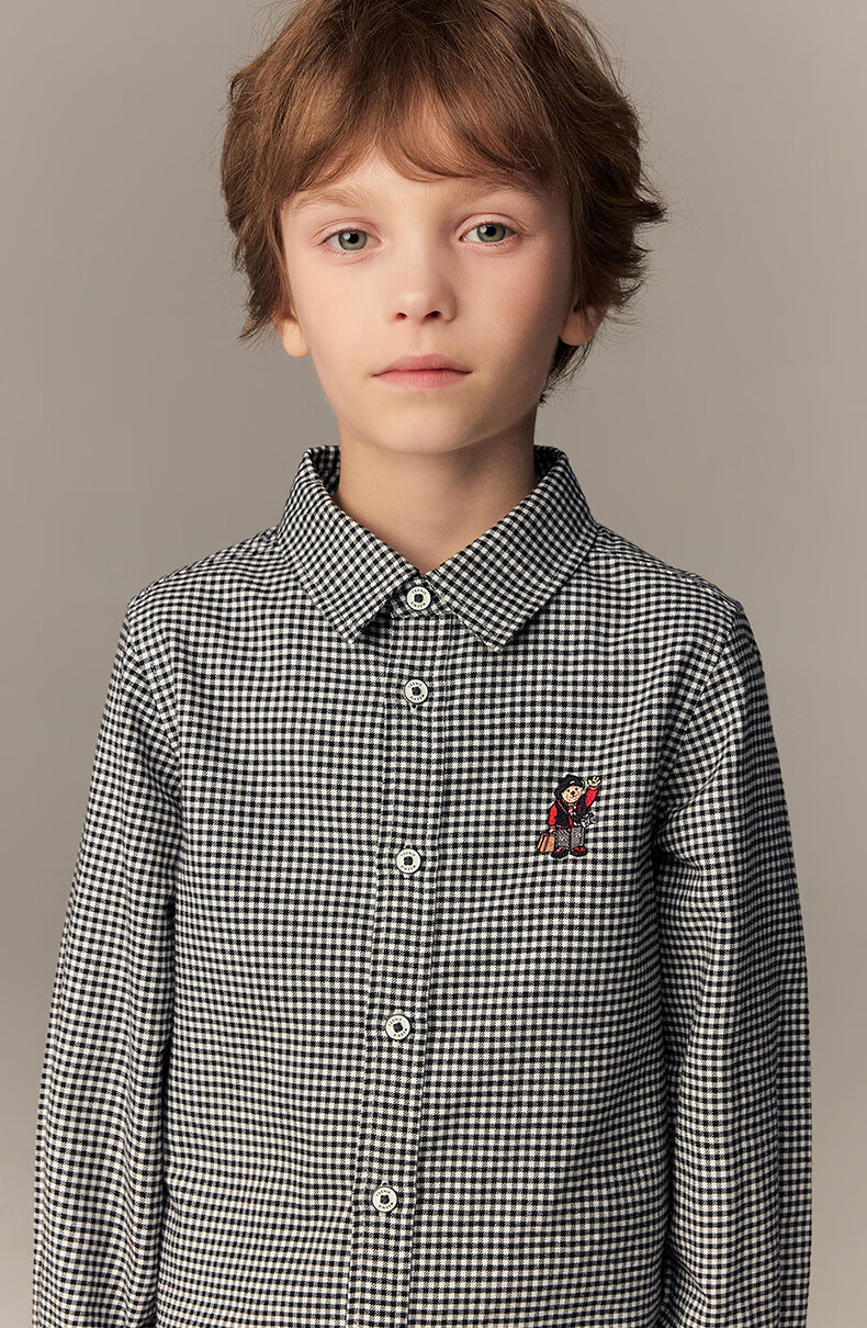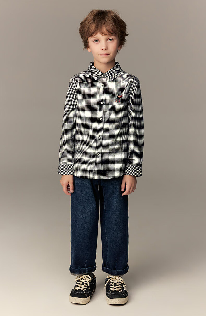Teenie Weenie Kids 26th New Year Boys Classic Plaid Long Sleeve Lapel Shirt Black 140 cm