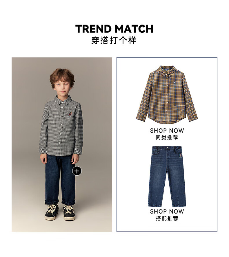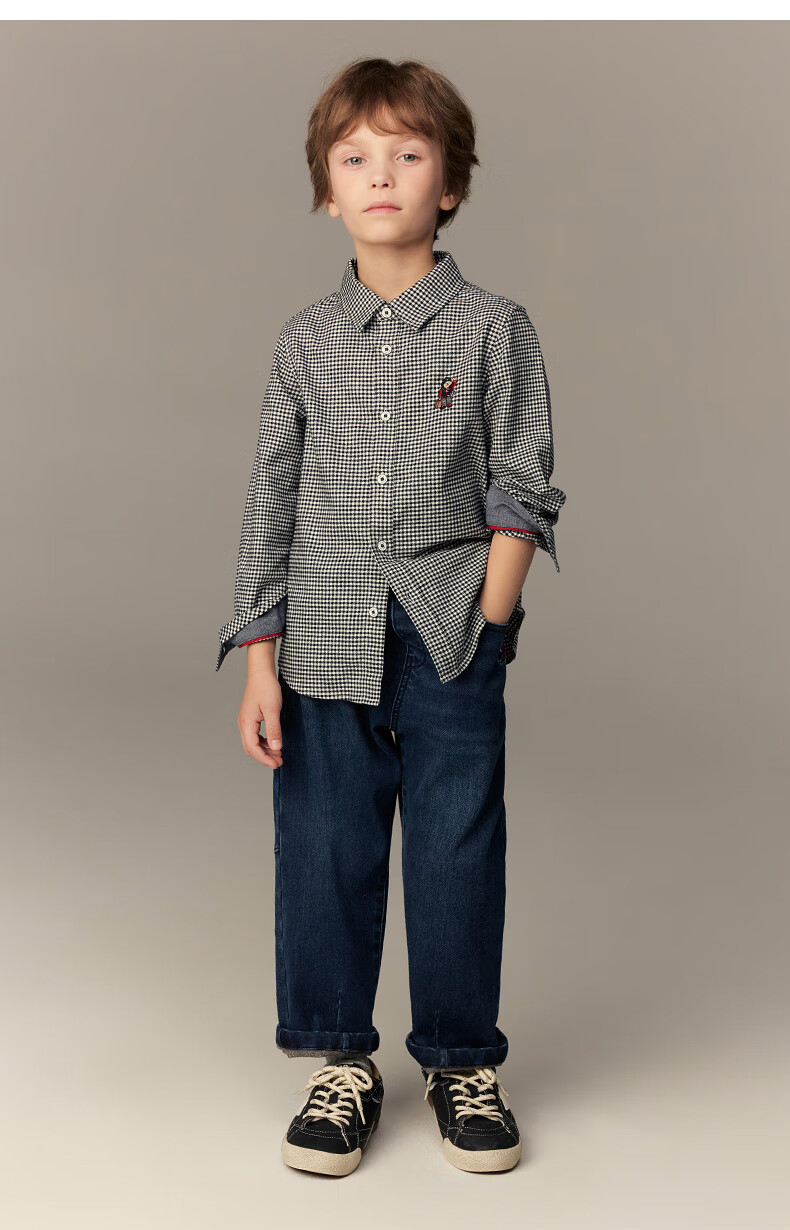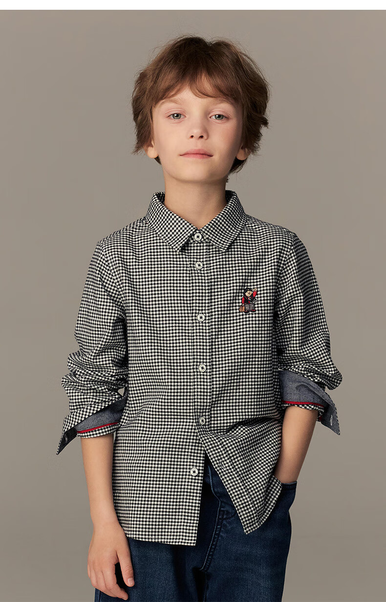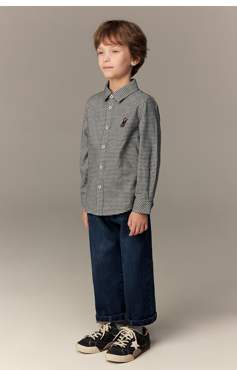 Teenie Weenie Kids 26th New Year Boys Classic Plaid Long Sleeve Lapel Shirt Black 140 cm