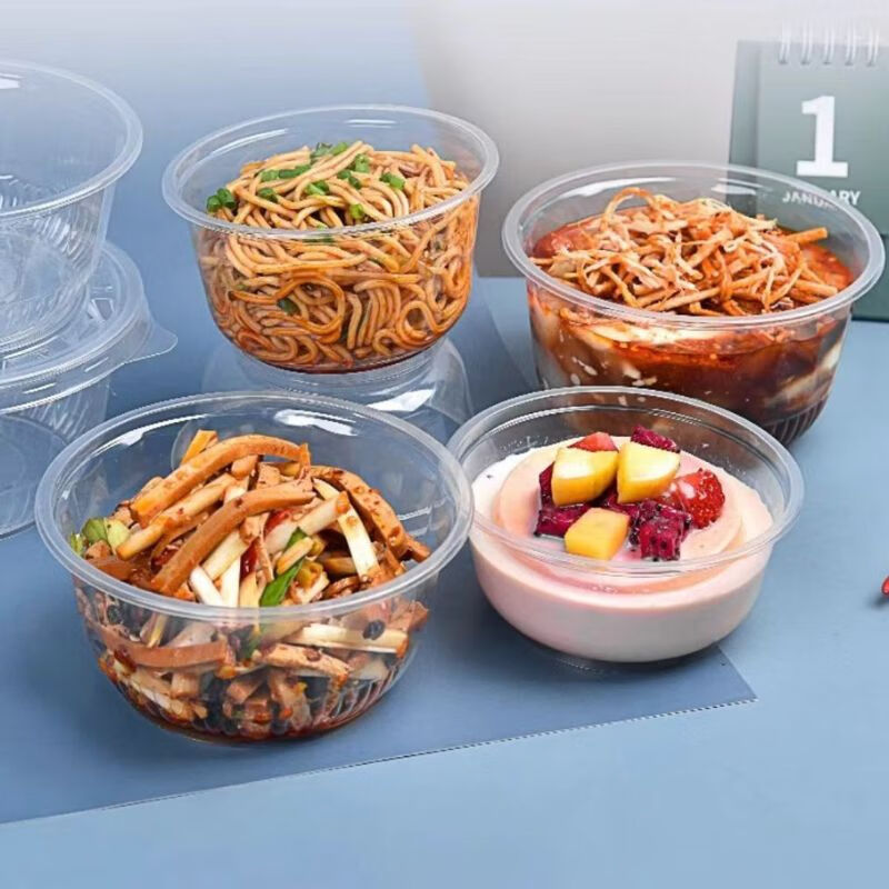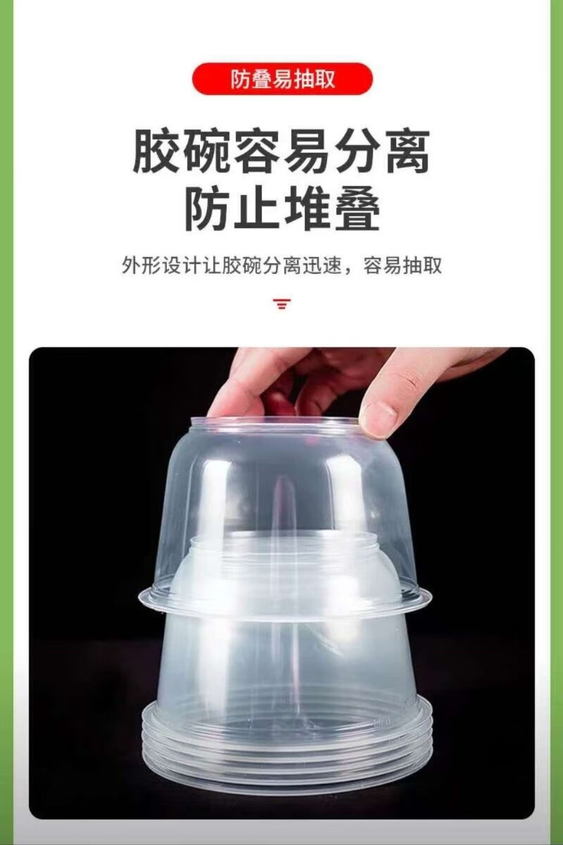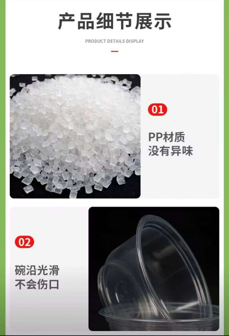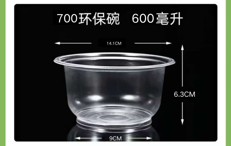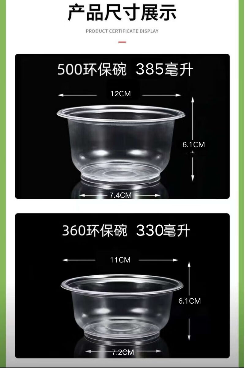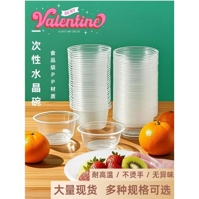 Disposable bowl tableware set thickened crystal bowl household soup bowl rice bowl ice powder bowl packed fast food bowl 500 environmentally friendly bowl (380ml) 50 pieces