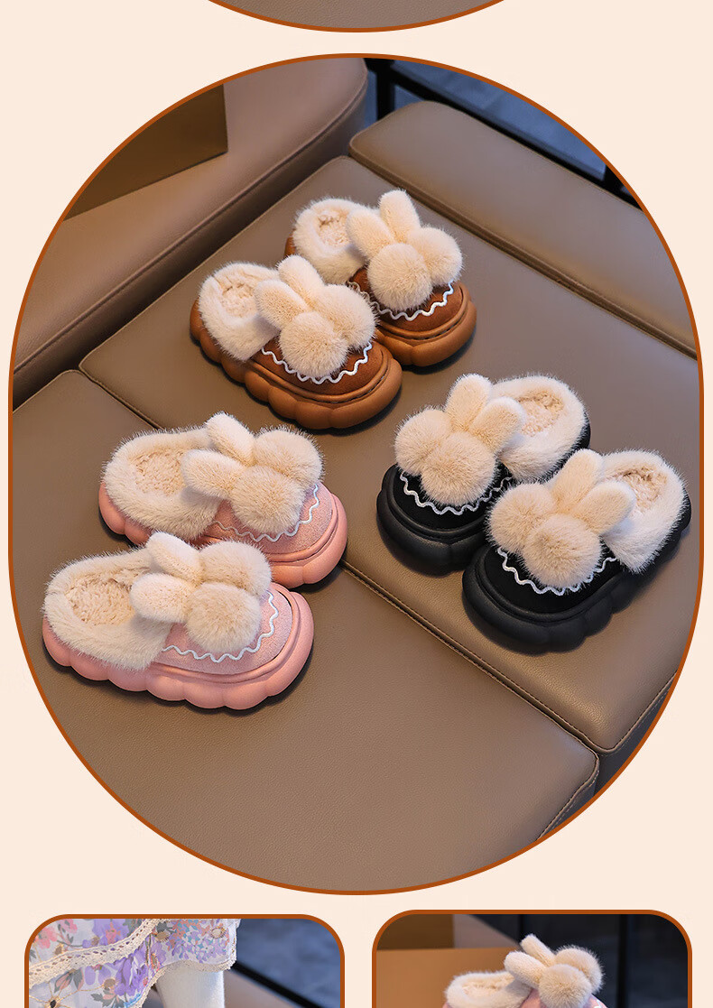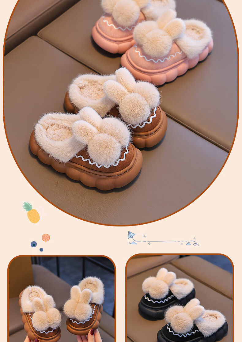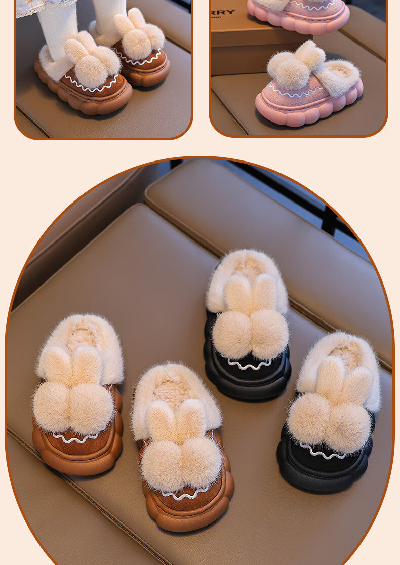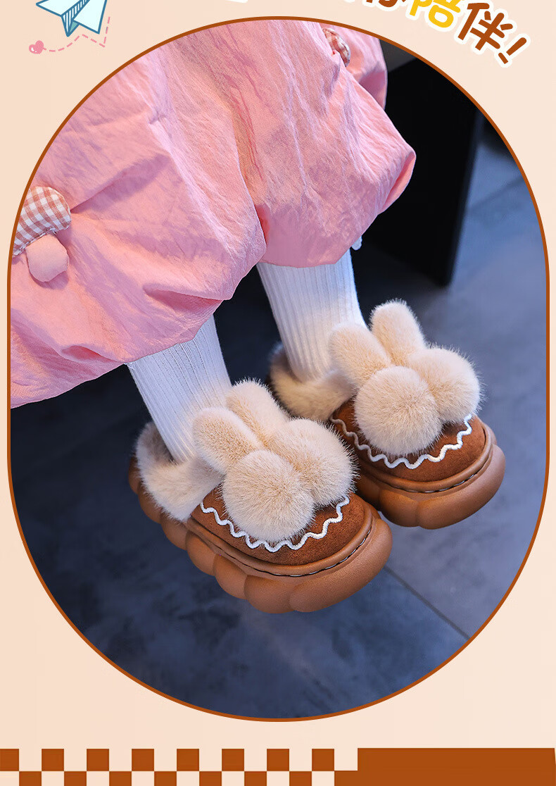 Tiaodegao Children's Cotton Wool Slippers Winter Cute Rabbit Slippers Girls Home Indoor Shoes Warm Cartoon Cute Floor Shoes Pink Size 26/27 Inner Length 16CM Suitable for Foot Length 15CM