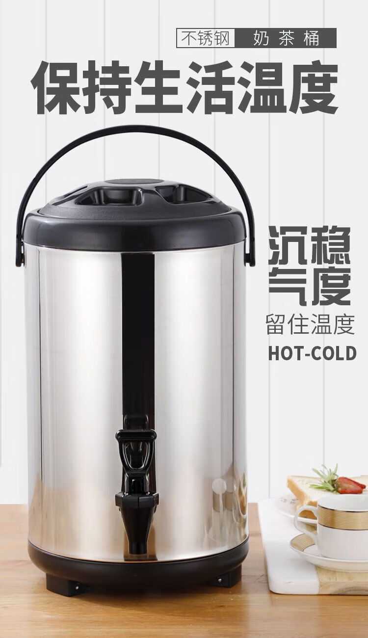 Yeyu 304 stainless steel milk tea bucket thermal bucket commercial soy milk bucket hot and cold double-layer tea bucket milk tea shop commercial stall 6L milk tea bucket (with faucet) home ()