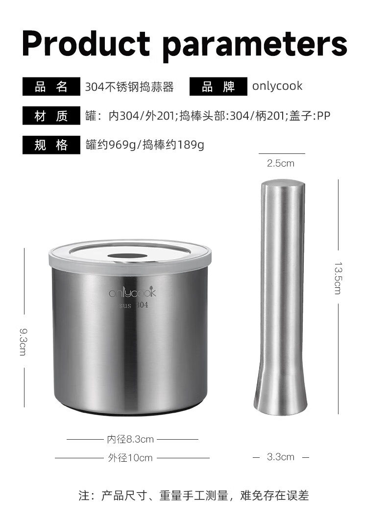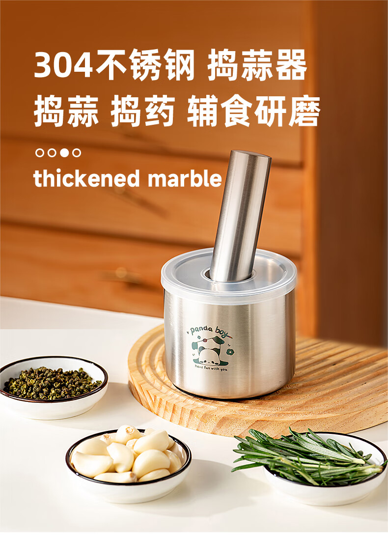 Jingtao 304 stainless steel garlic press household manual garlic press and garlic paste artifact Chinese medicine grinding and mashing jar LOGO style 304 masher