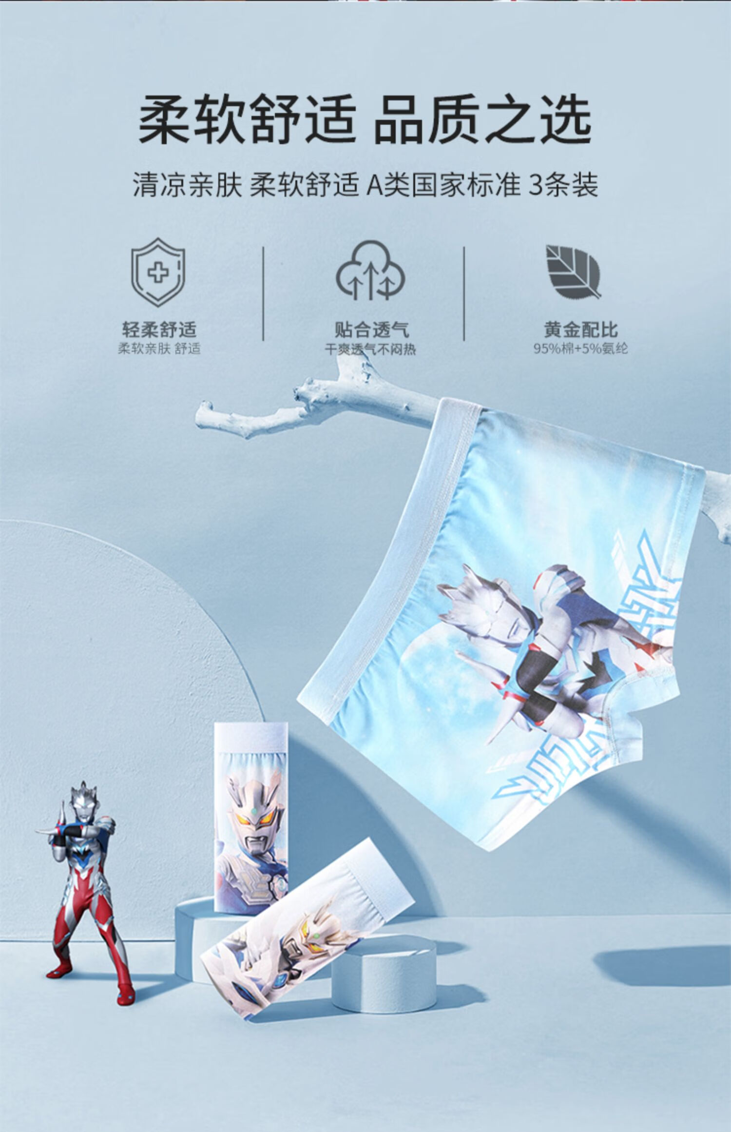 ULTRAMAN children's underwear boys pure cotton baby boy boxer briefs boy boxer shorts type A 3-pack type B type A material, comfortable and breathable 140