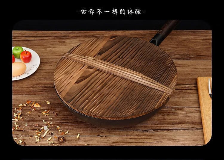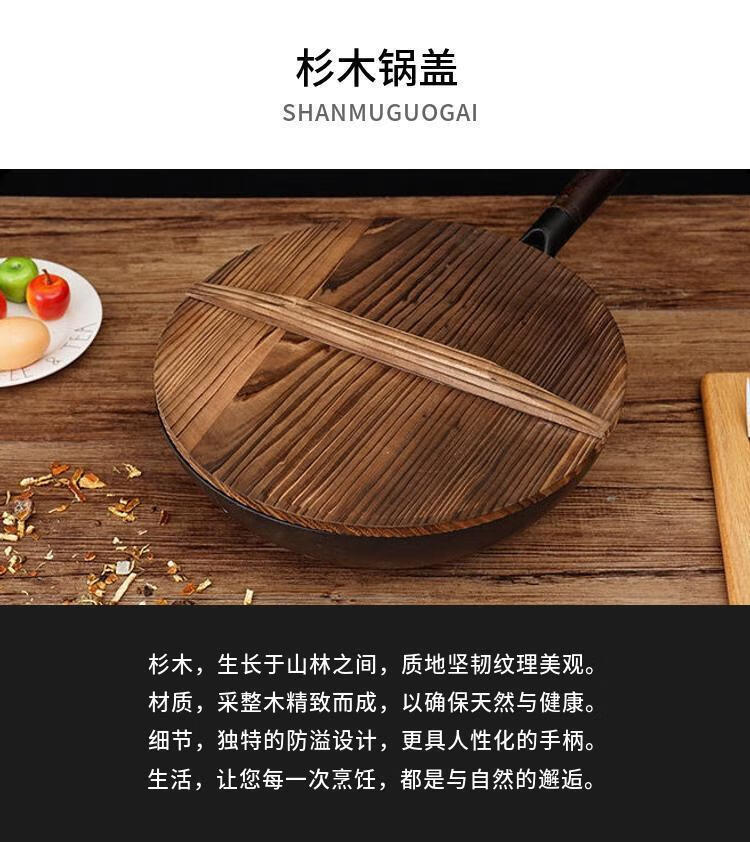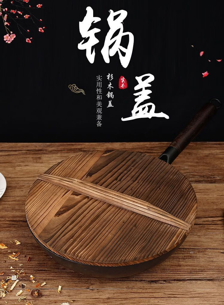 Shuweisi old-fashioned wooden lid pot universal round household sauce jar fir pot lid wok lid iron pot lid Zhangqiu pot lid large pot thickened fir overall seamless design diameter 30 cm
