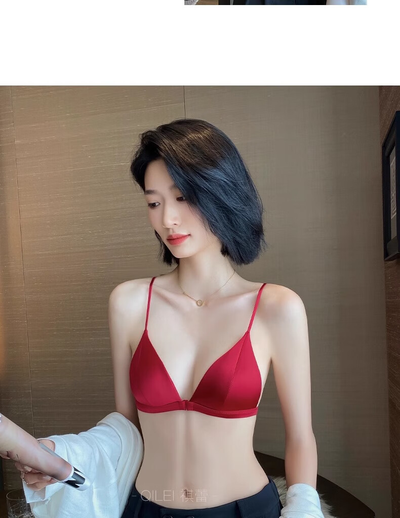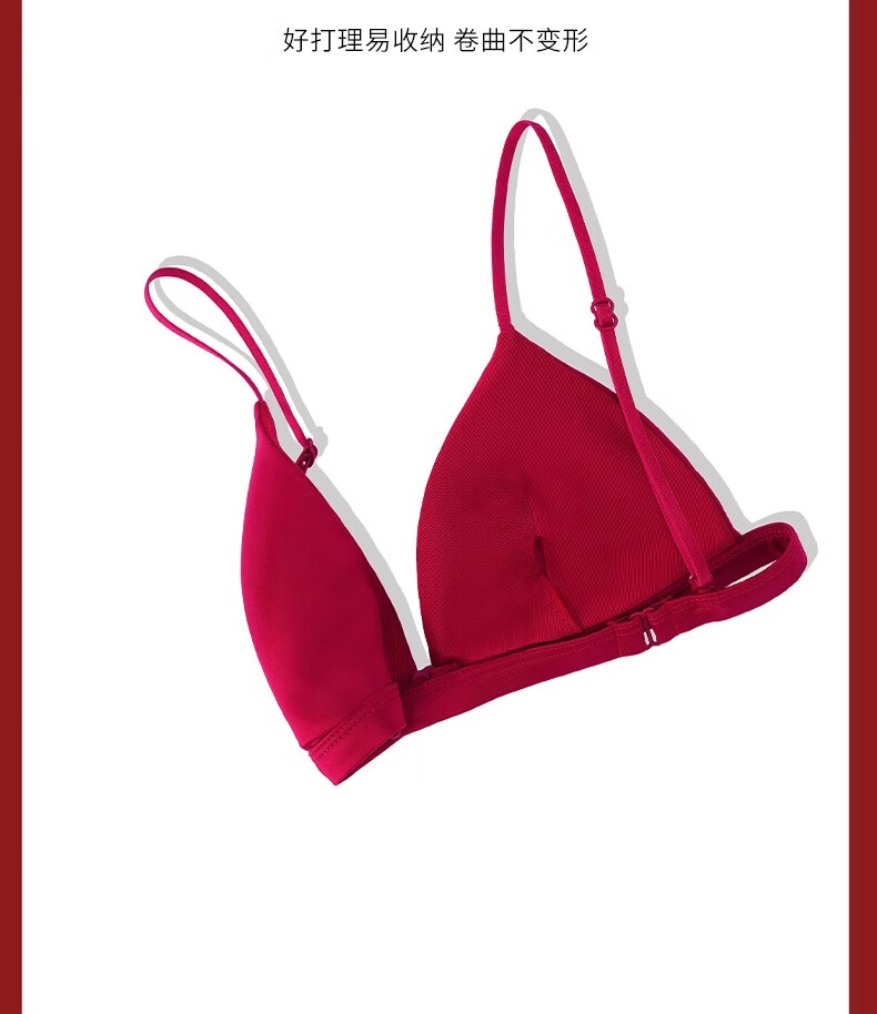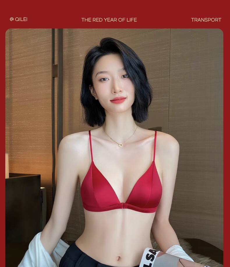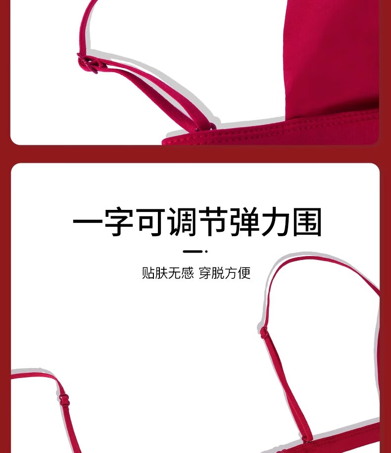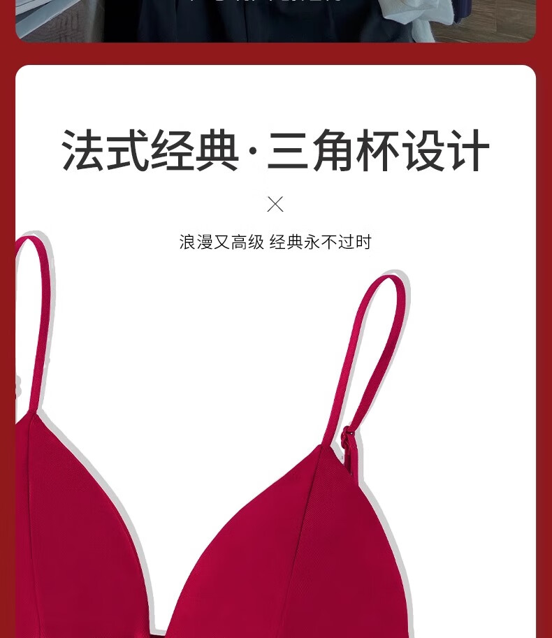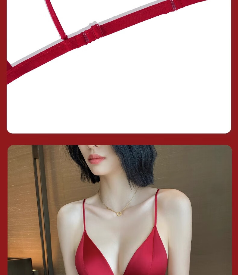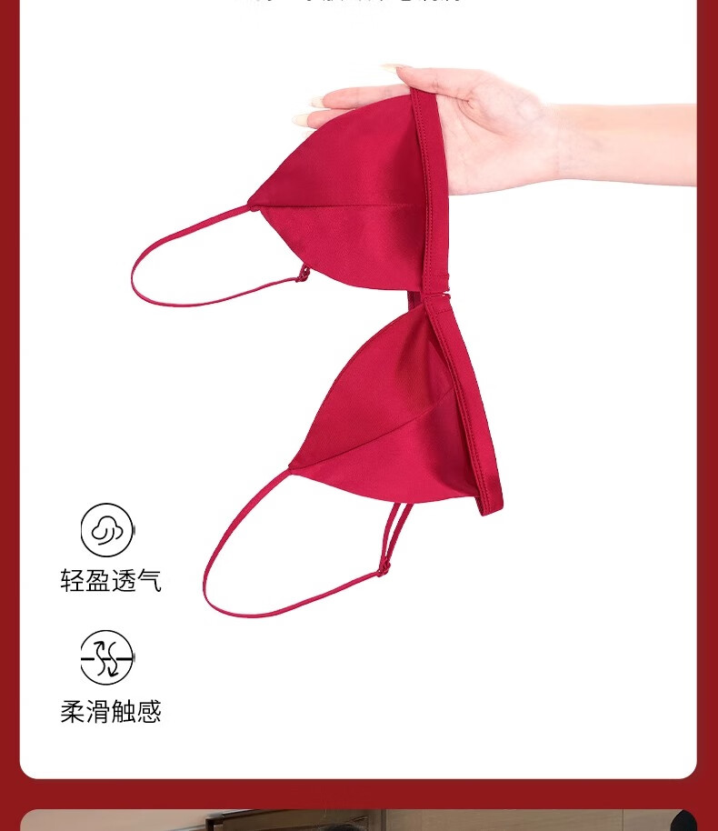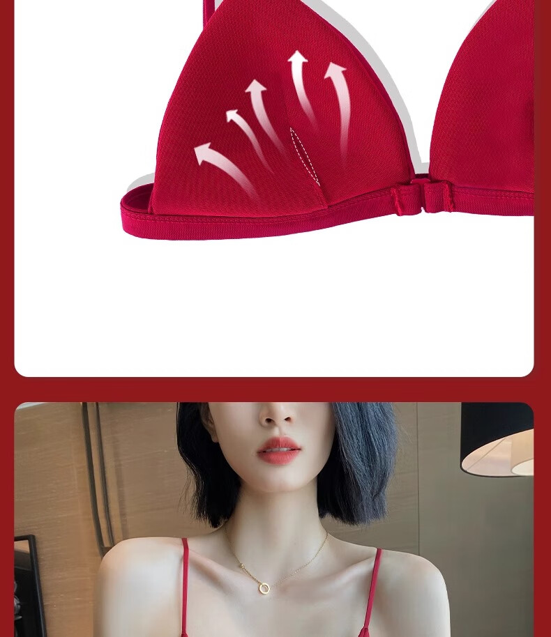 Modal Red Underwear Women's Zodiac Year Suit Small Breast Gathered Spaghetti Straps Triangle Cup Sexy Beautiful Back Wedding Bridal Bra Black Suit S Size 32/70AB