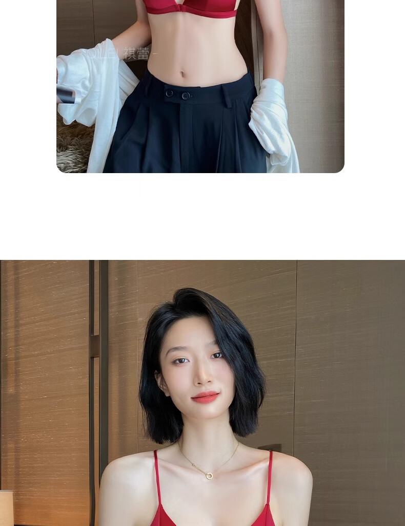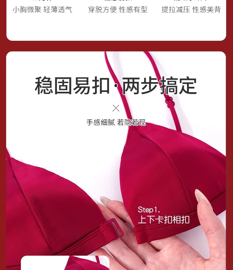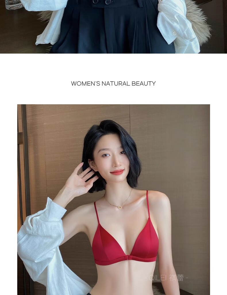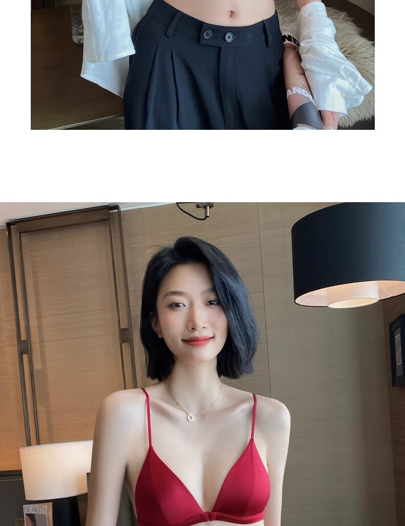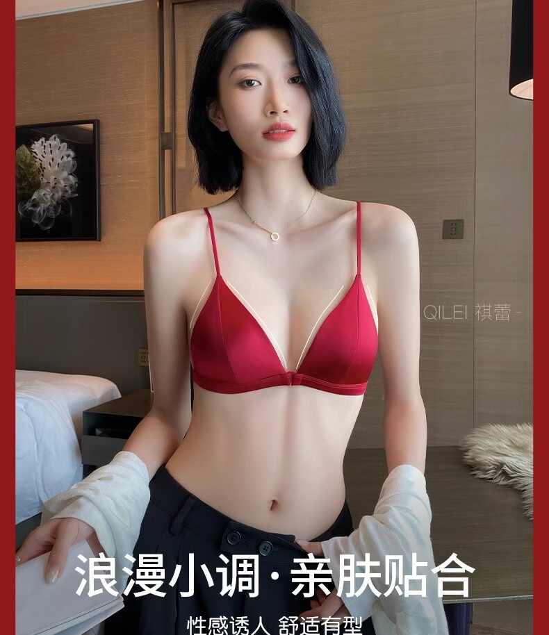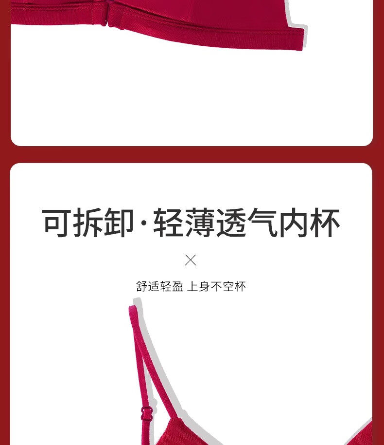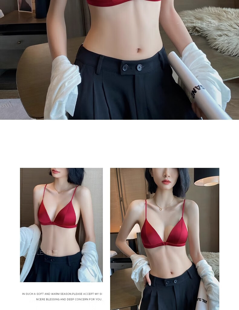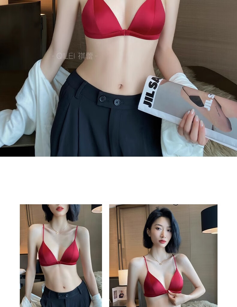 Modal Red Underwear Women's Zodiac Year Suit Small Breast Gathered Spaghetti Straps Triangle Cup Sexy Beautiful Back Wedding Bridal Bra Black Suit S Size 32/70AB