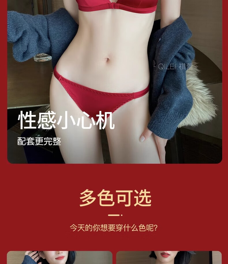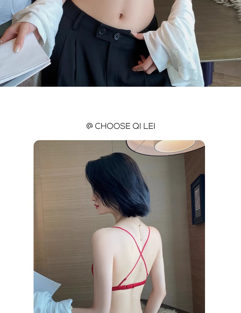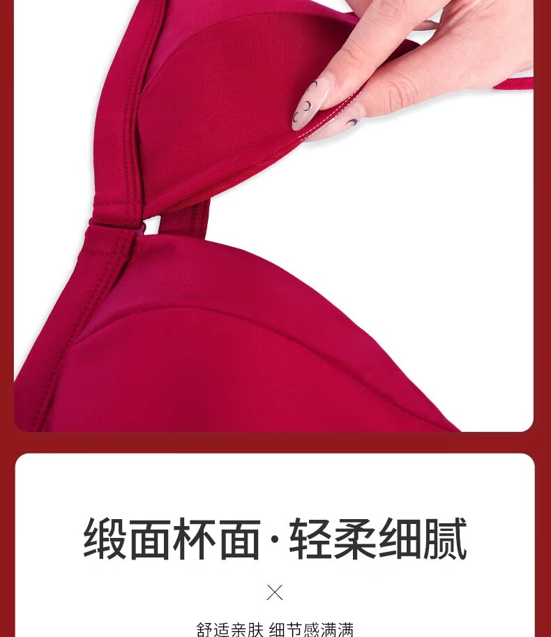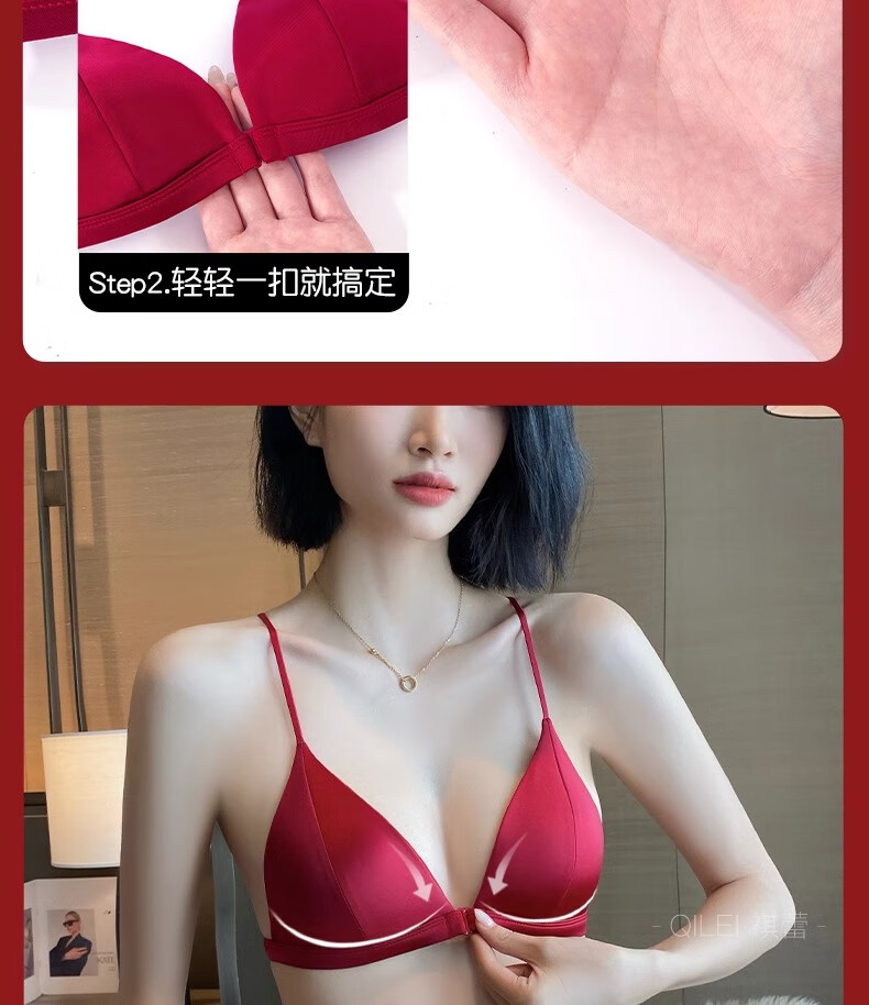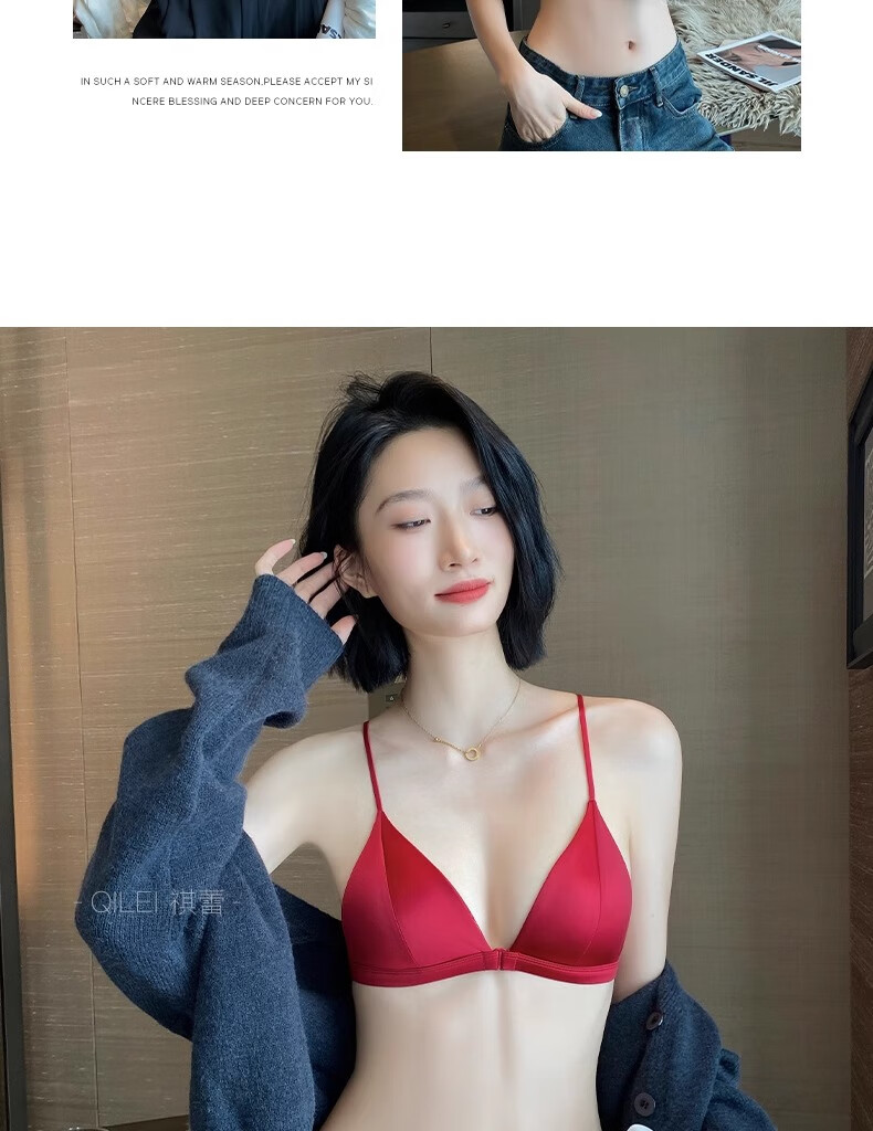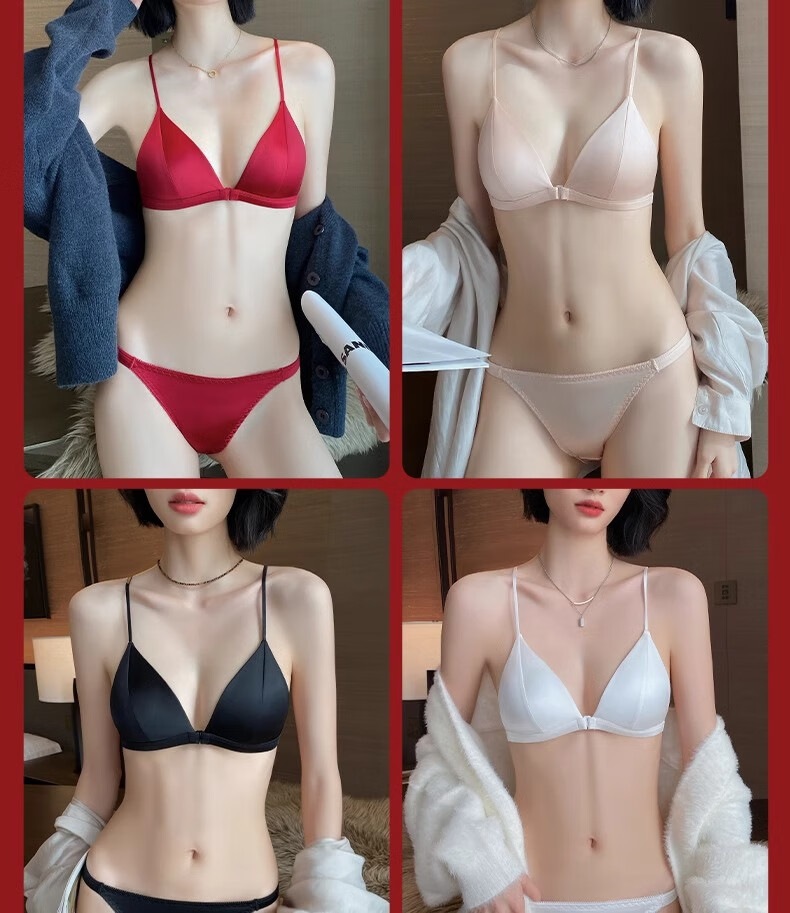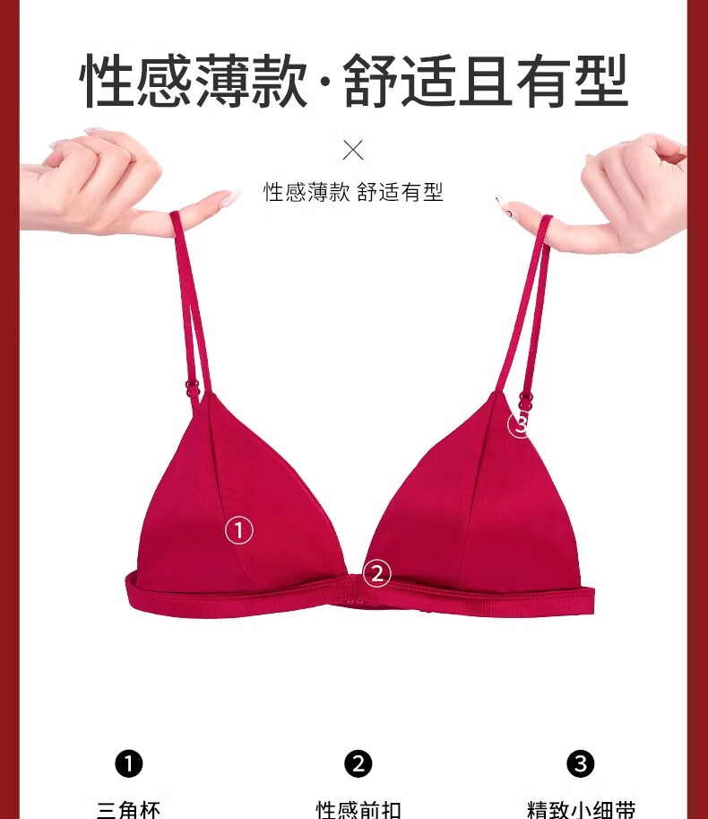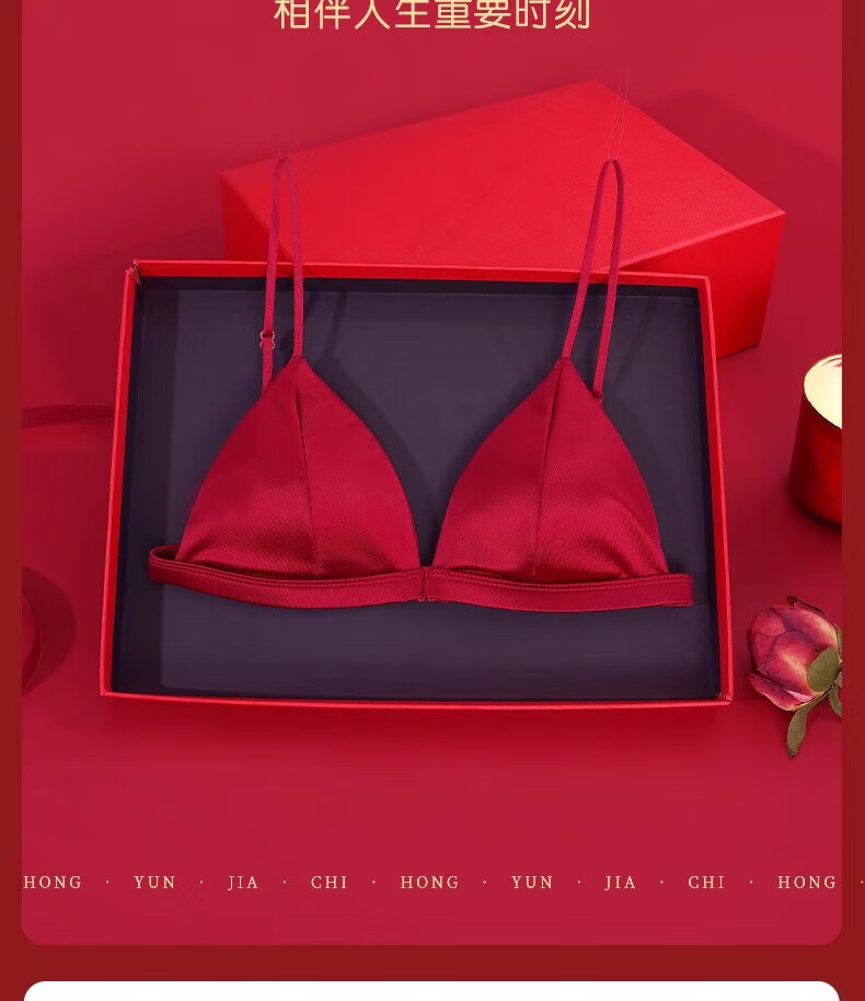 Modal Red Underwear Women's Zodiac Year Suit Small Breast Gathered Spaghetti Straps Triangle Cup Sexy Beautiful Back Wedding Bridal Bra Black Suit S Size 32/70AB