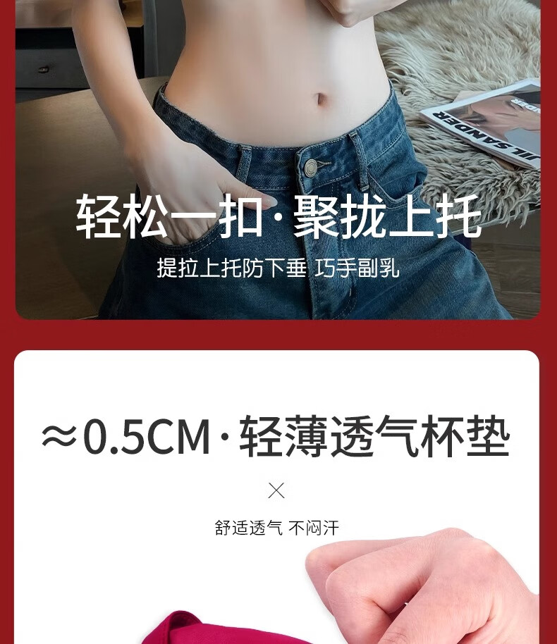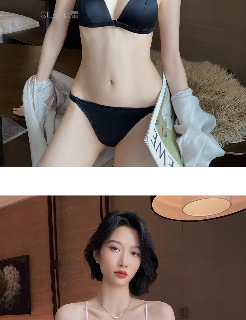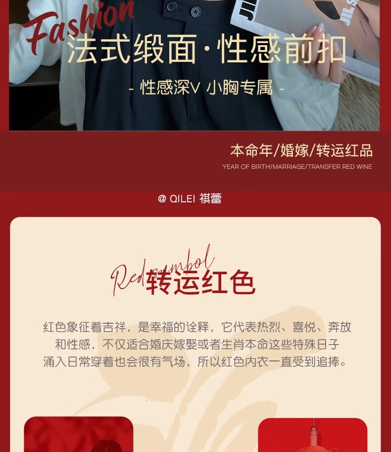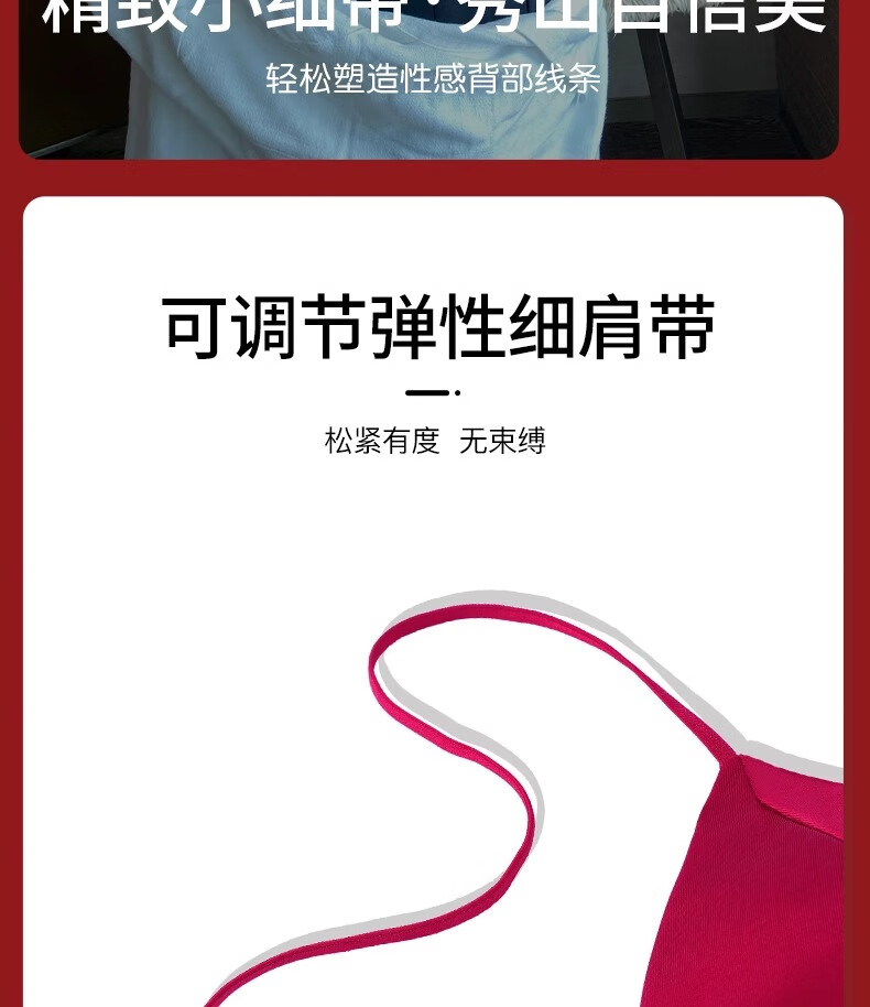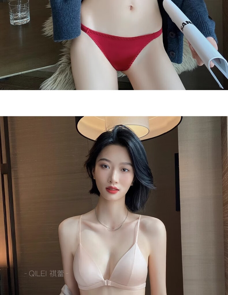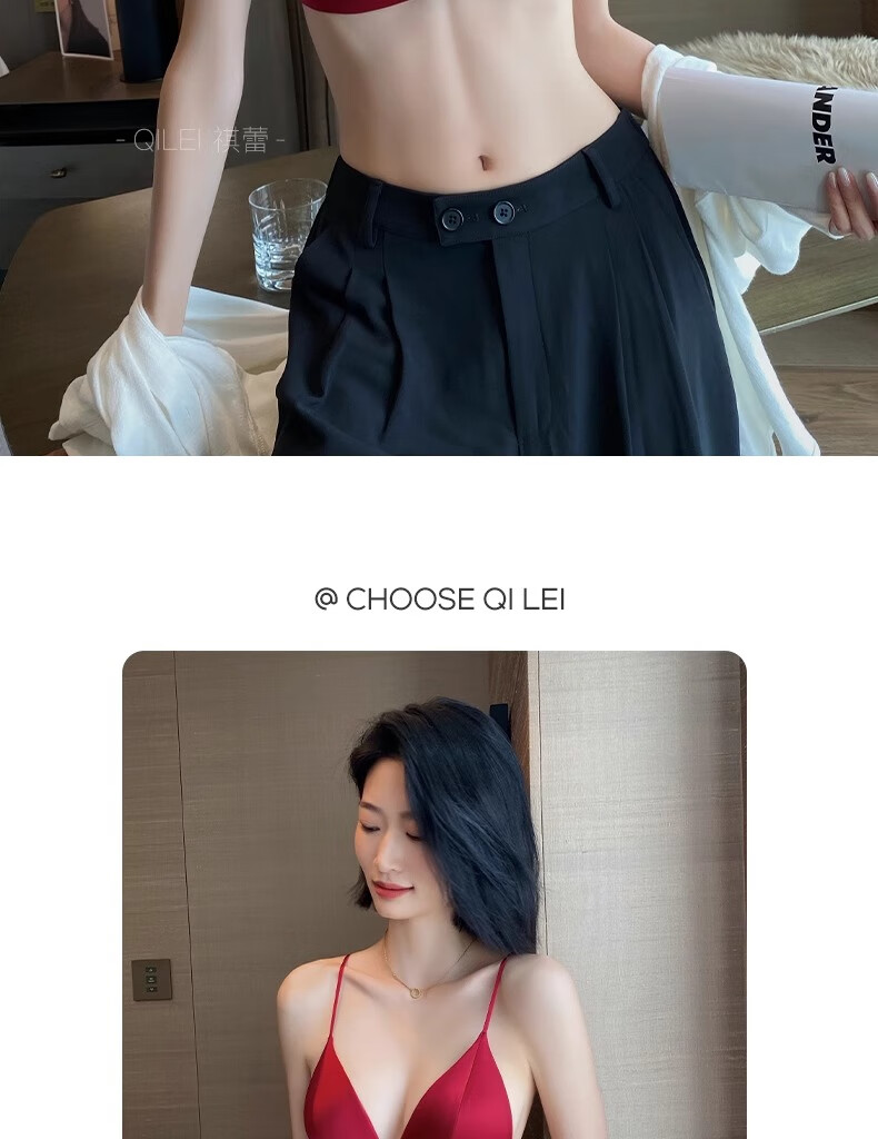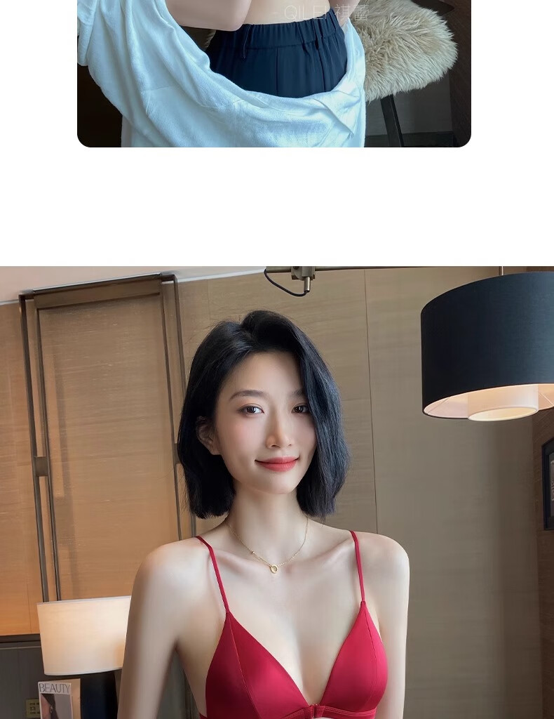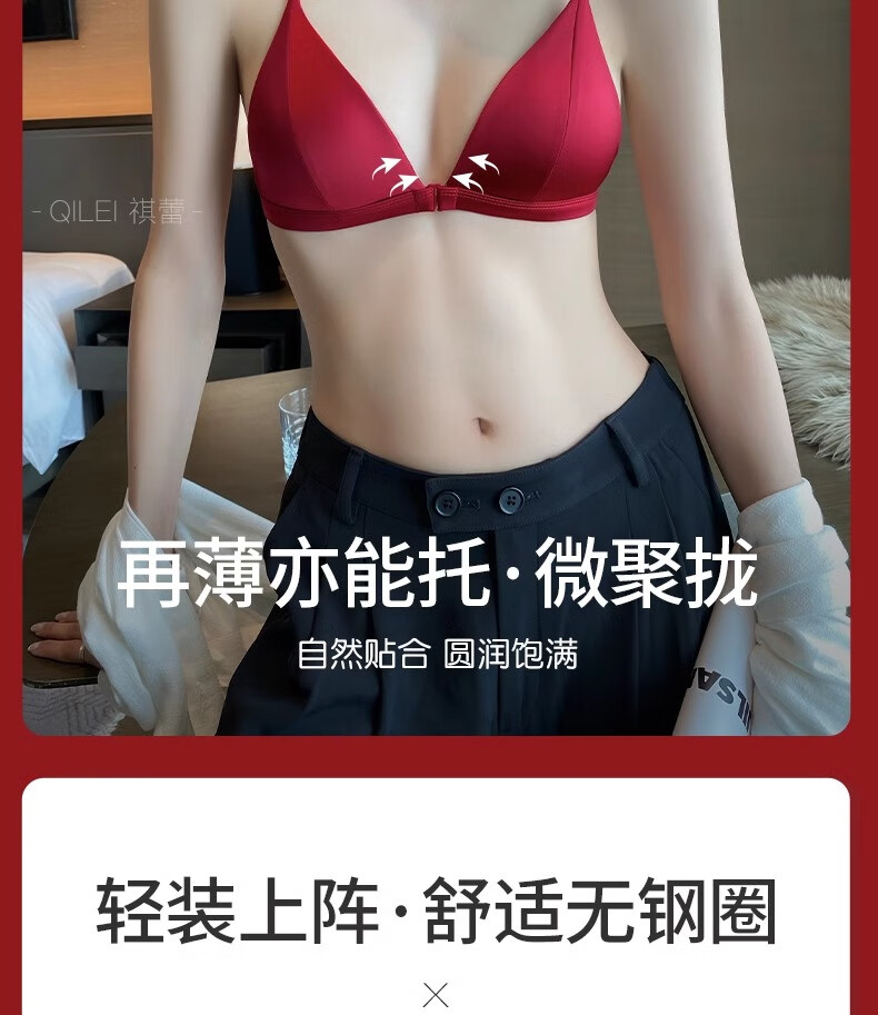 Modal Red Underwear Women's Zodiac Year Suit Small Breast Gathered Spaghetti Straps Triangle Cup Sexy Beautiful Back Wedding Bridal Bra Black Suit S Size 32/70AB