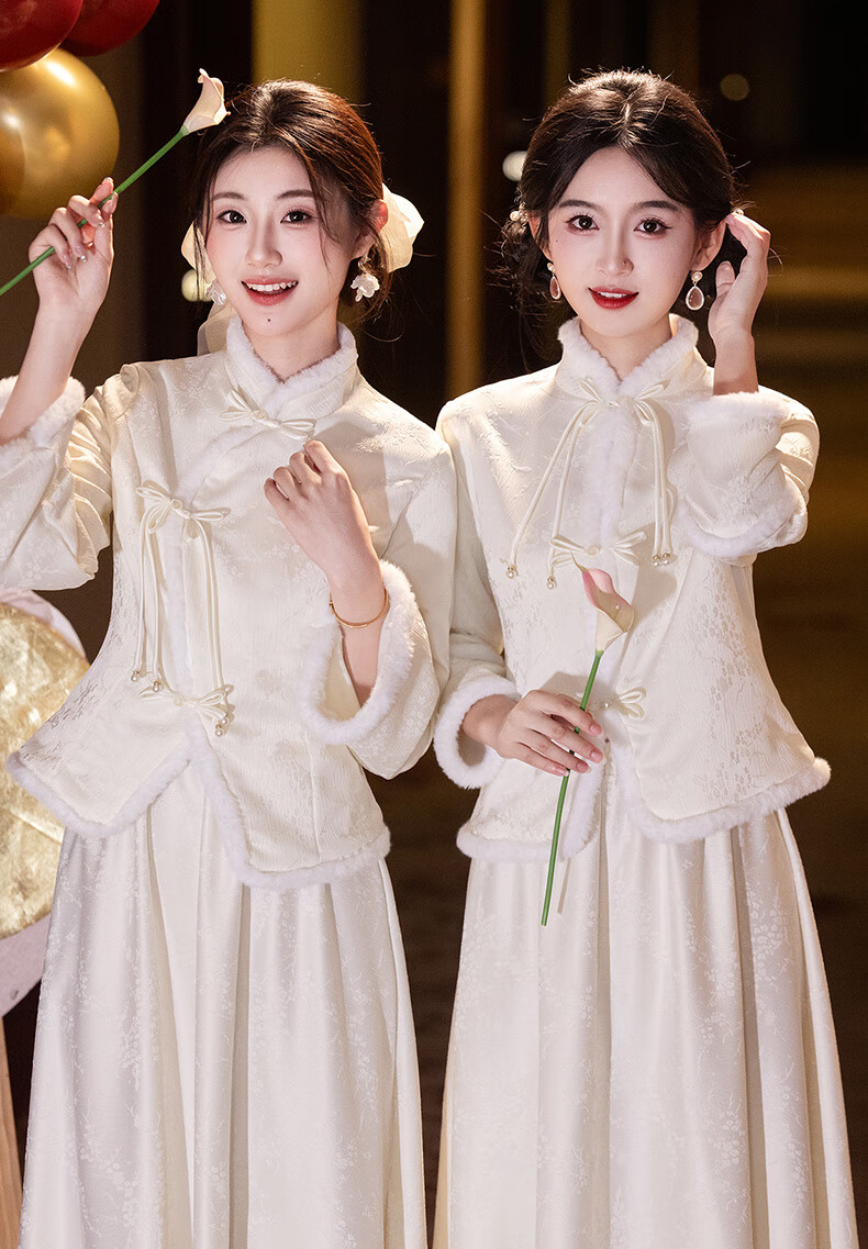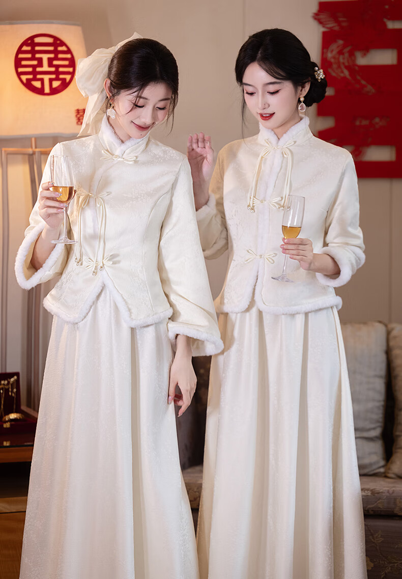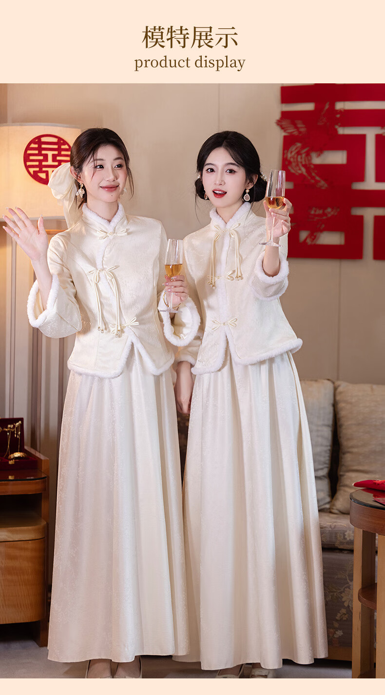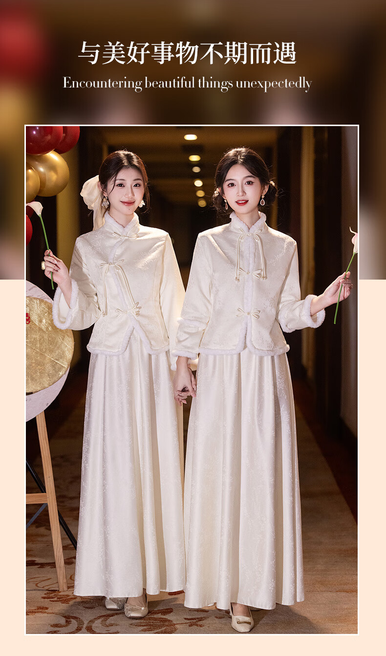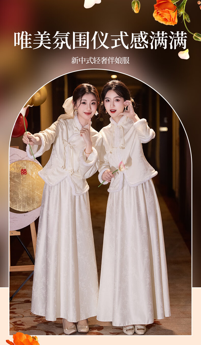 New Chinese-style bridesmaid dress for autumn and winter, new sister dress, bestie dress, wedding temperament, warm and slimming, can be worn in daily life, straight style S