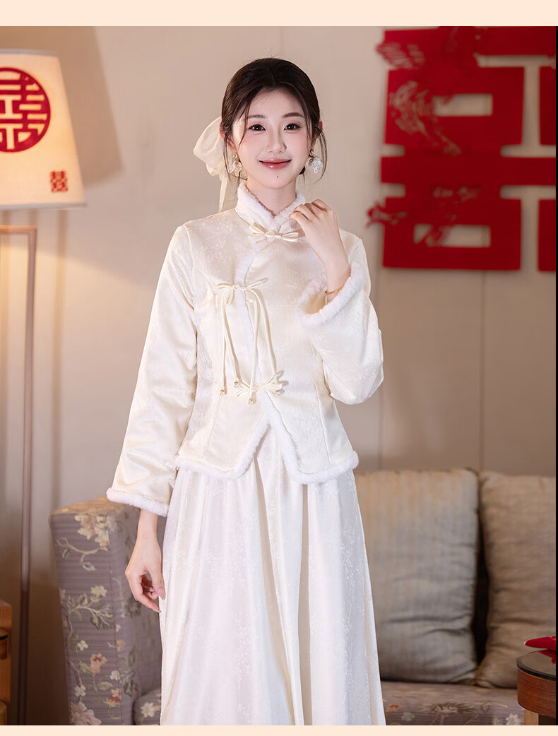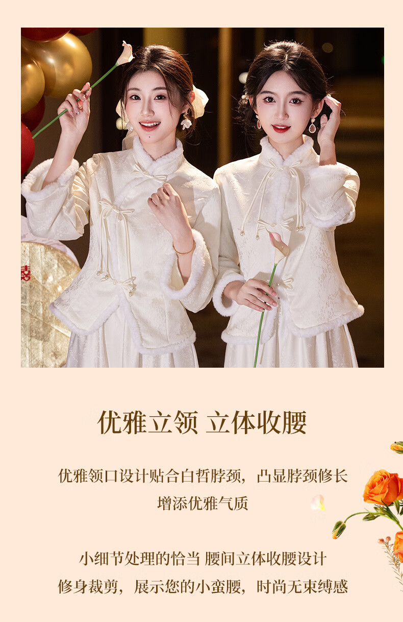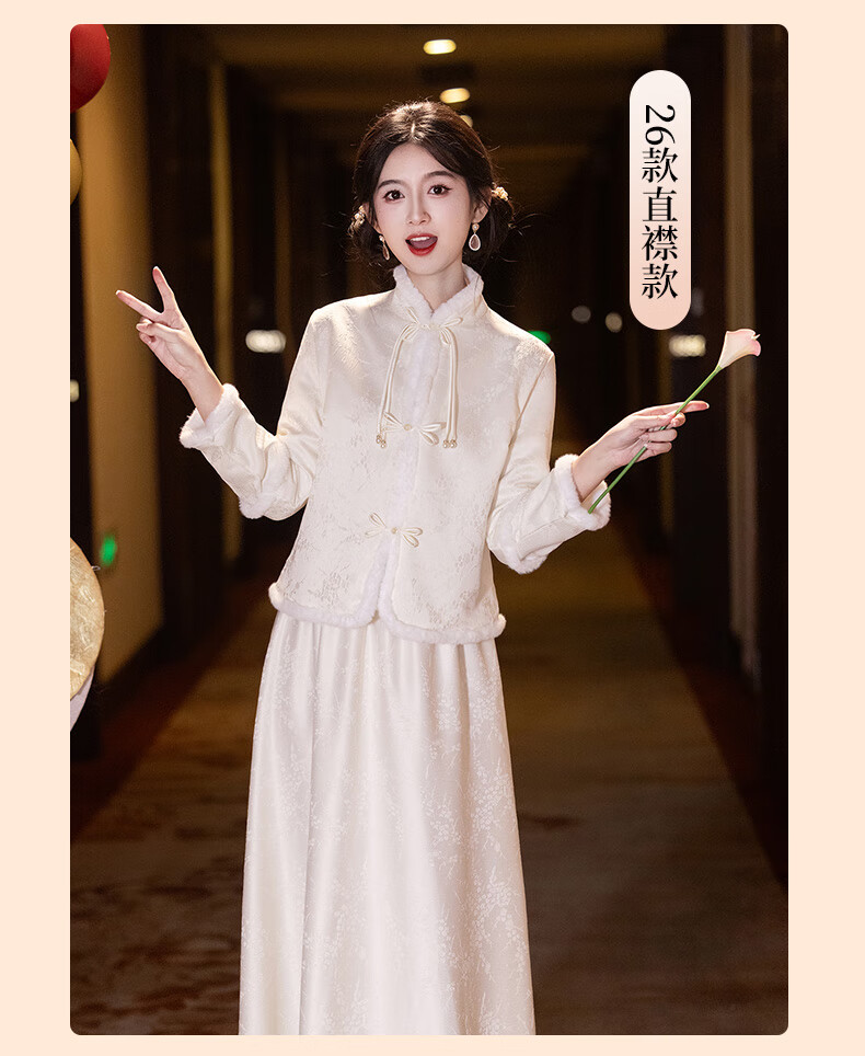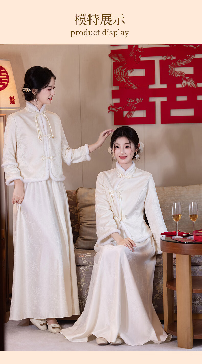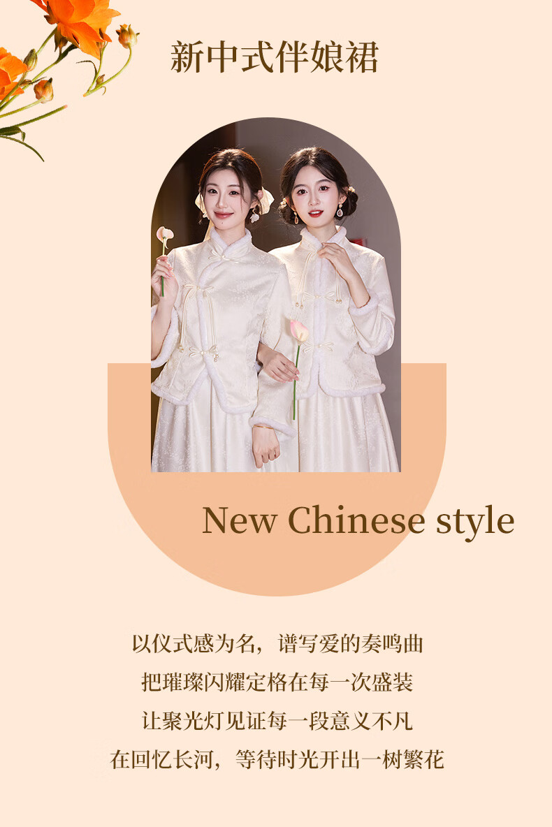 New Chinese-style bridesmaid dress for autumn and winter, new sister dress, bestie dress, wedding temperament, warm and slimming, can be worn in daily life, straight style S