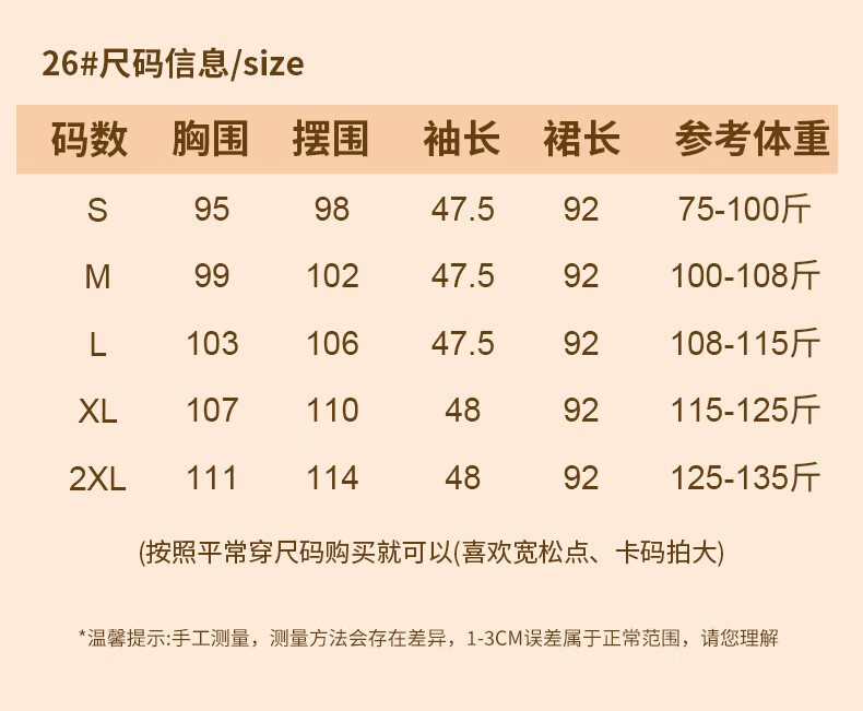 Size (cm) 42 44 46 48 50