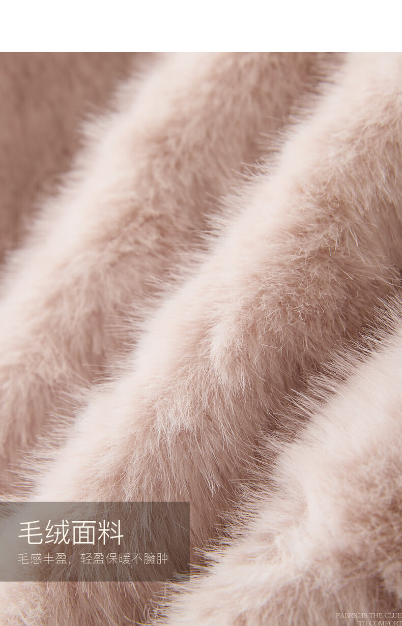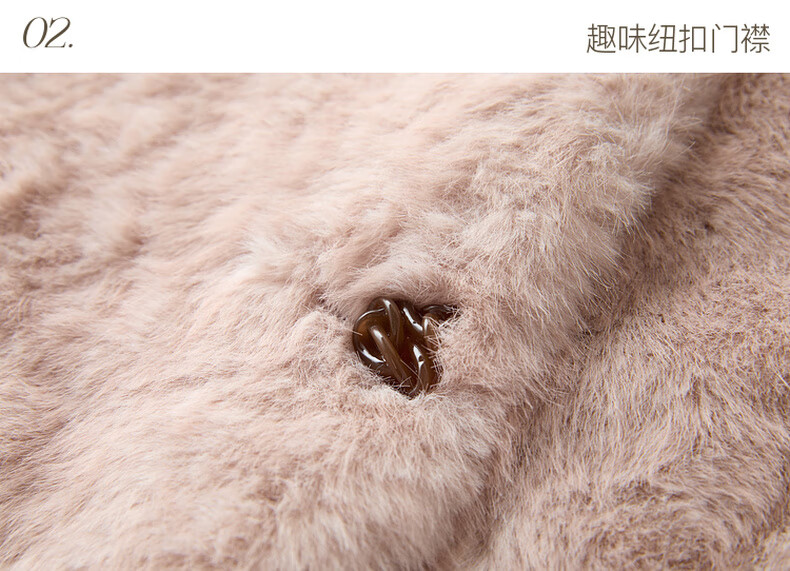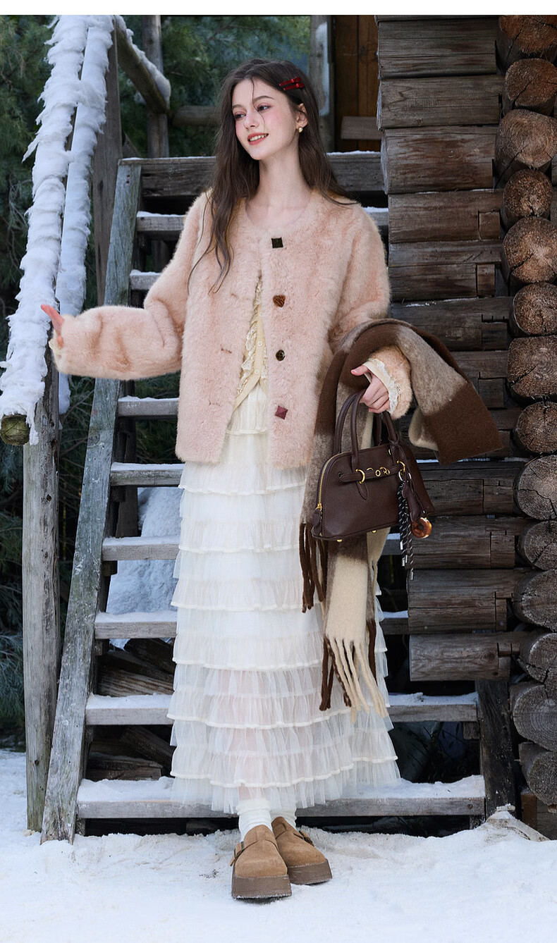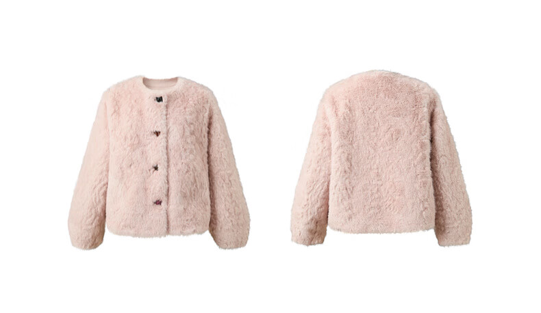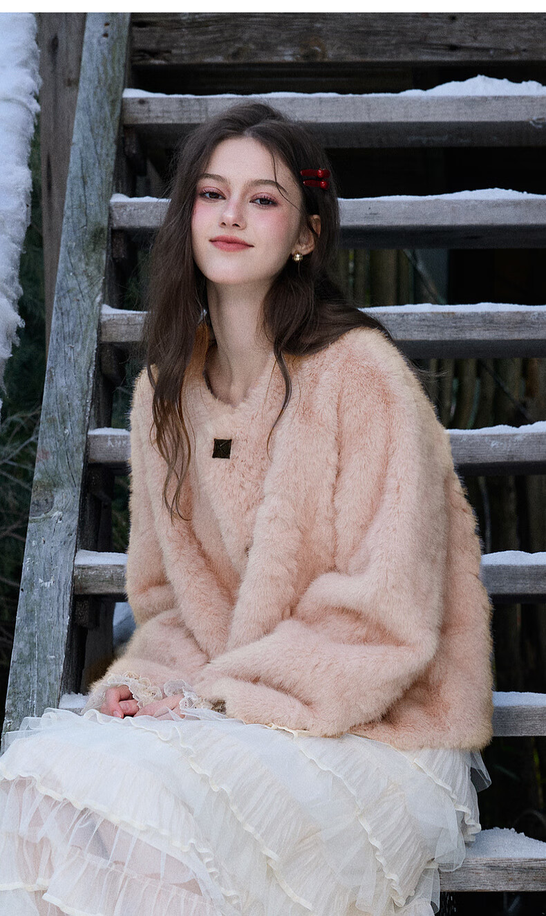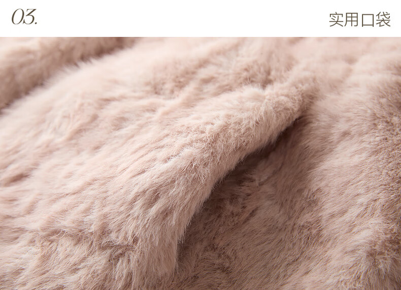 Sancai 2025 winter new eco-friendly fur coat loose short round neck long sleeves warm pink M cinnamon powder M 160/84A