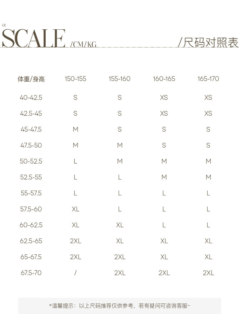 China (cm) 160-165/84-86 165-170 / 88-90 167-172 / 92-96 168-173 / 98-102 170-176 / 106-110