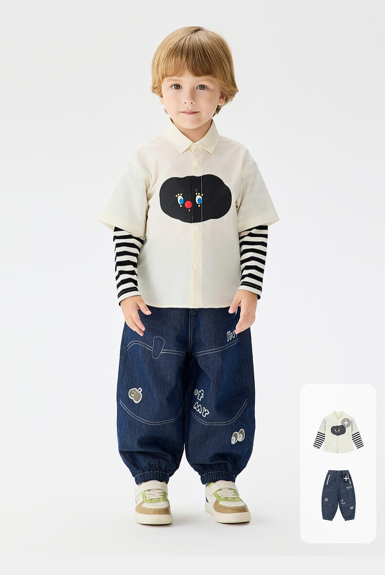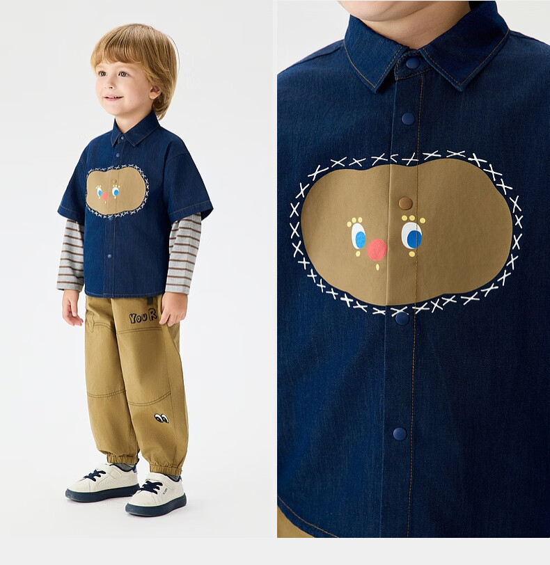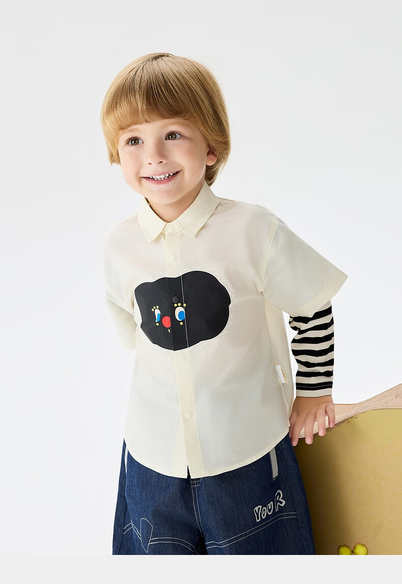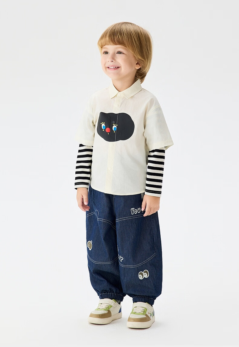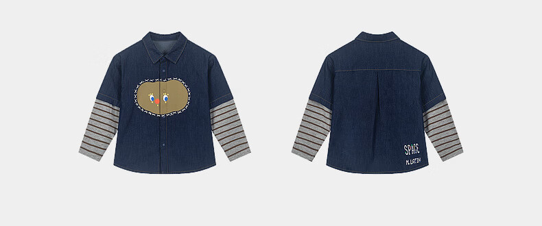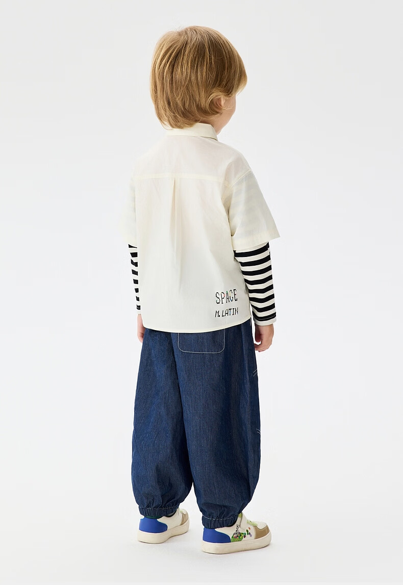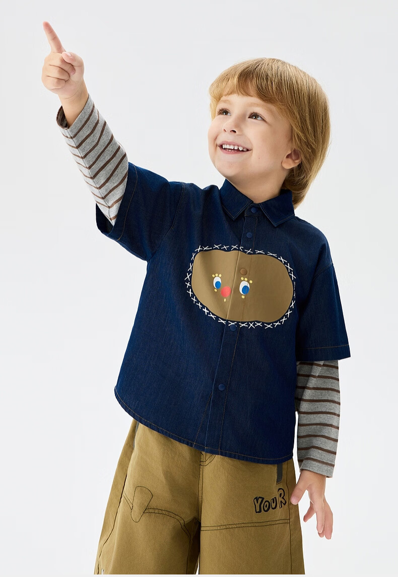 Ma Latin (M.Latin) Ma Latin children's clothing children's shirt 2026 spring new style boys' pattern printed fake two-piece long-sleeved shirt denim blue 100