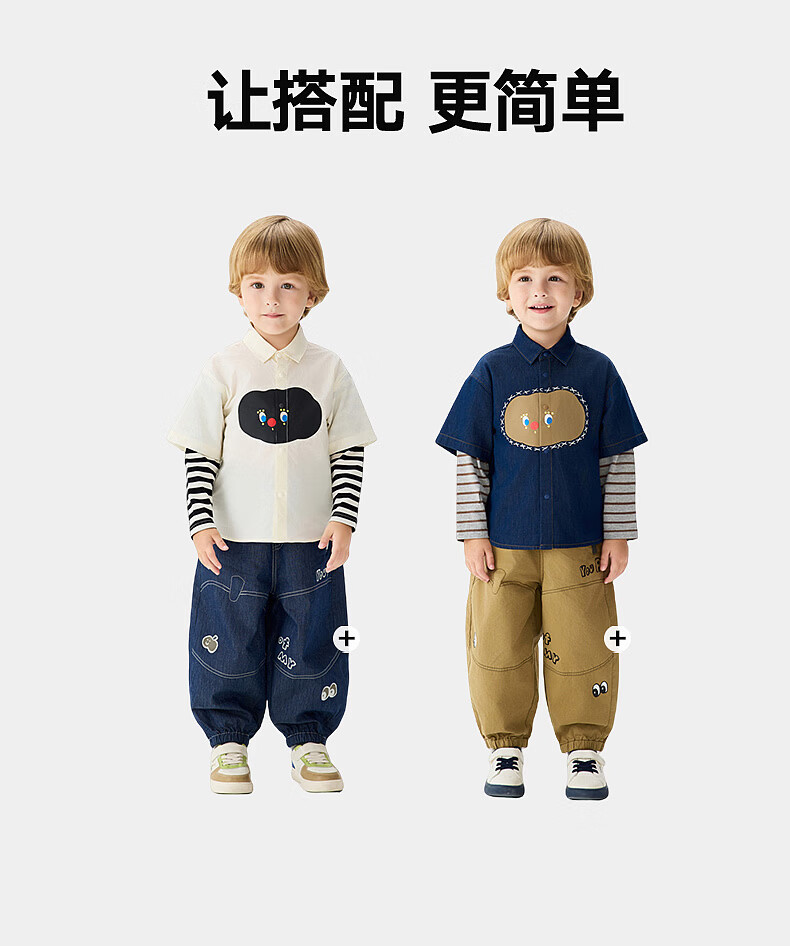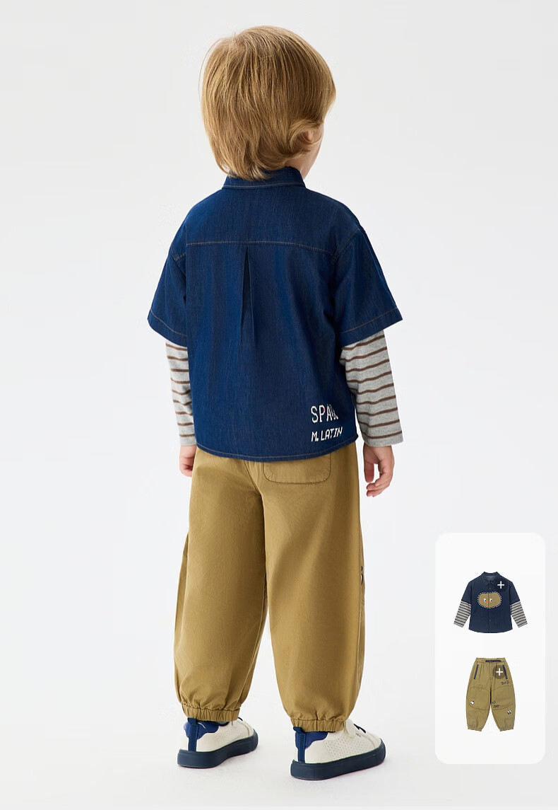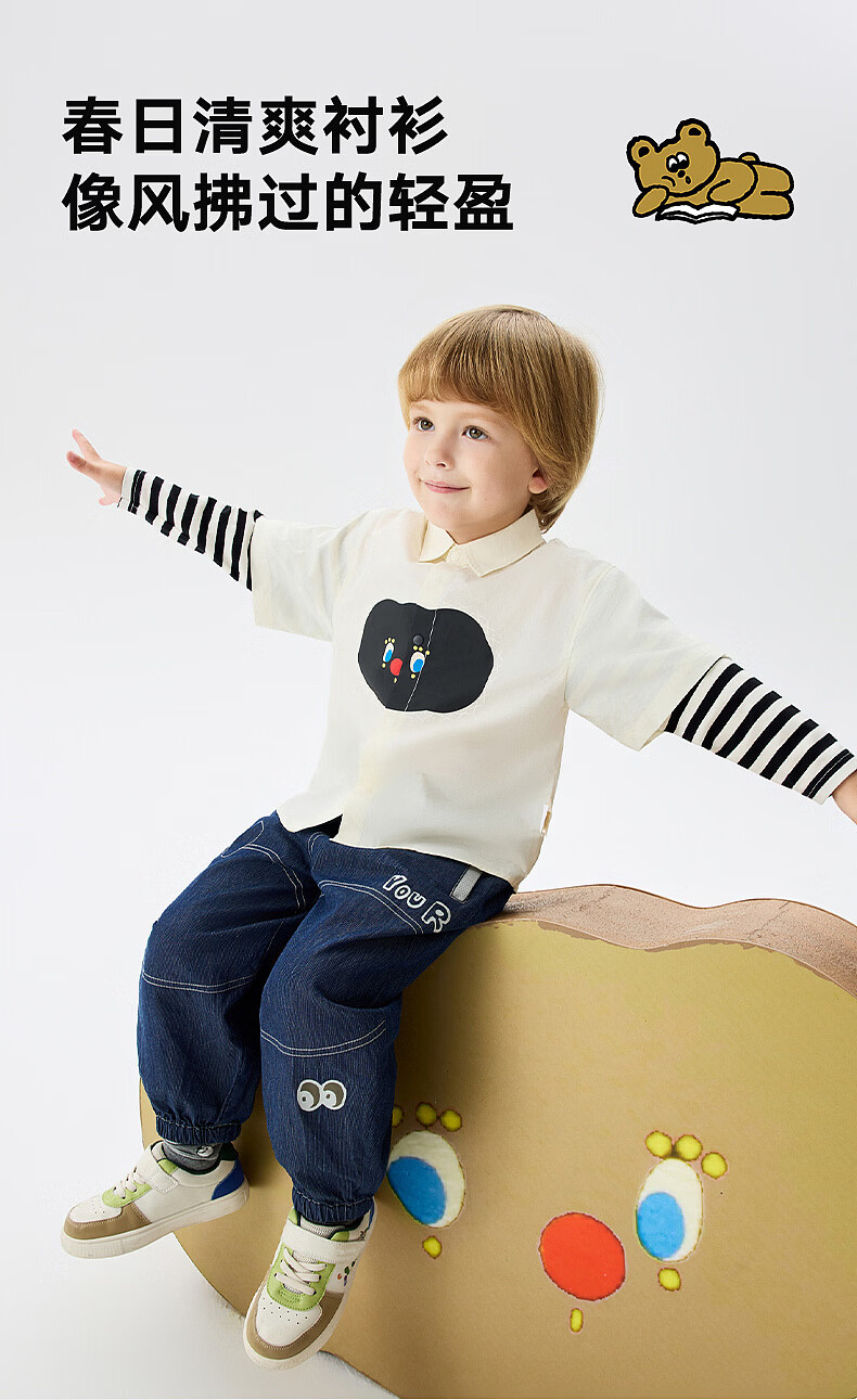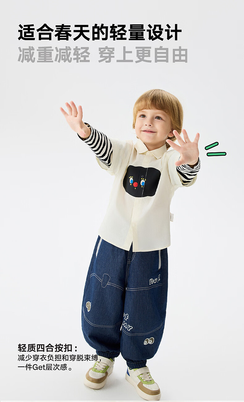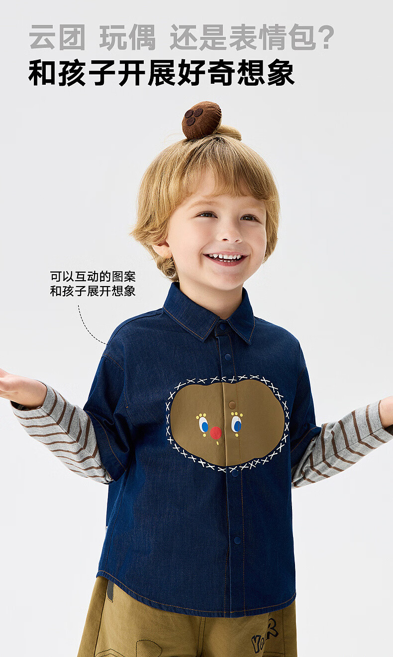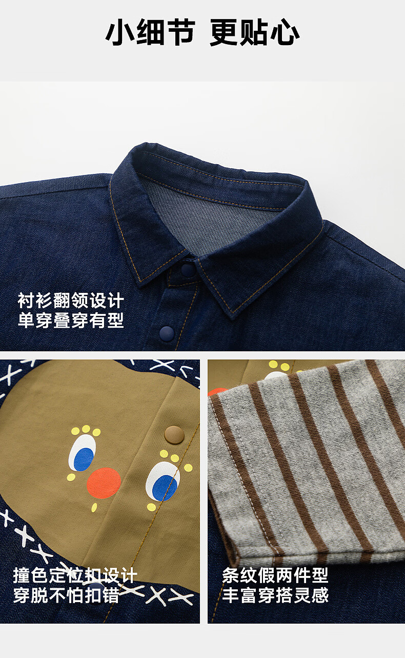 Ma Latin (M.Latin) Ma Latin children's clothing children's shirt 2026 spring new style boys' pattern printed fake two-piece long-sleeved shirt denim blue 100