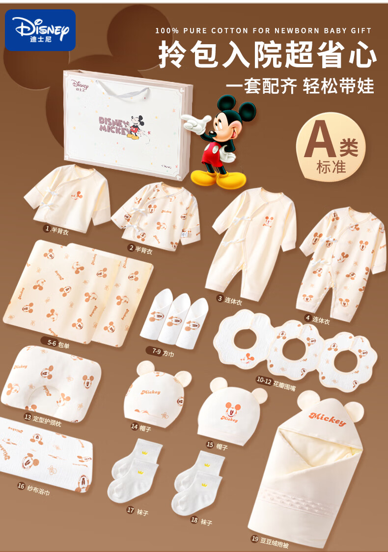 Disney Baby Gift Box, Newborn Clothes, Quilt, Baby Birth, Maternal and Infant Supplies Gift Package, Maternity Hospital Baby Bag, Quilt Thickness 800g, Warm 1622 Baby Bag (room temperature 15-22 degrees) 59cm (recommended for 0-3 months)