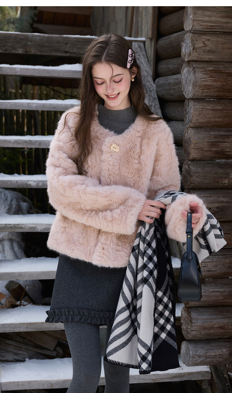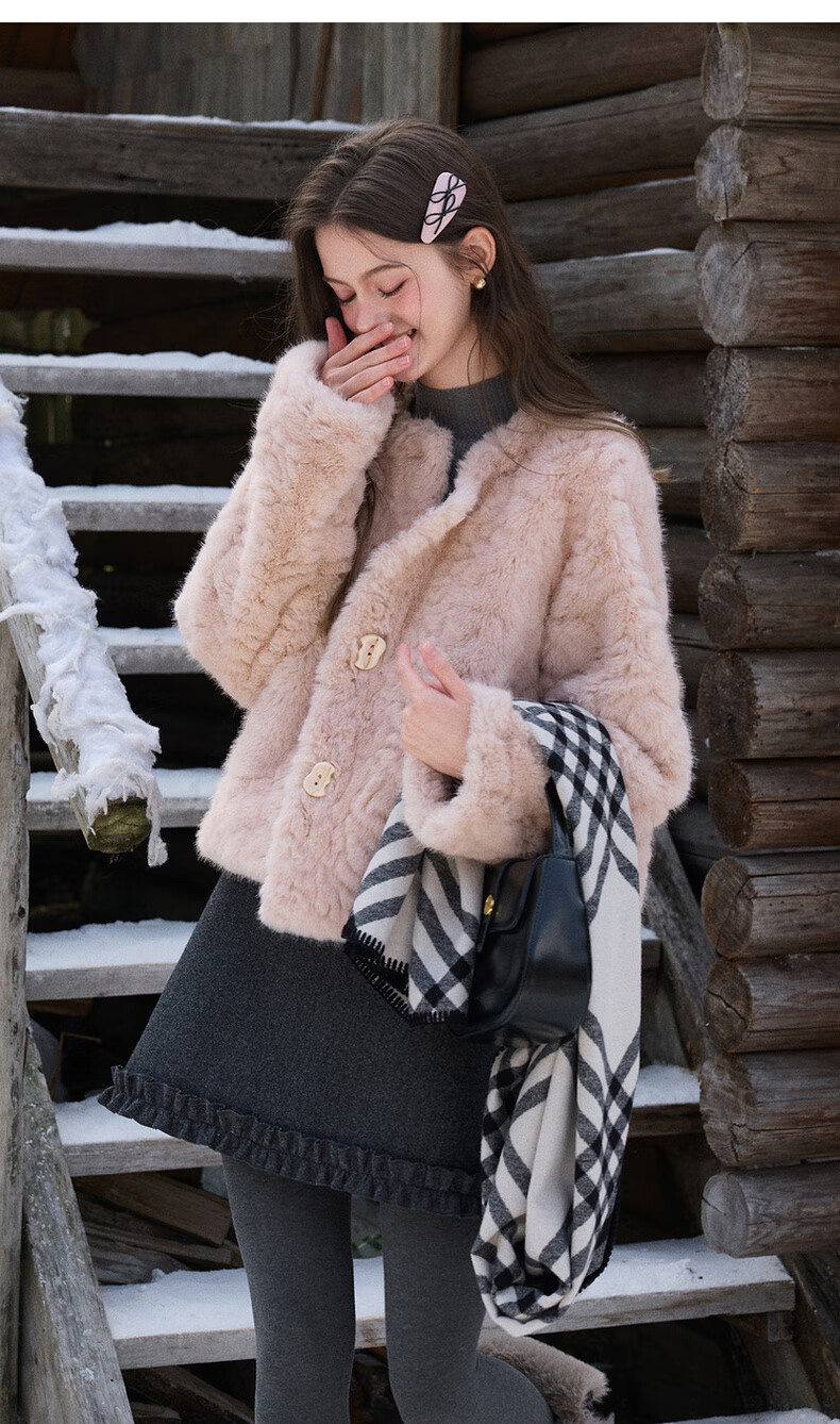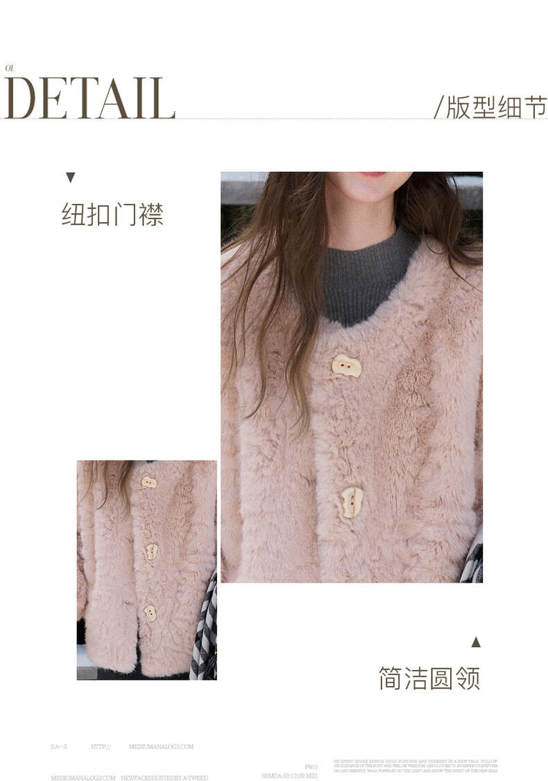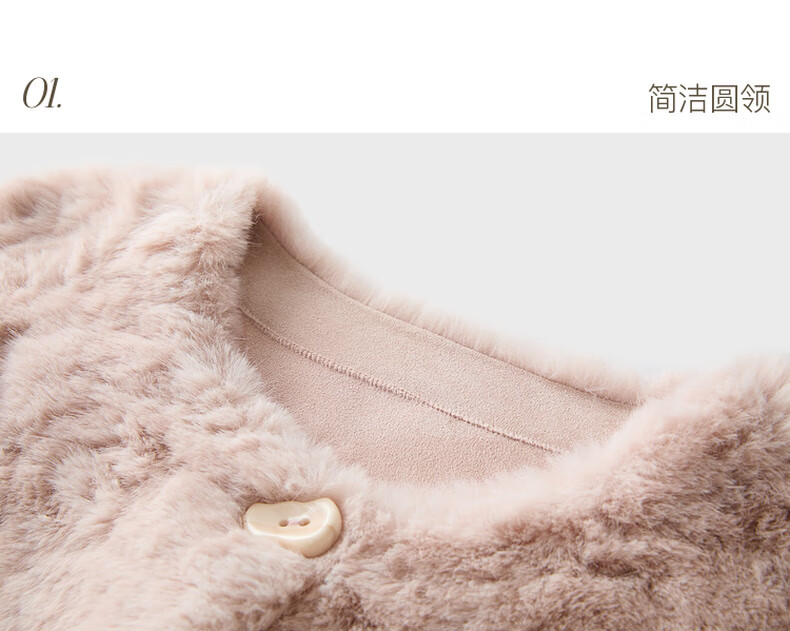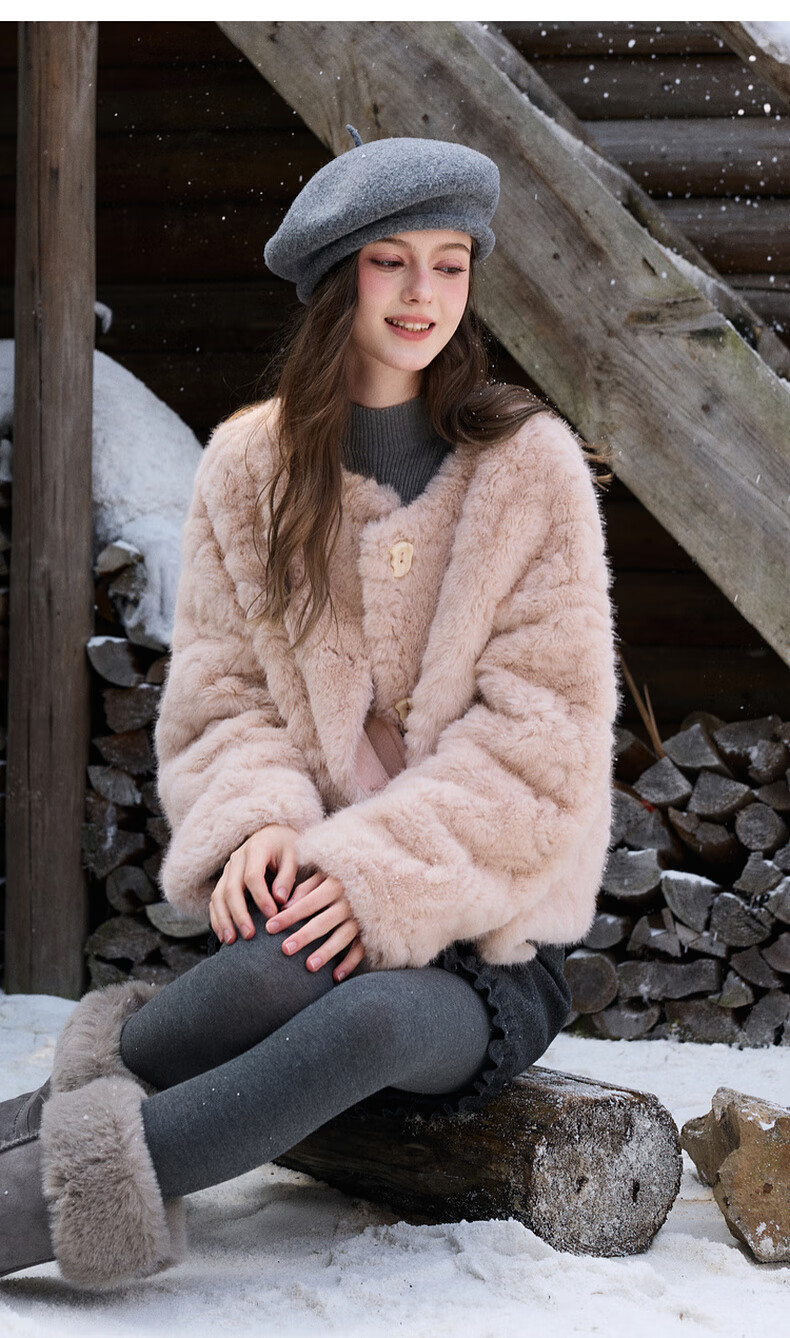Sancai 2025 winter new eco-friendly fur coat, loose, elegant, short, round neck, long sleeves, M cinnamon powder S 155/80A