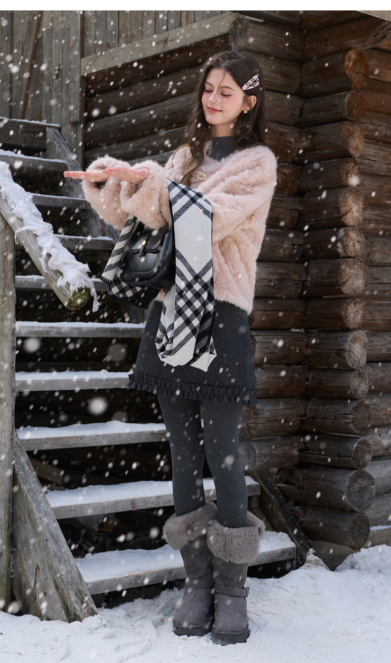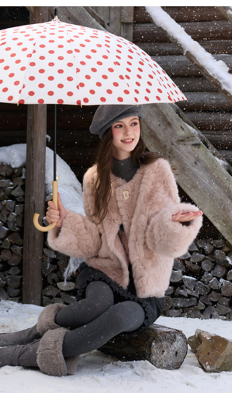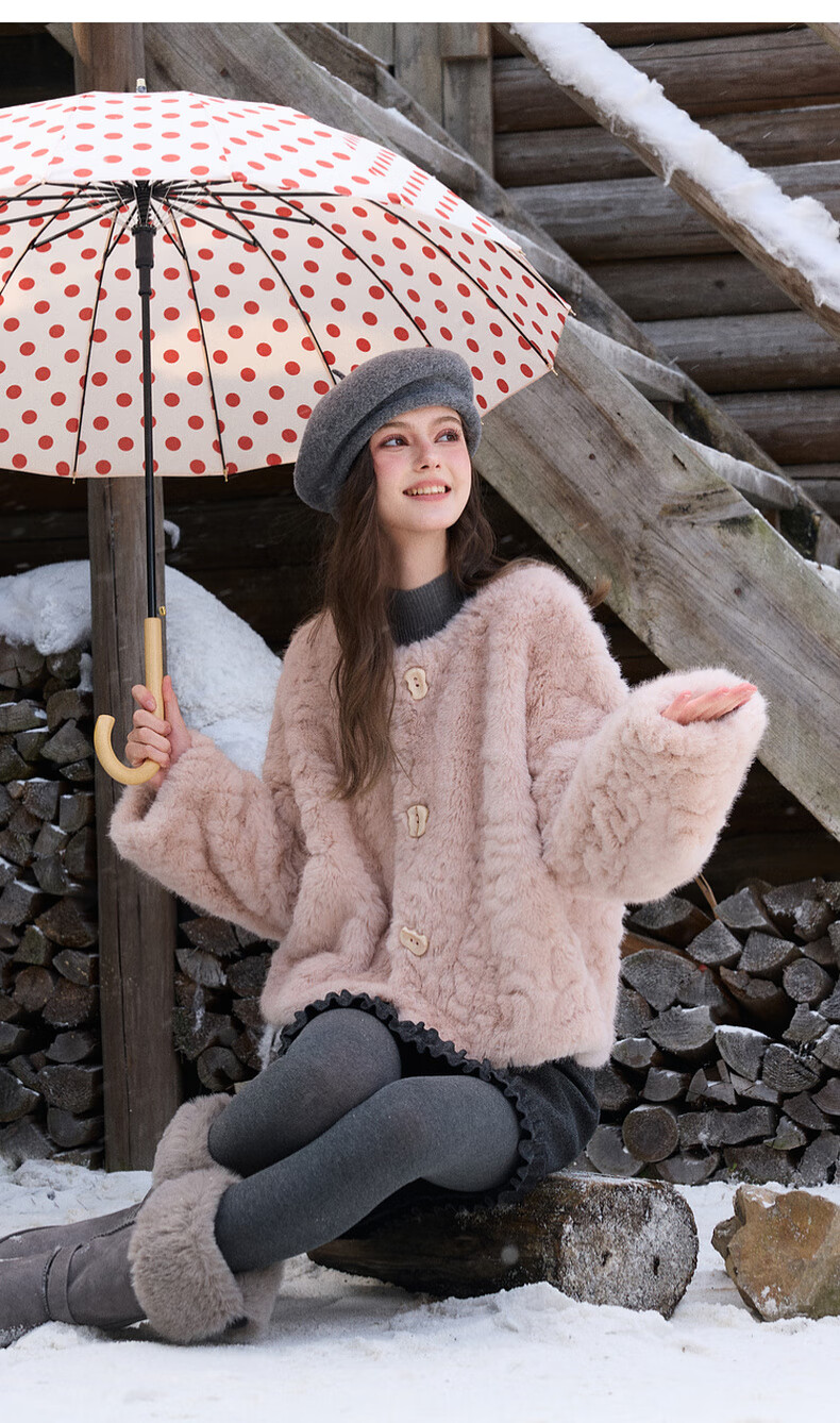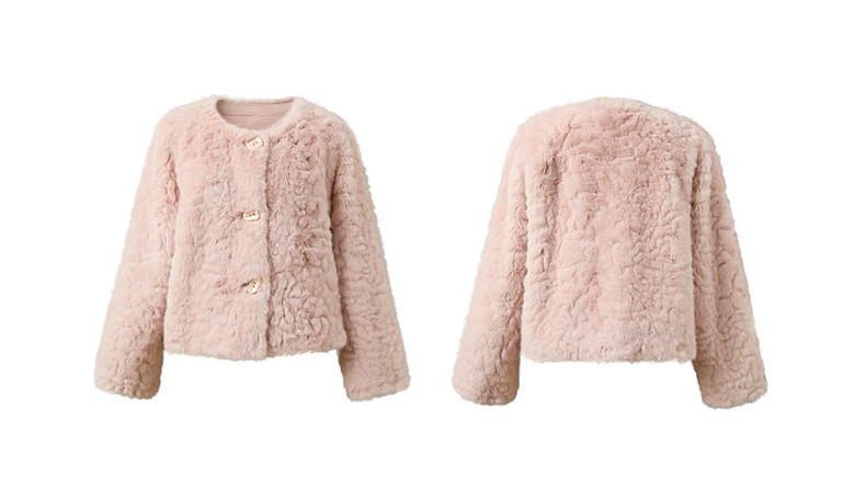 Sancai 2025 winter new eco-friendly fur coat, loose, elegant, short, round neck, long sleeves, M cinnamon powder S 155/80A