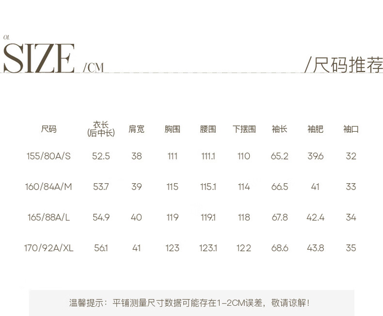 China (cm) 160-165/84-86 165-170 / 88-90 167-172 / 92-96 168-173 / 98-102 170-176 / 106-110