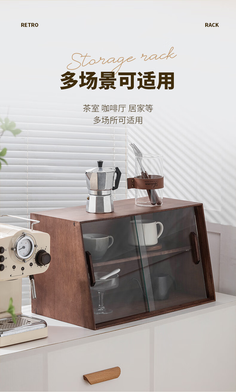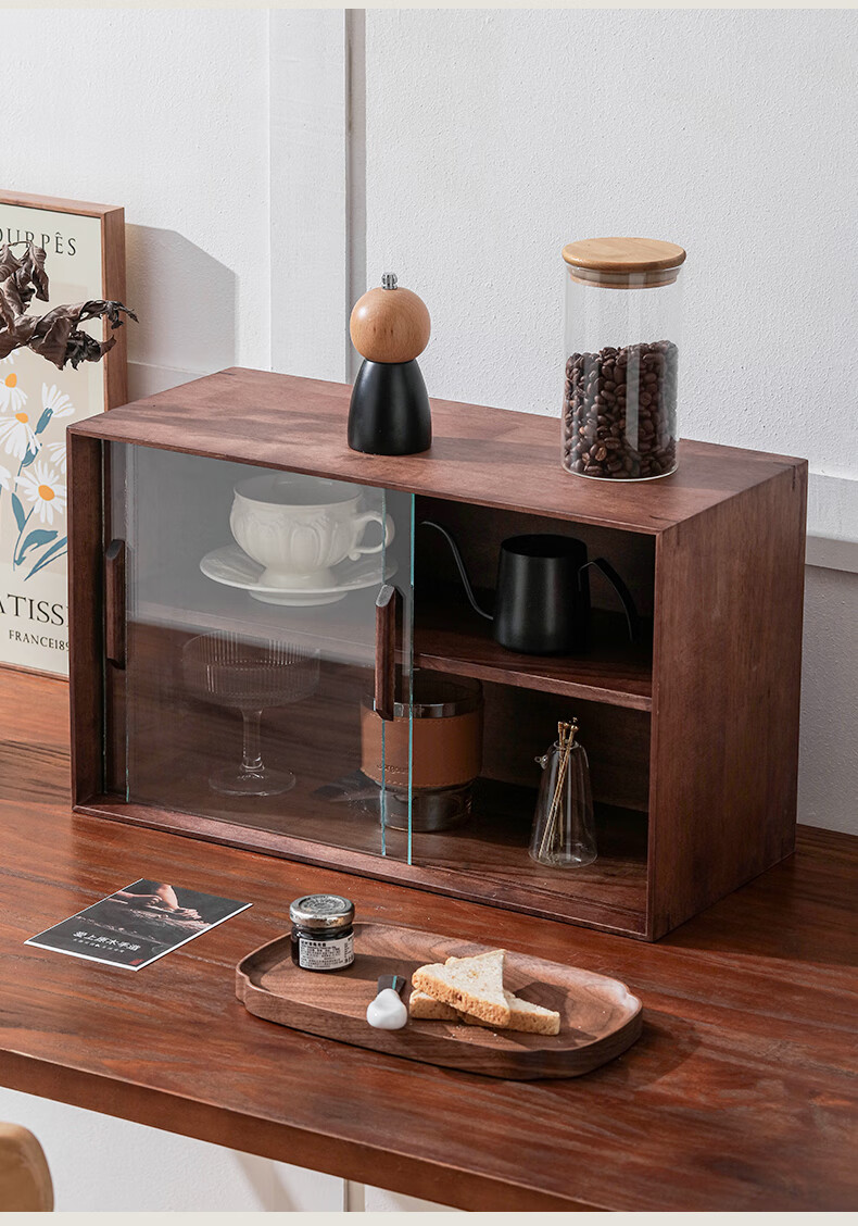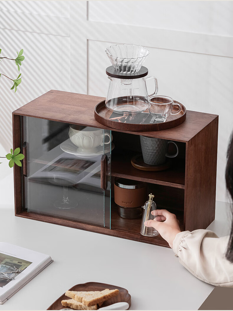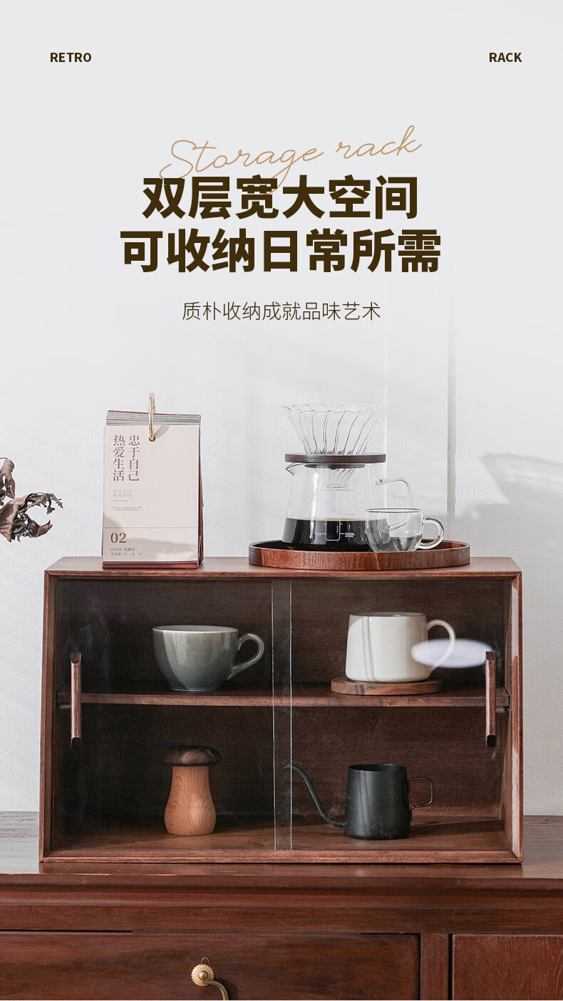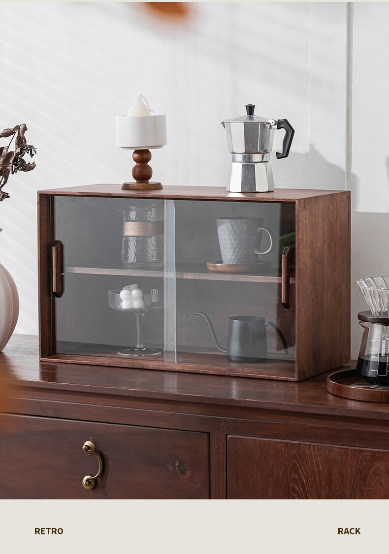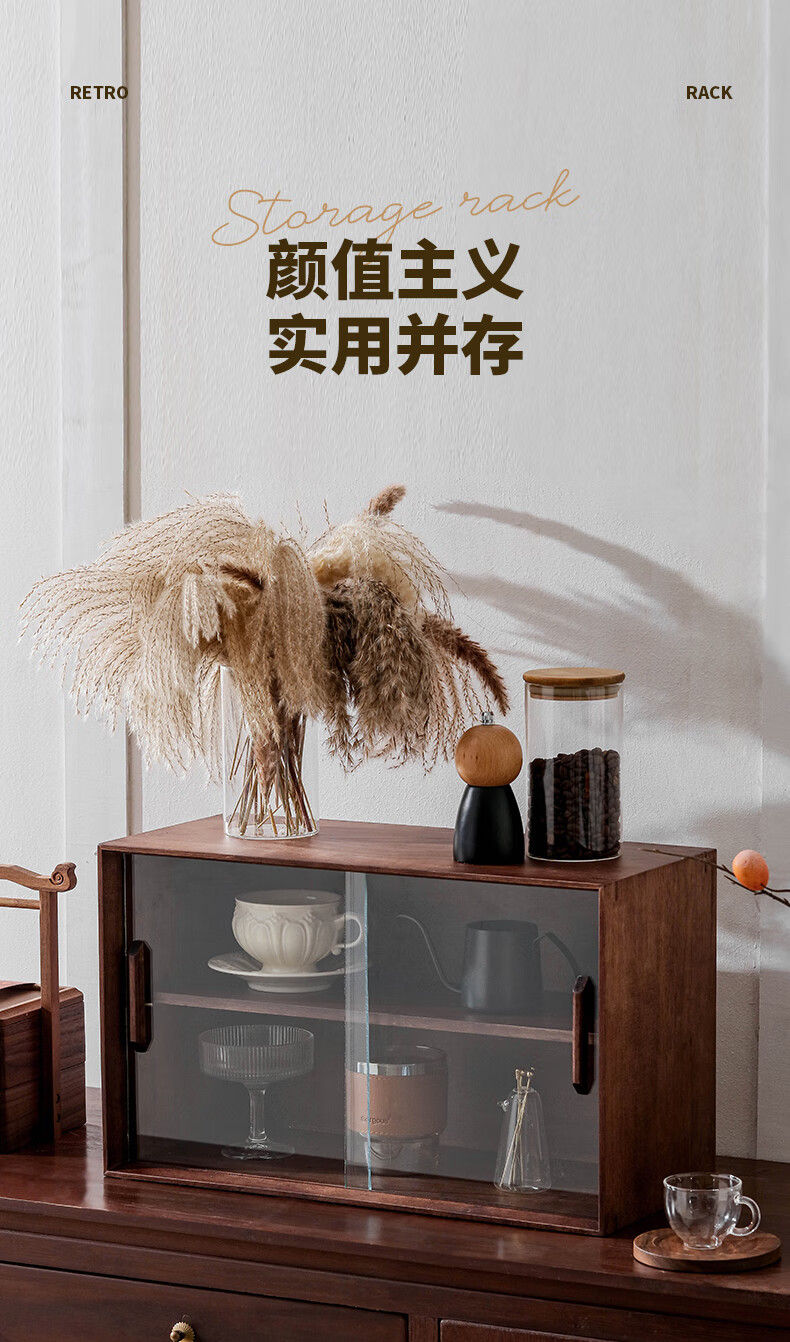 Wusheng solid wood storage sideboard dust-proof desktop cabinet water cup tea set coffee shelf dining table living room storage rack solid wood double-layer square cabinet