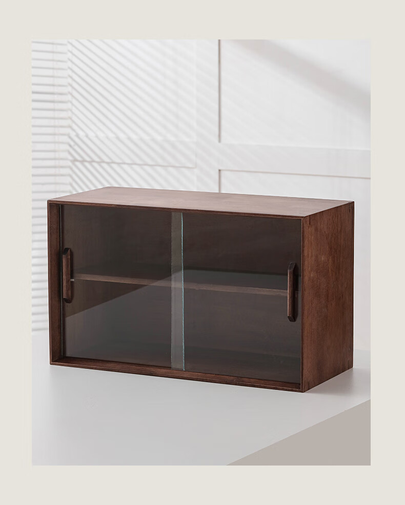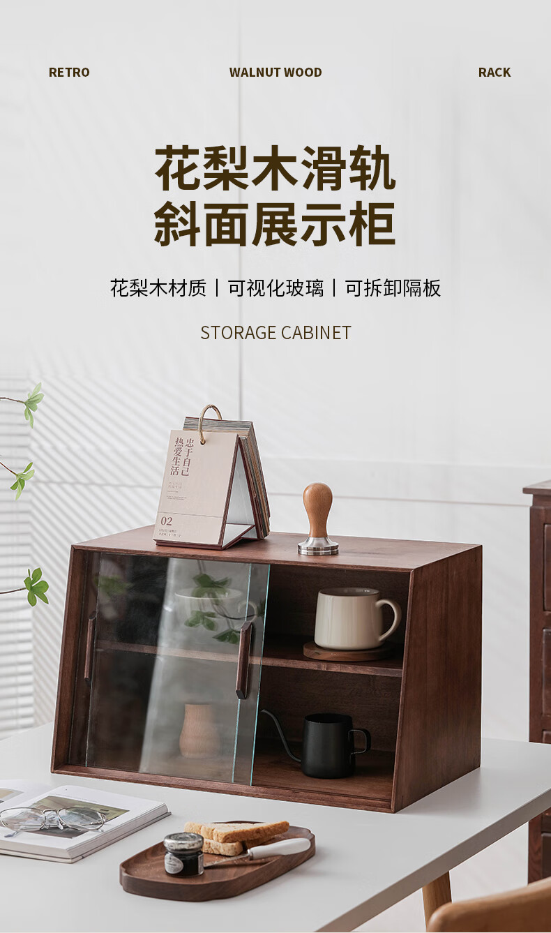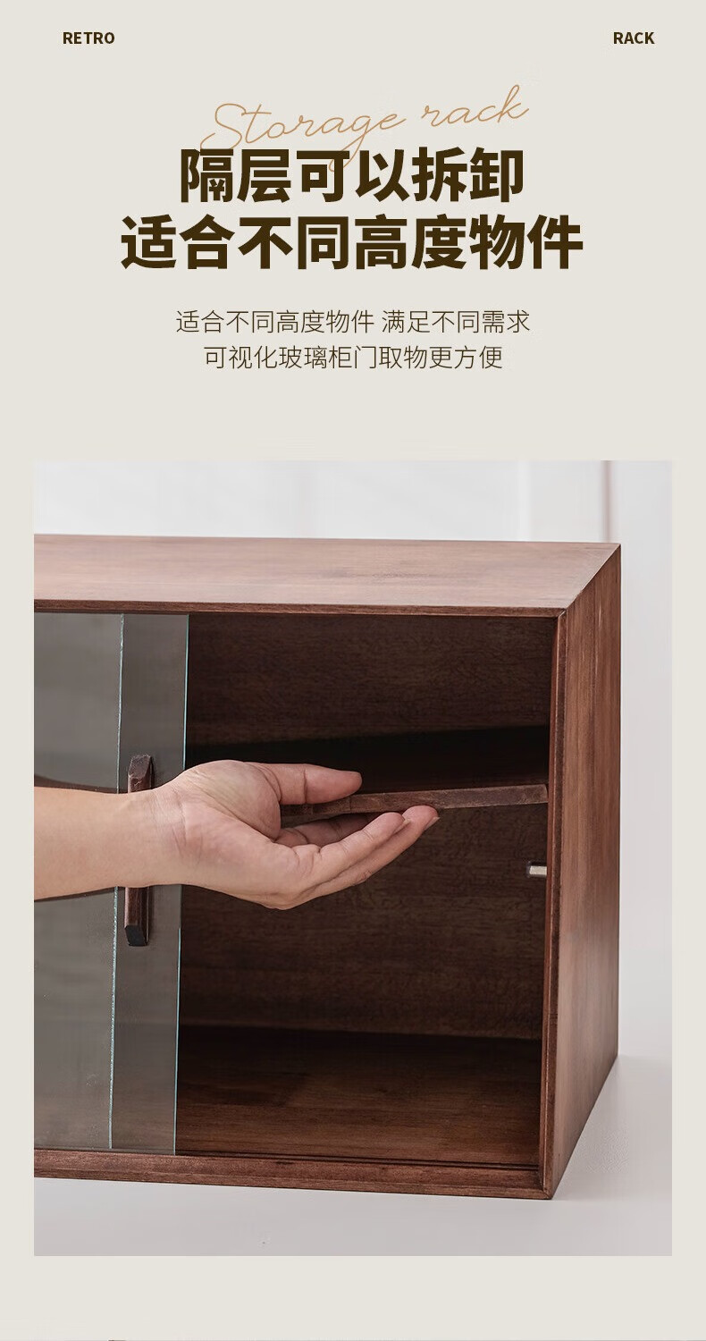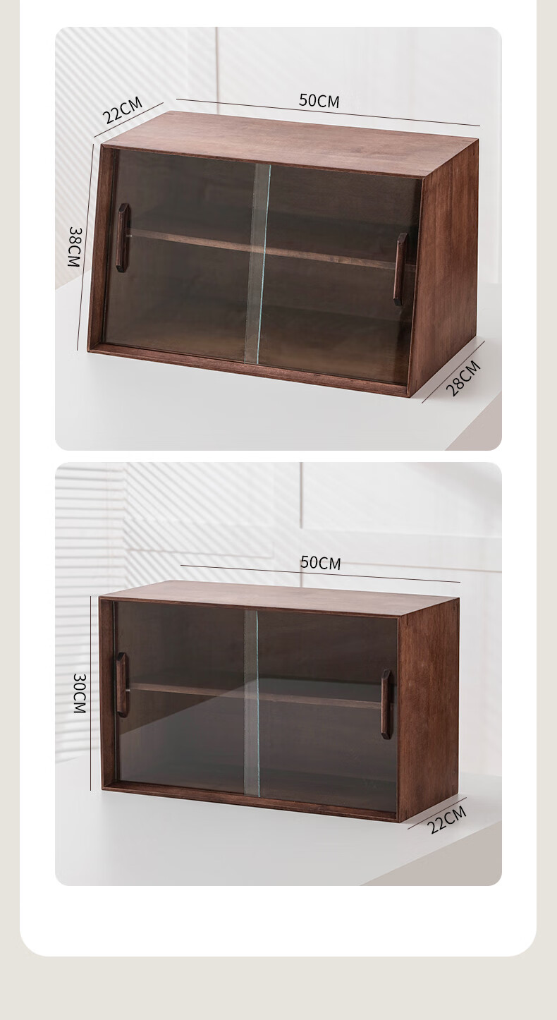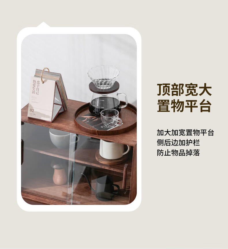 Wusheng solid wood storage sideboard dust-proof desktop cabinet water cup tea set coffee shelf dining table living room storage rack solid wood double-layer square cabinet